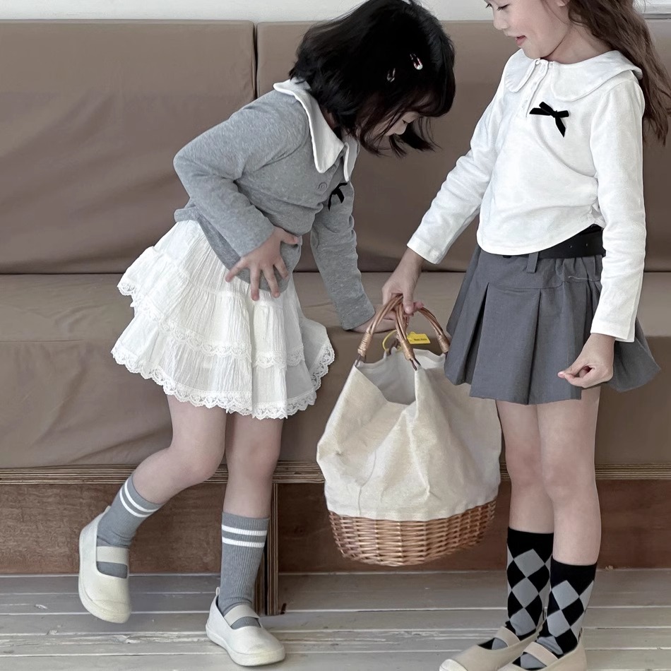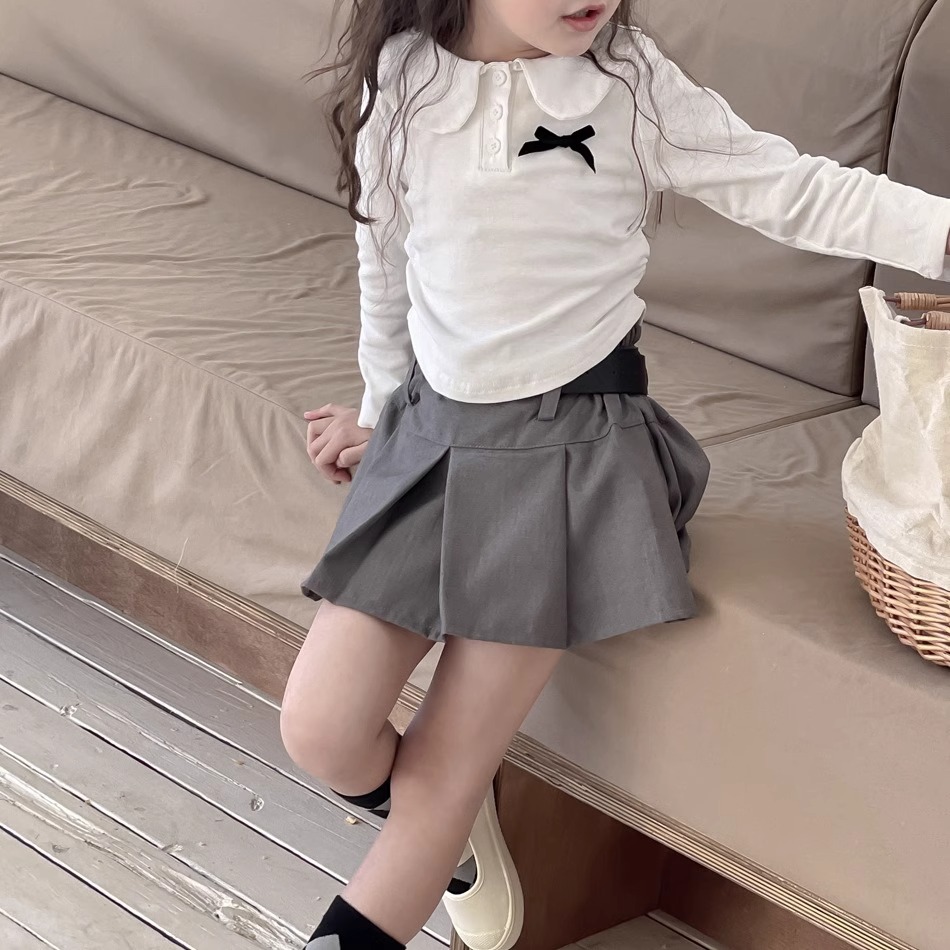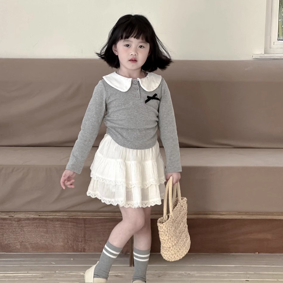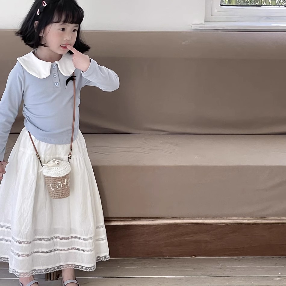2024 가을 소녀베이스 셔츠 봄과 가을 순면 인형 칼라 슬림핏 서양식 가을 착용 어린이 여성용 짧은 탑