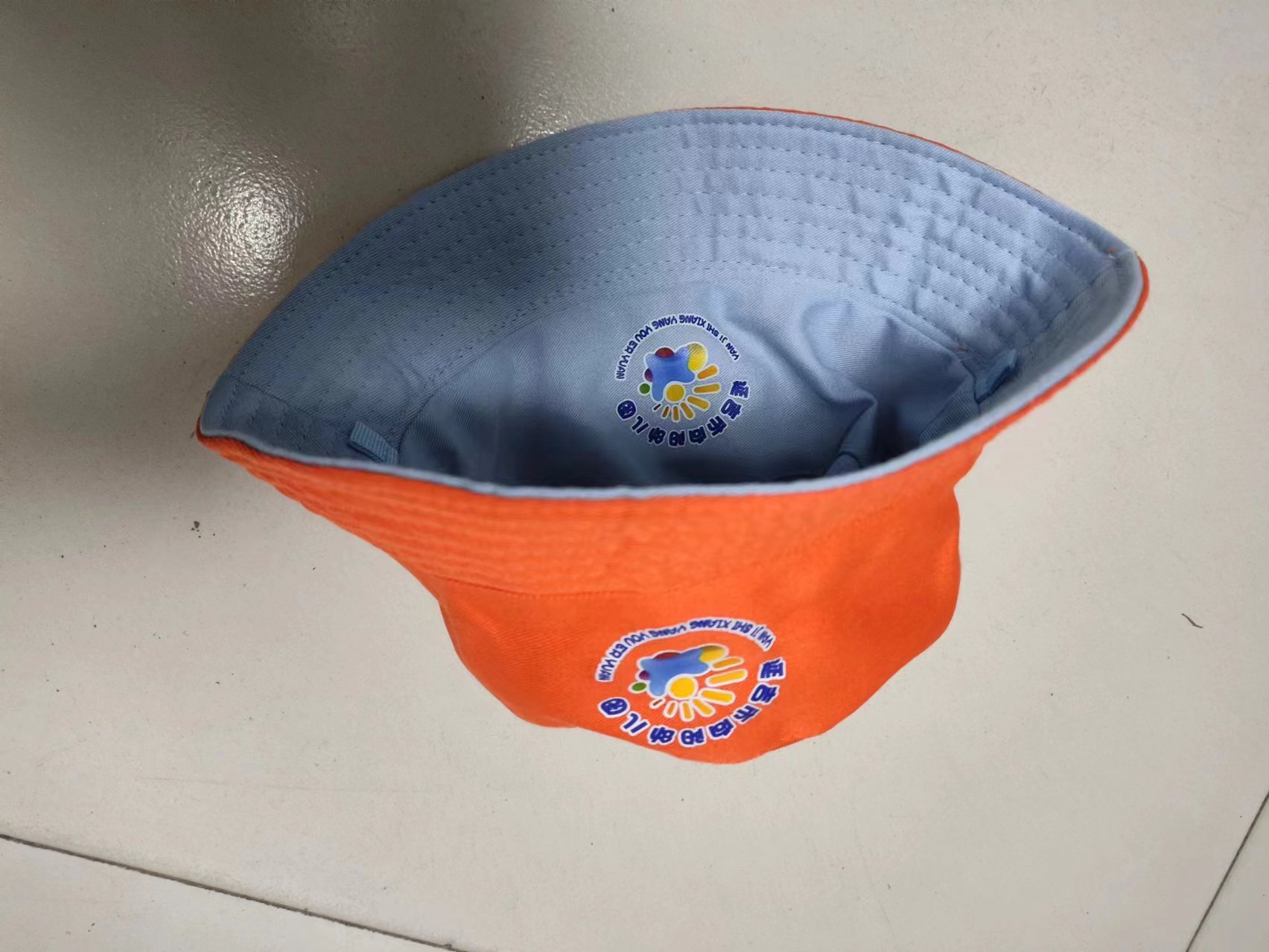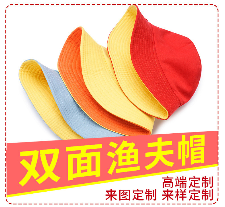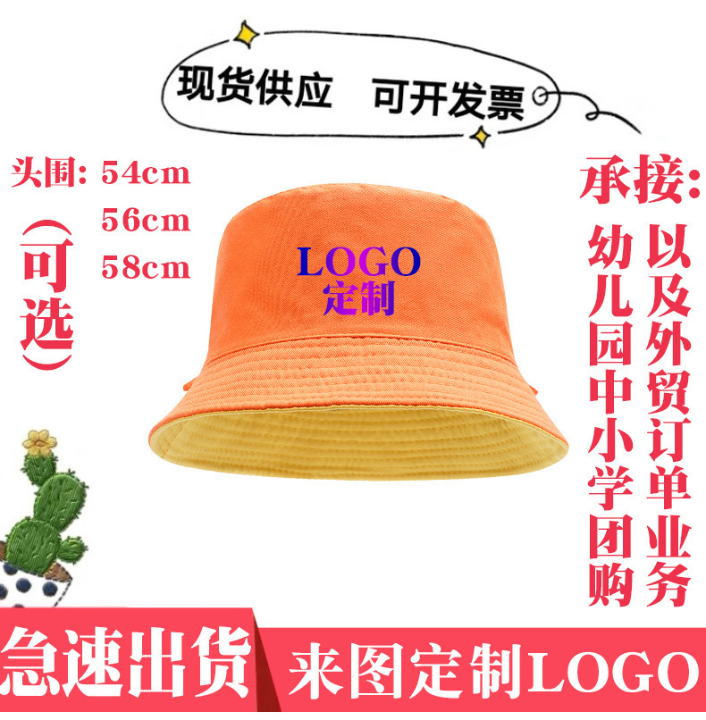 양면 어린이 어부 모자 유치원 안전 작은 노란 모자 인쇄 로고 학생 여행 모자 양면 어부 모자