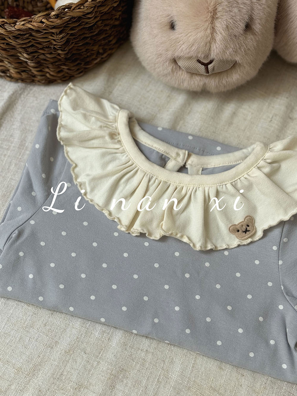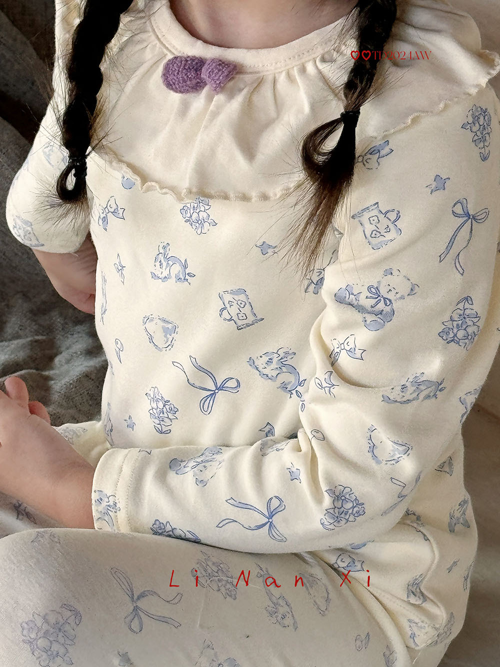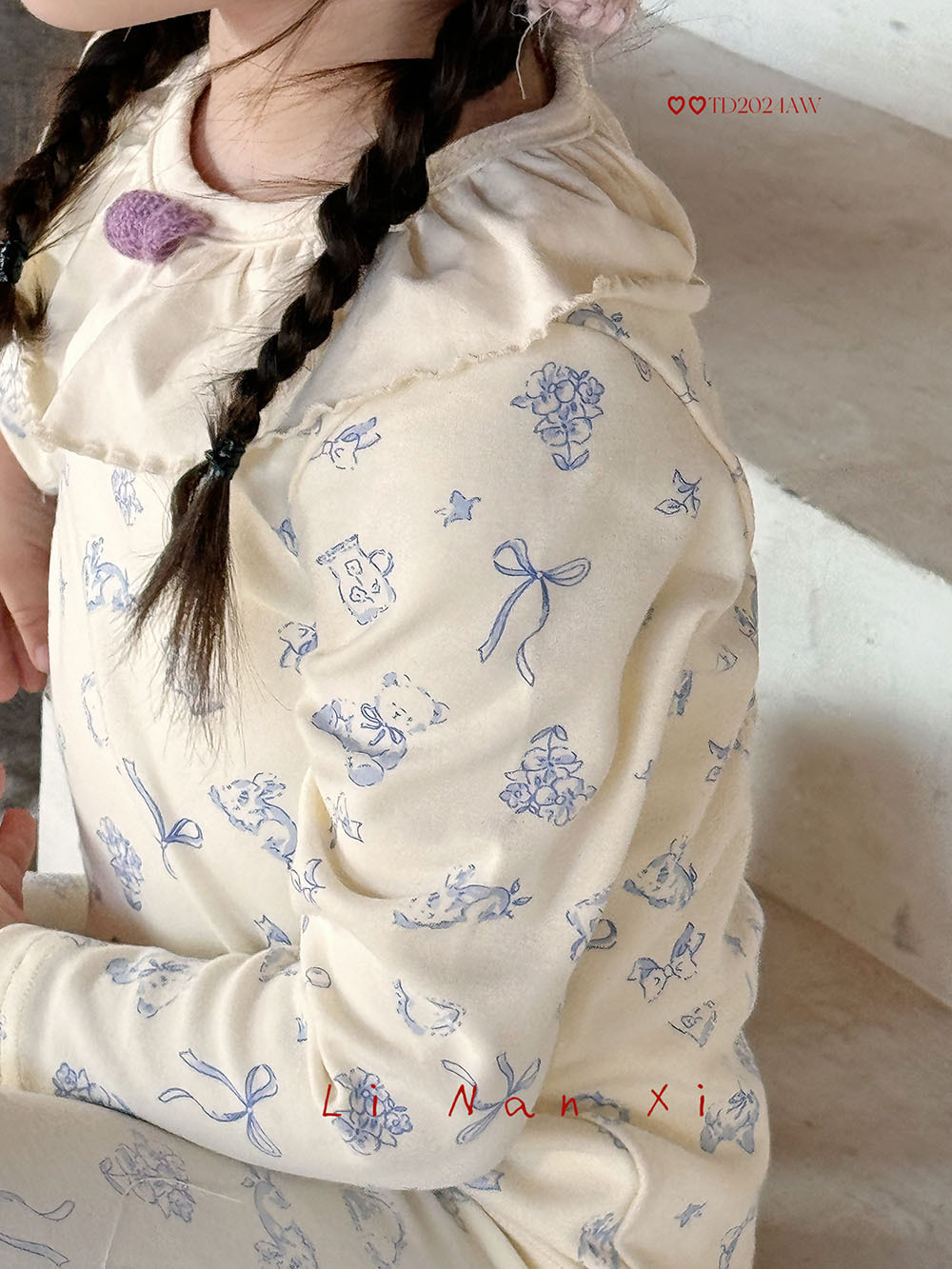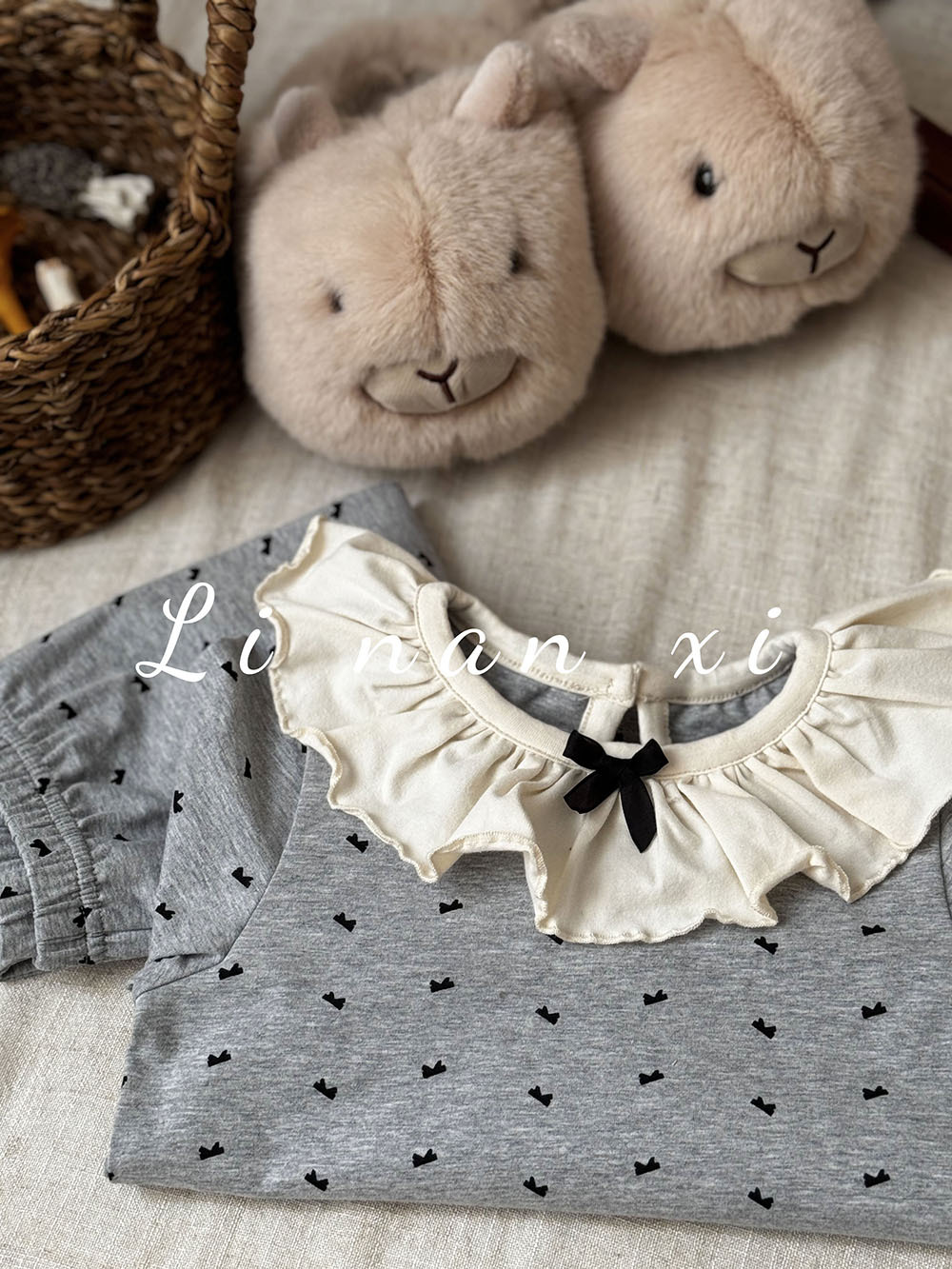 82328 소녀 가을 새 스타일 홈 의류 한국 스타일 여성 보물 귀여운 연꽃 칼라 잠옷 따뜻한 투피스 세트