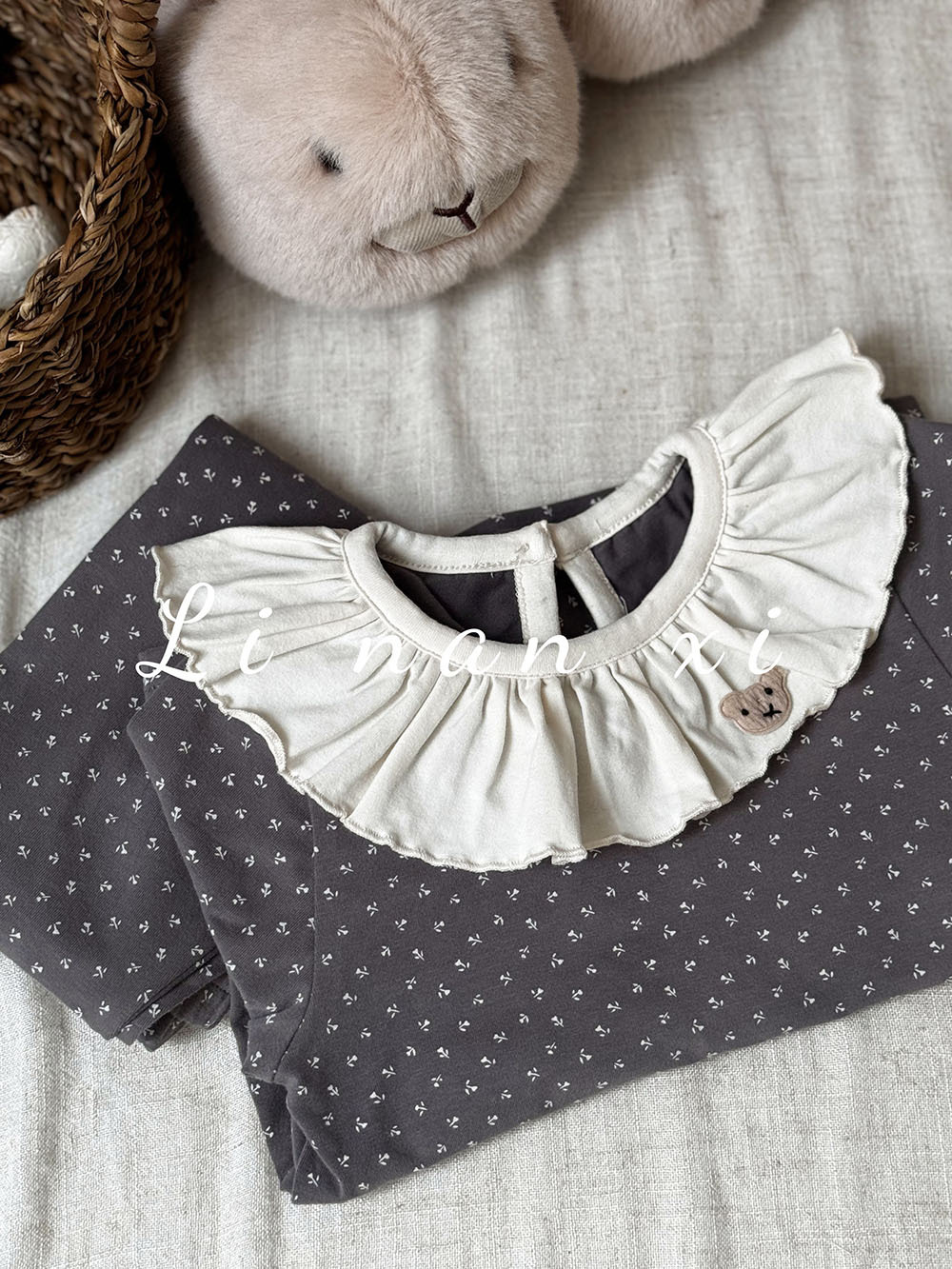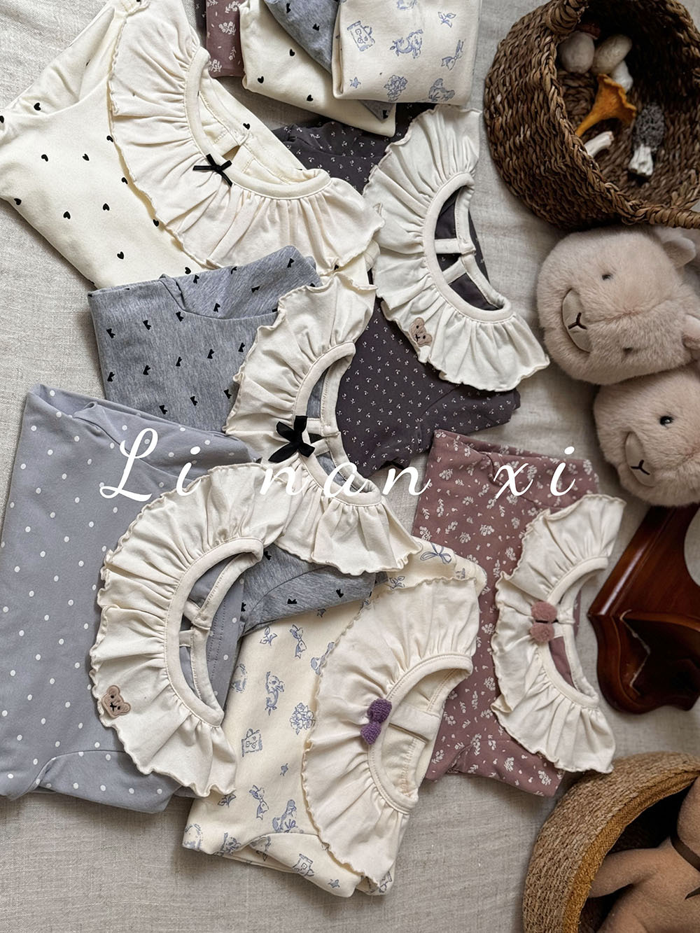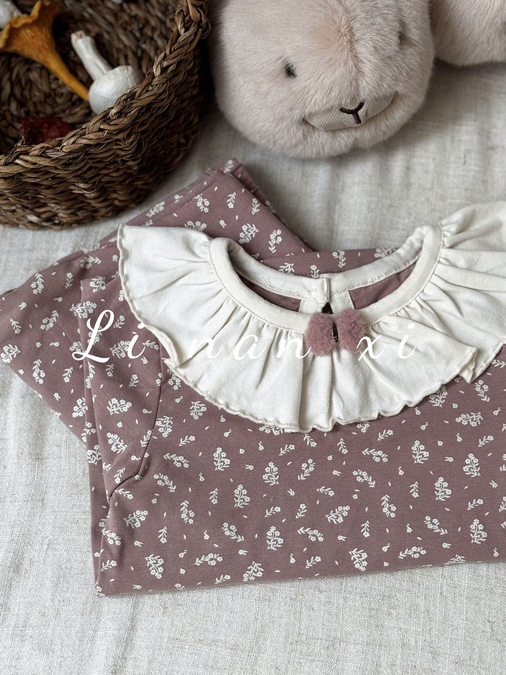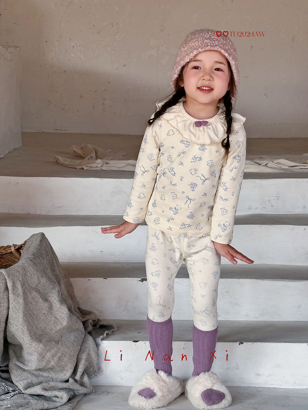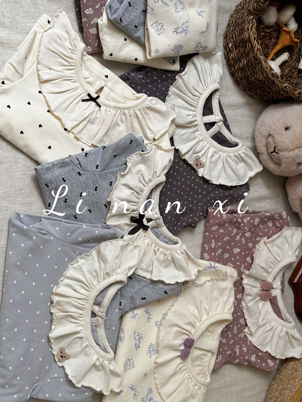 82328 소녀 가을 새 스타일 홈 의류 한국 스타일 여성 보물 귀여운 연꽃 칼라 잠옷 따뜻한 투피스 세트