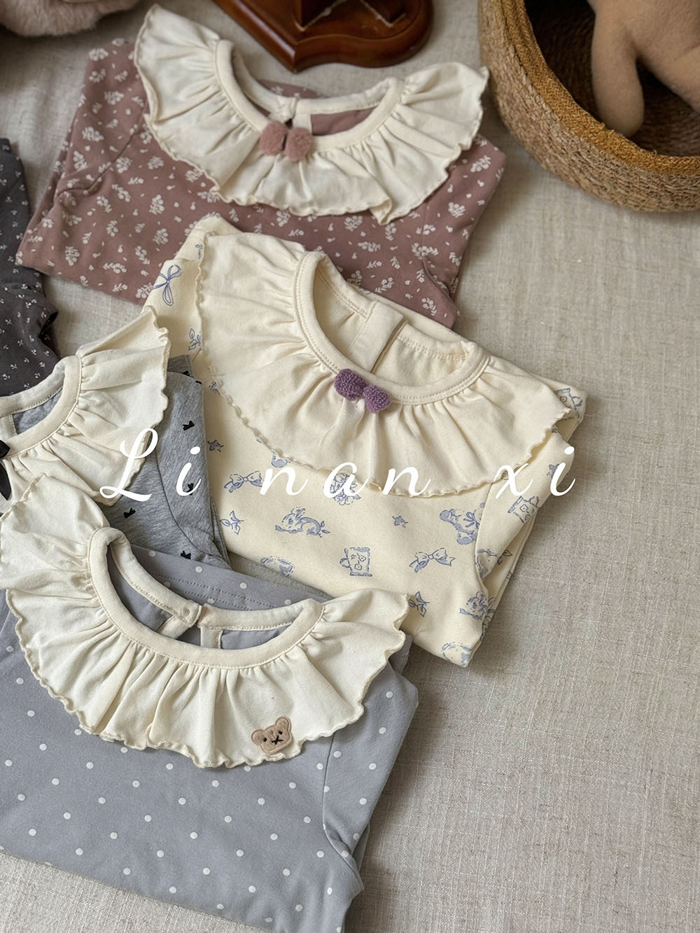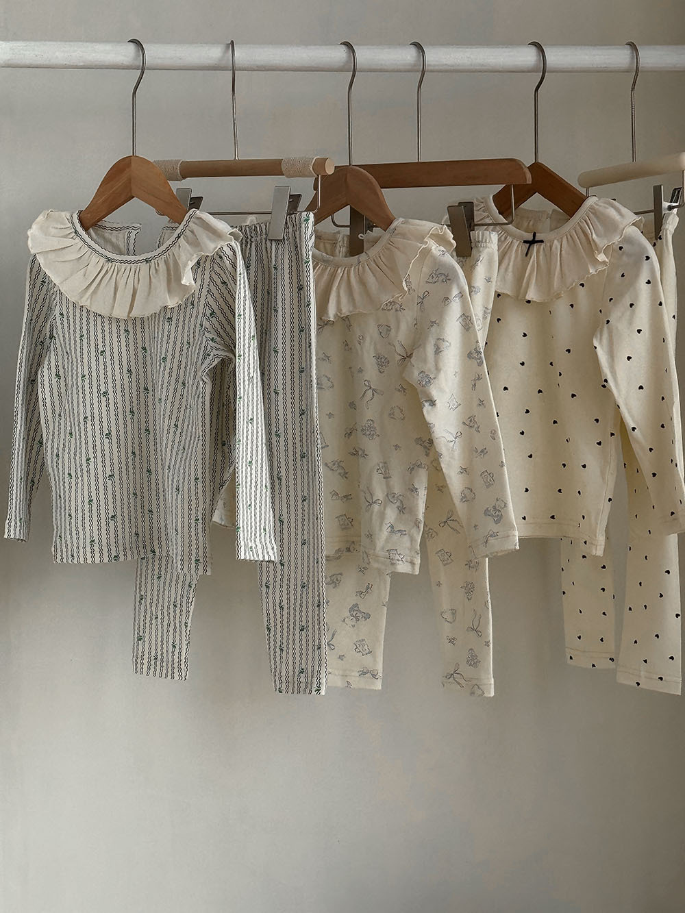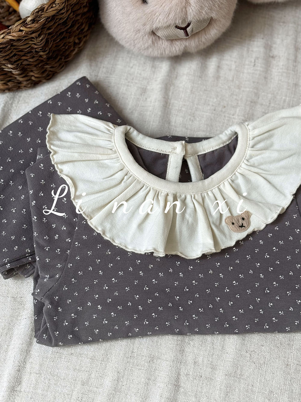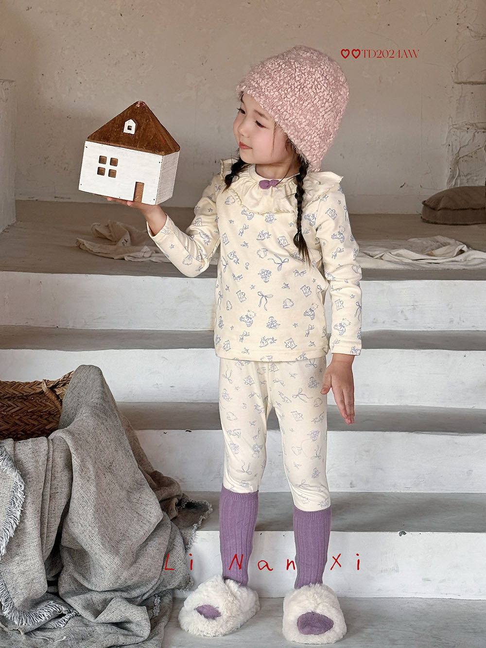 82328 소녀 가을 새 스타일 홈 의류 한국 스타일 여성 보물 귀여운 연꽃 칼라 잠옷 따뜻한 투피스 세트