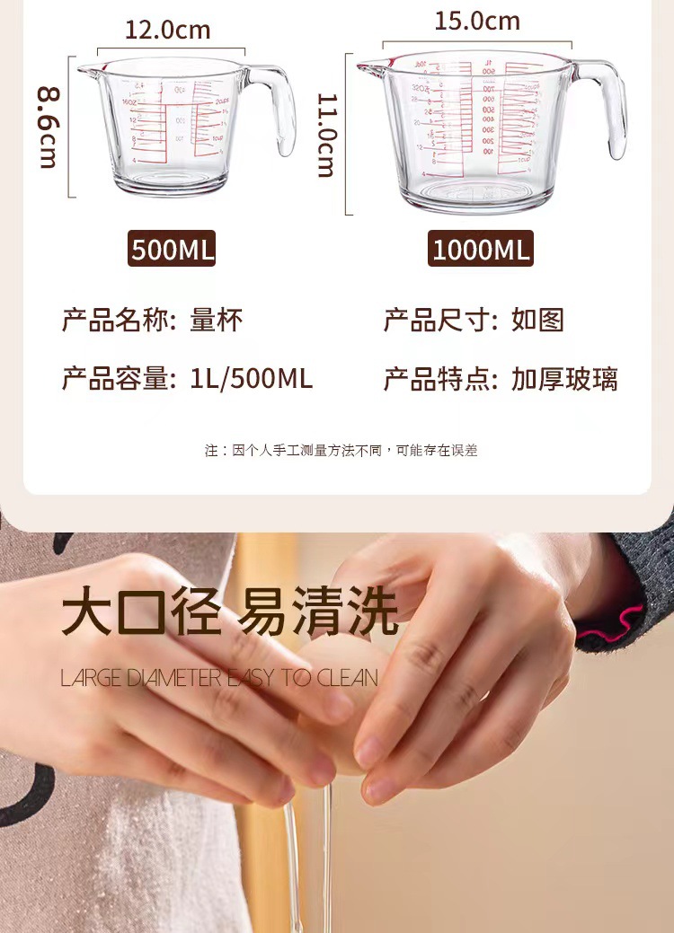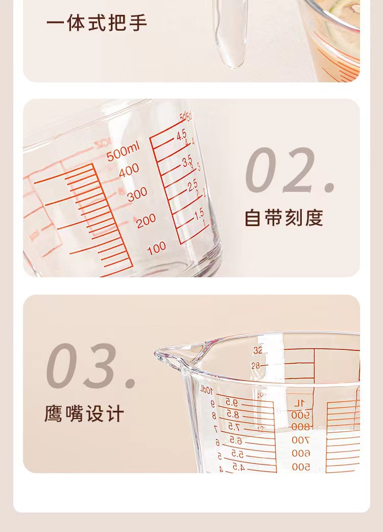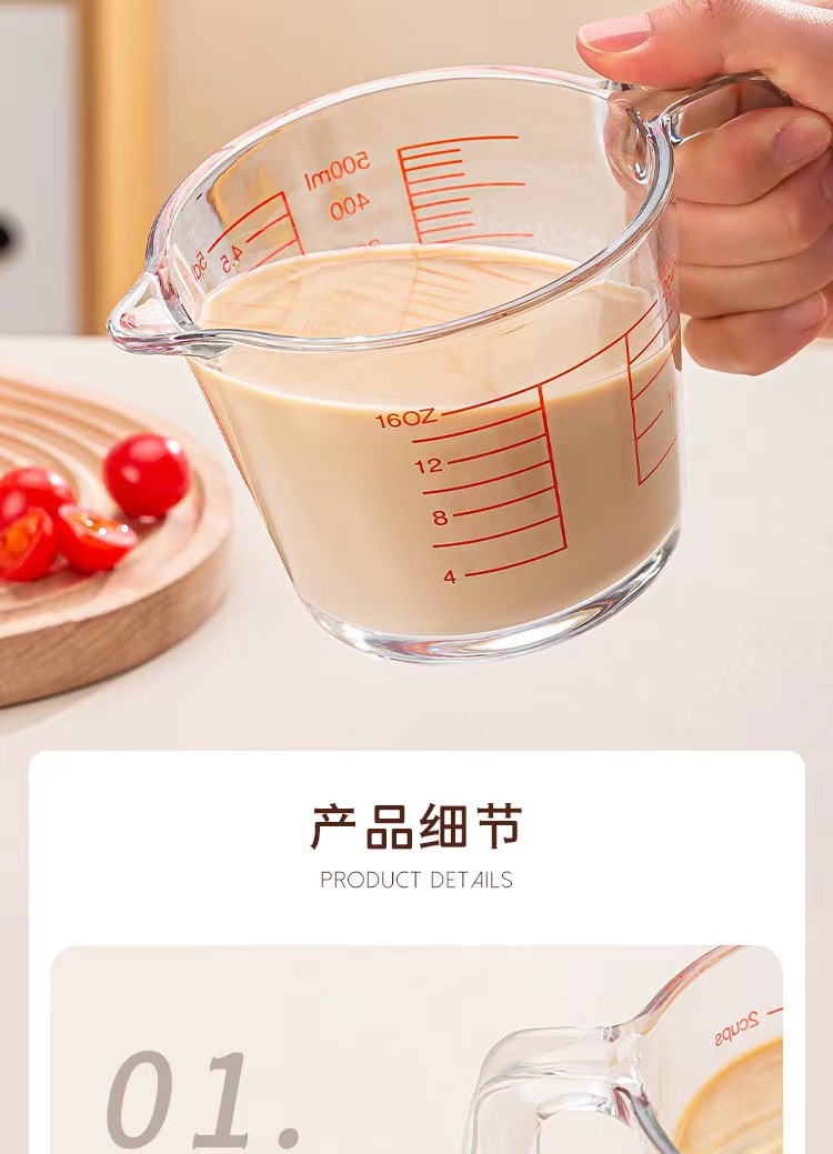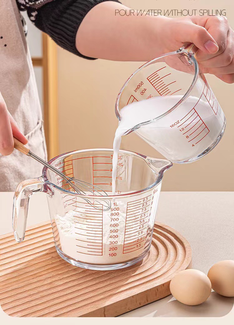 대용량의 주방 유리 측정 컵 계란 치기 식품 등급 측정 컵 가늠자 가정용 고온 베이킹