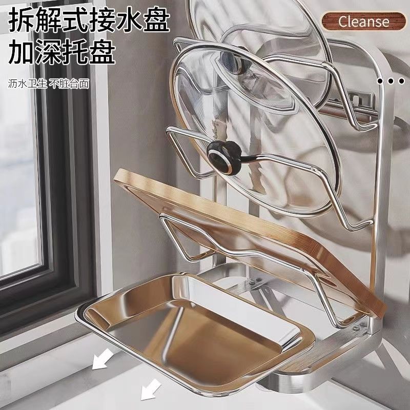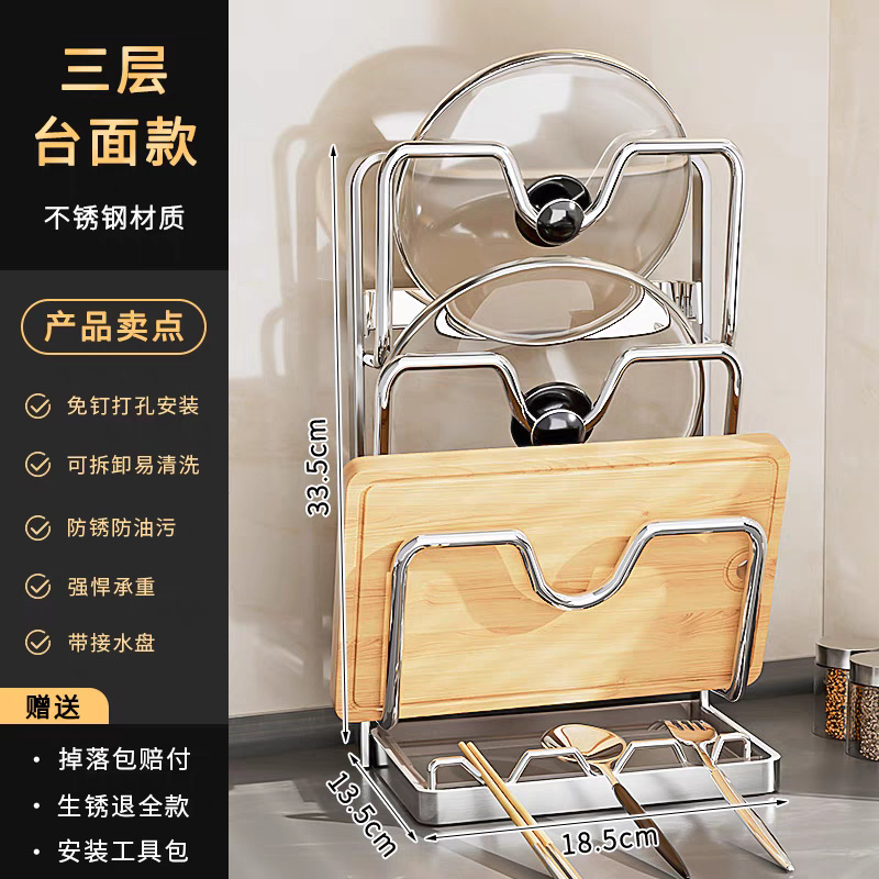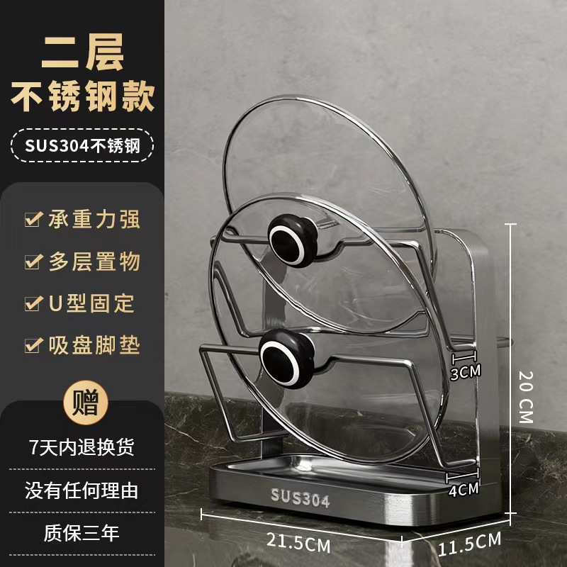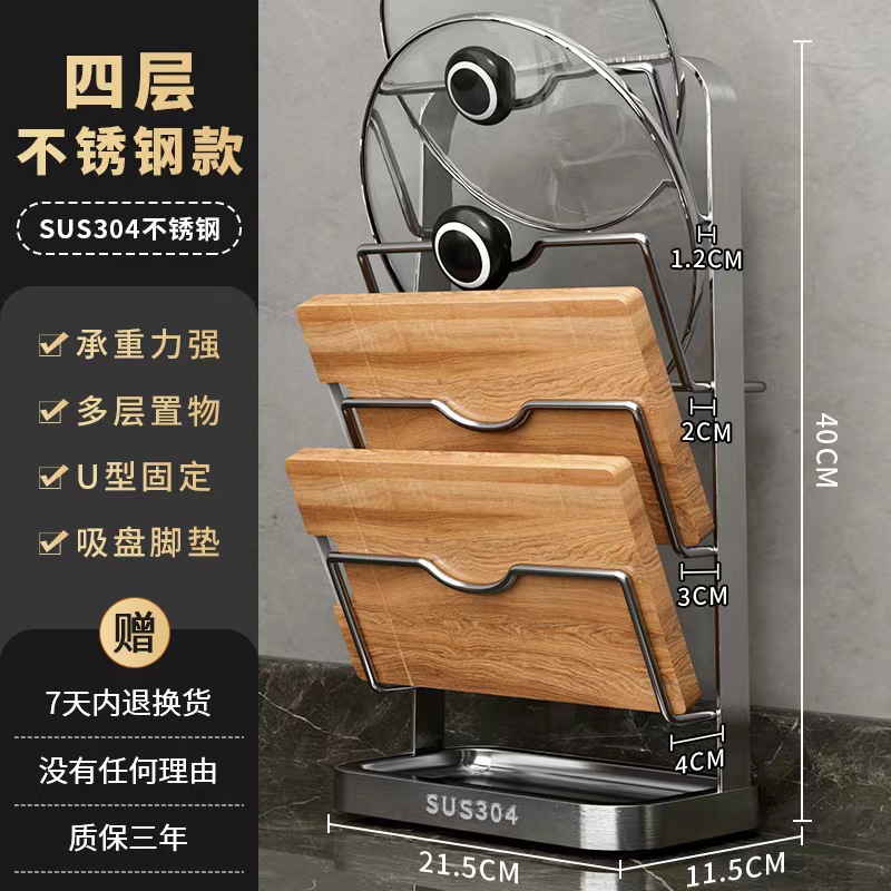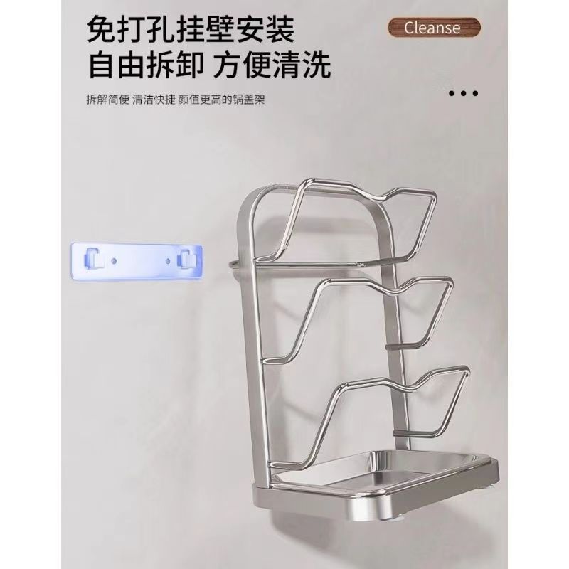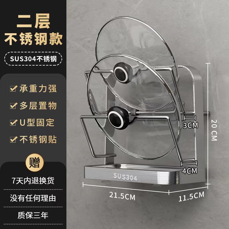 냄비 뚜껑 랙 벽걸이 비 천공 304 스테인레스 스틸 주방 보관 랙 가정용 도마 보드 다층 신제품스토어 가기