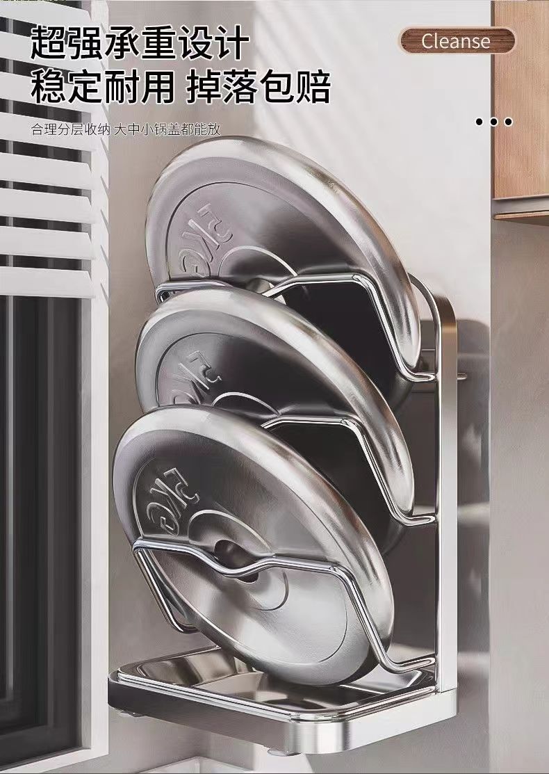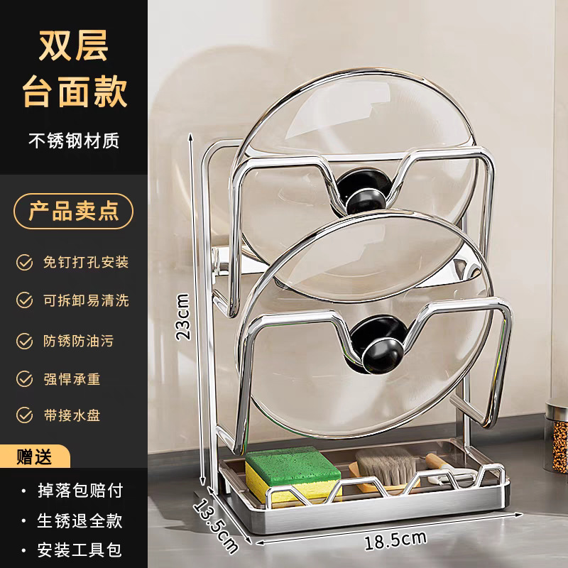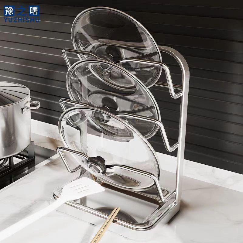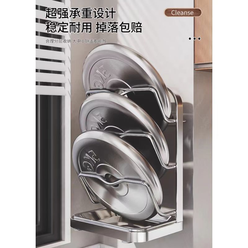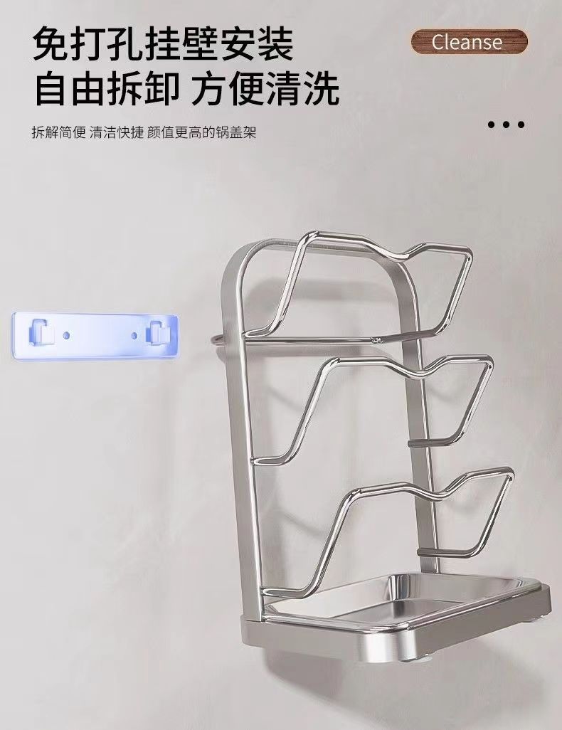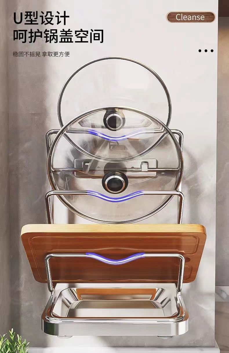 냄비 뚜껑 랙 벽걸이 비 천공 304 스테인레스 스틸 주방 보관 랙 가정용 도마 보드 다층 신제품스토어 가기