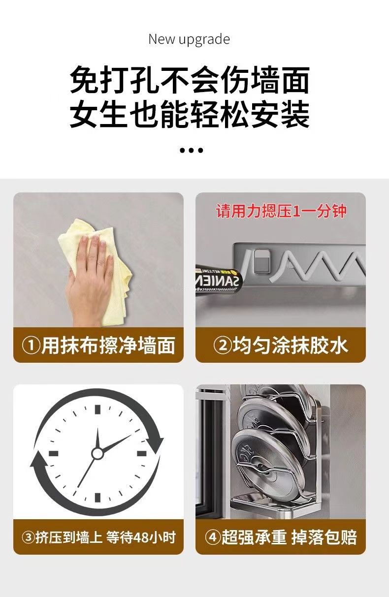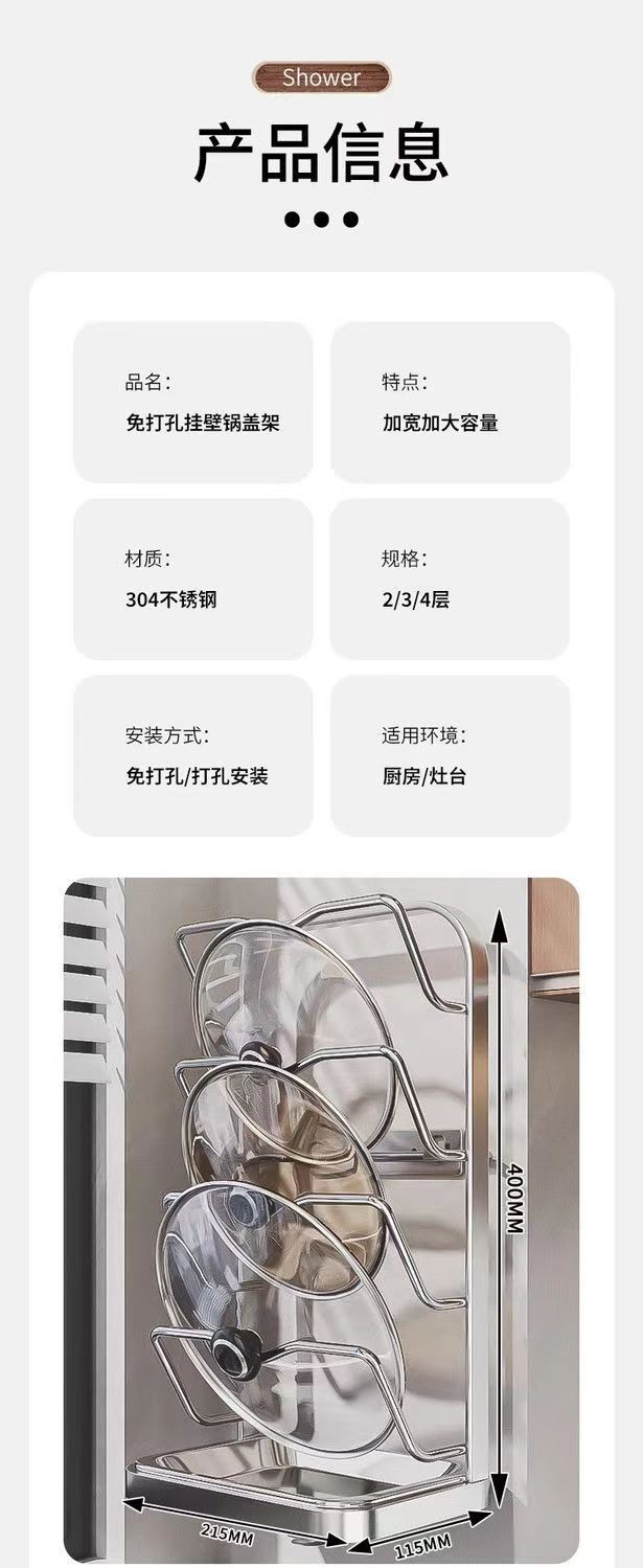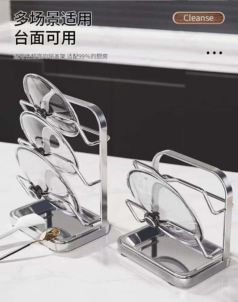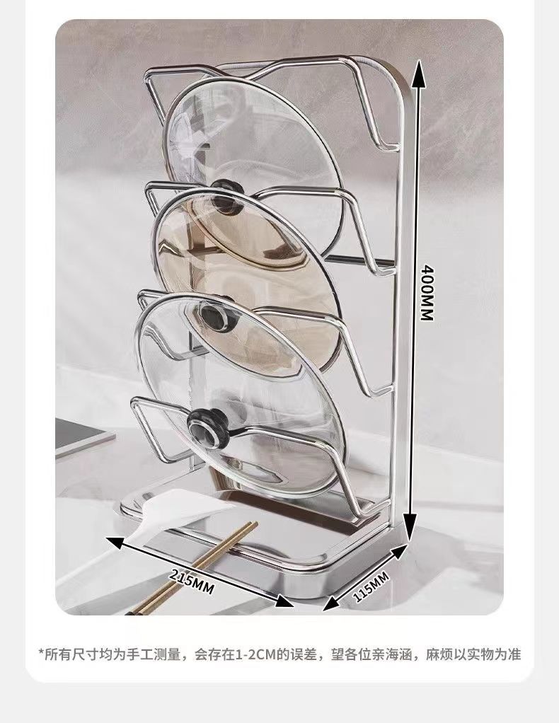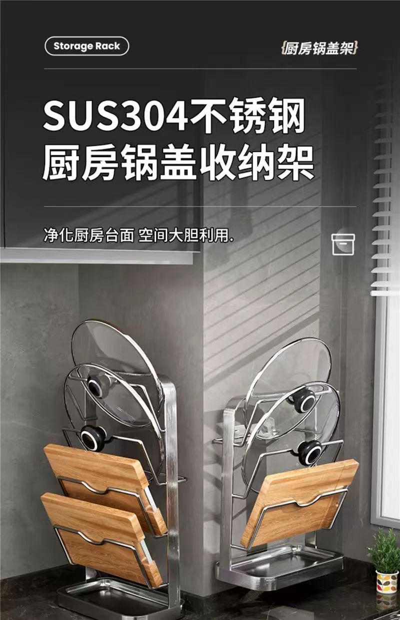 냄비 뚜껑 랙 벽걸이 비 천공 304 스테인레스 스틸 주방 보관 랙 가정용 도마 보드 다층 신제품스토어 가기