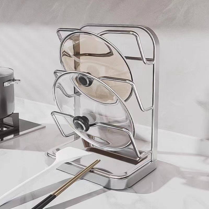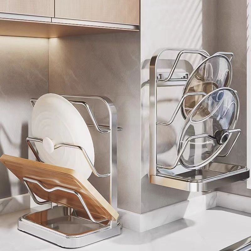 냄비 뚜껑 랙 벽걸이 비 천공 304 스테인레스 스틸 주방 보관 랙 가정용 도마 보드 다층 신제품