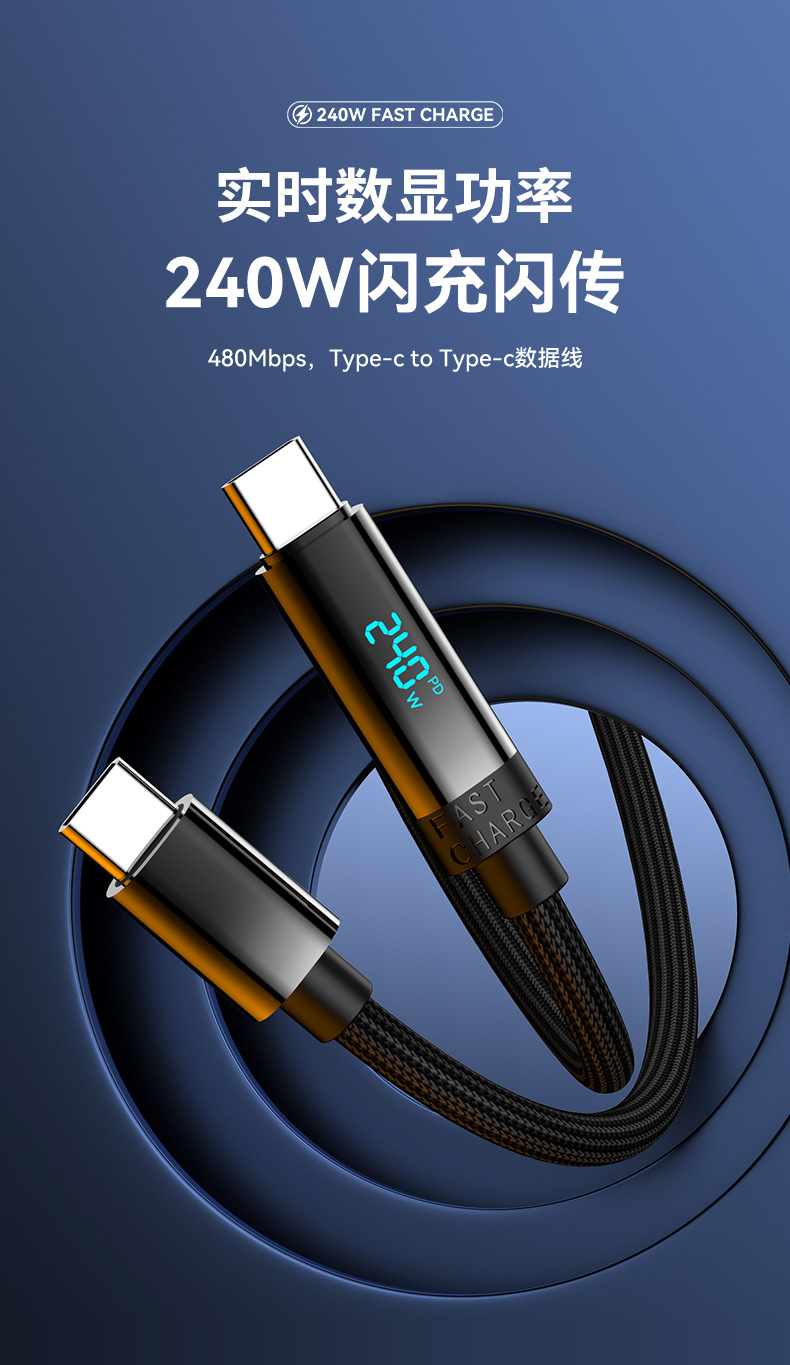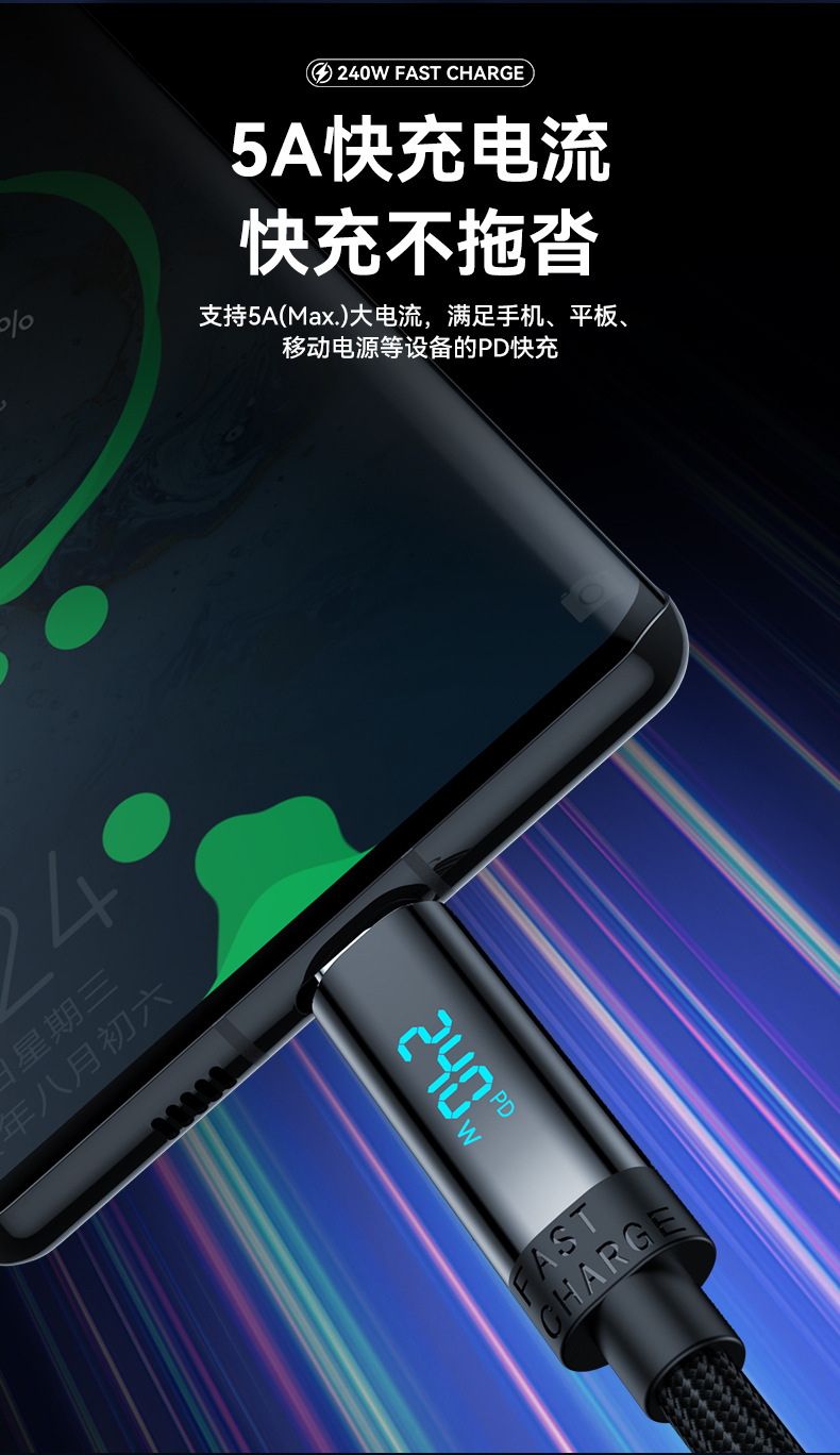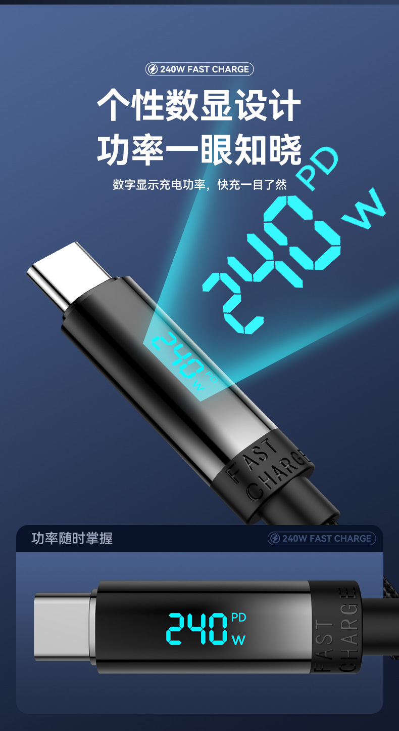 새로운 240W 듀얼 TYPE-C 빠른 충전 라인 PD 디지털 디스플레이 C-C 노트북 충전 라인 전체 프로토콜 높은 전원 빠른 충전
