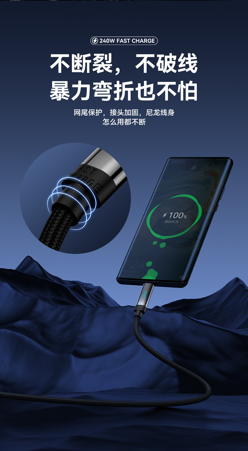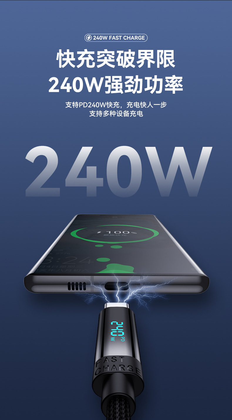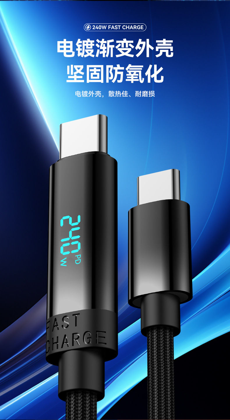 새로운 240W 듀얼 TYPE-C 빠른 충전 라인 PD 디지털 디스플레이 C-C 노트북 충전 라인 전체 프로토콜 높은 전원 빠른 충전