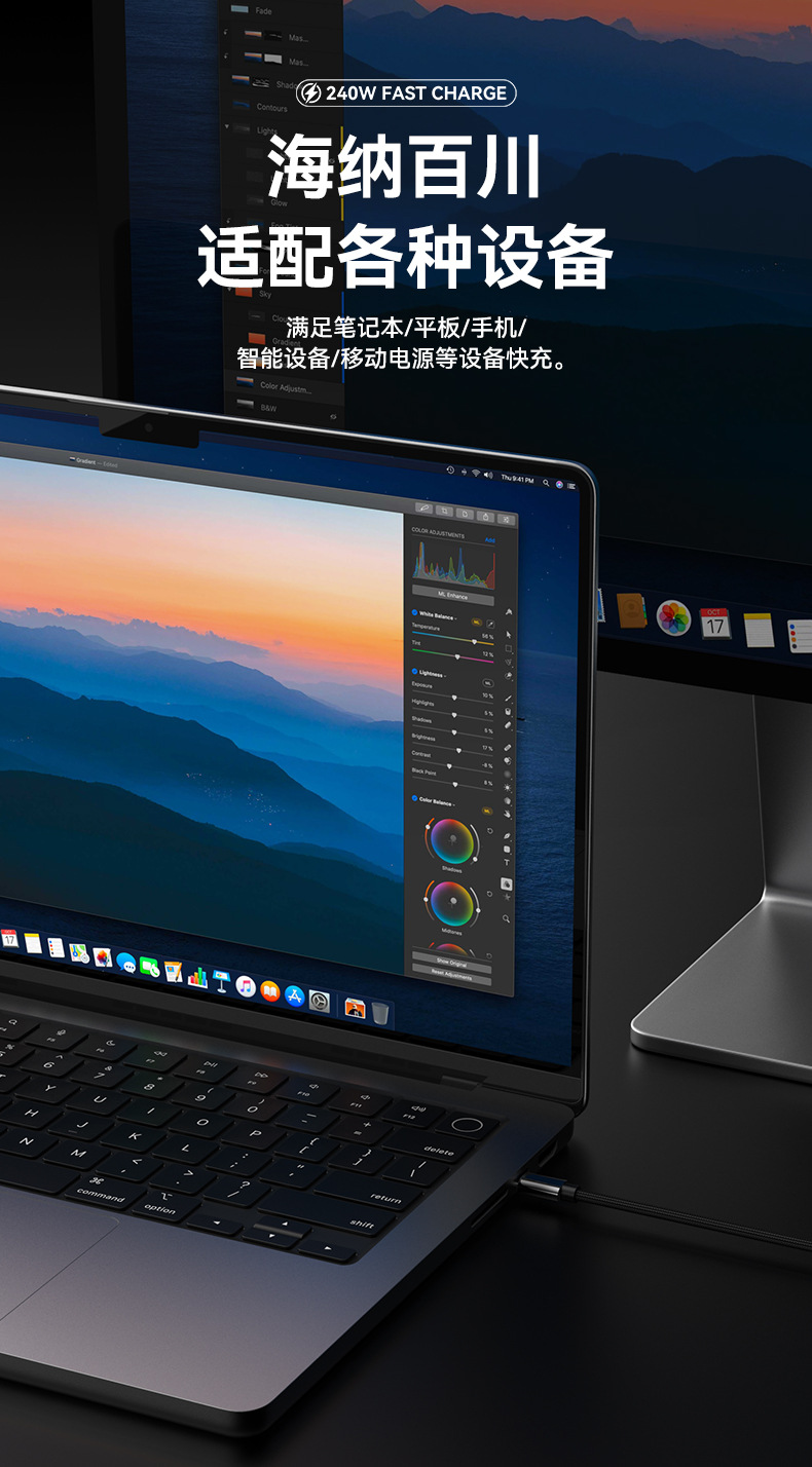 • 블랙 240W 고속 충전丨지능형 디지털 디스플레이丨노트북/휴대폰/태블릿용 범용