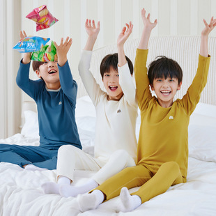 2025新品高弹男童秋衣秋裤秋冬中大童撞色领睡衣儿童保暖内衣套装