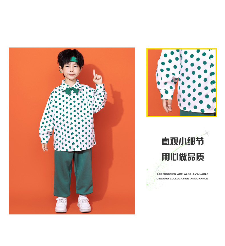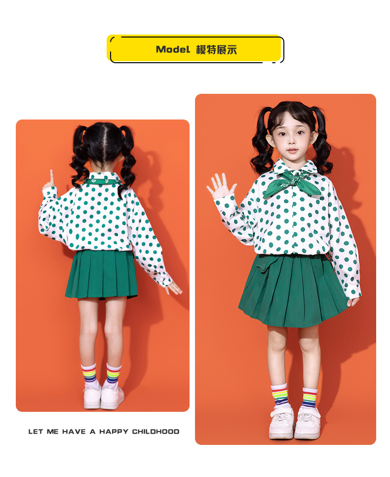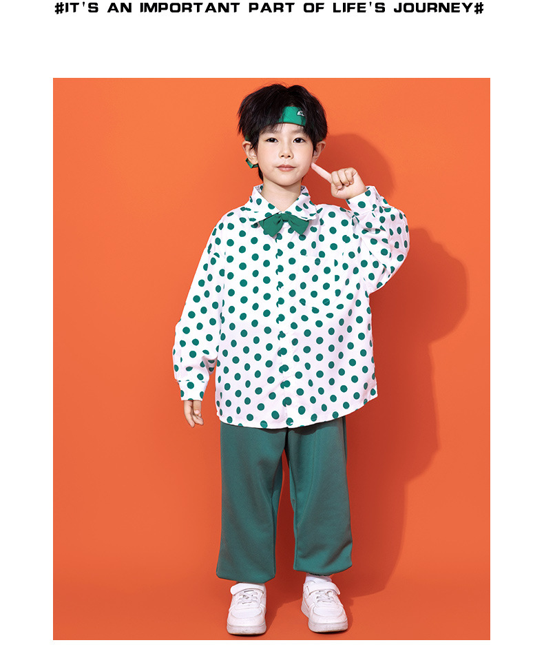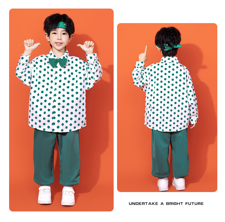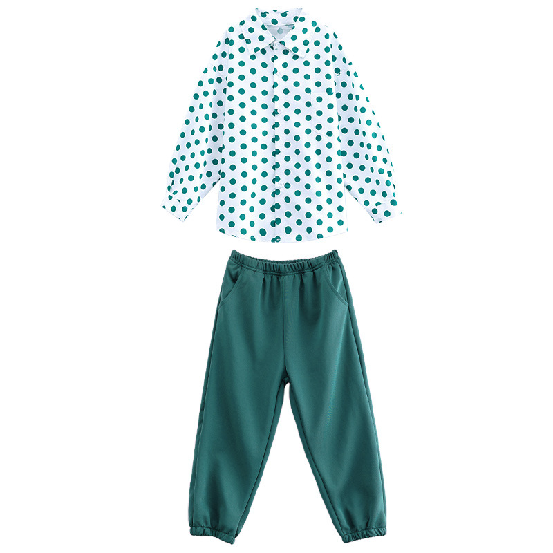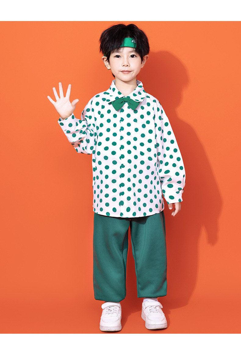 • A562 흰색 도트무늬 긴팔 + B331 녹색 바지