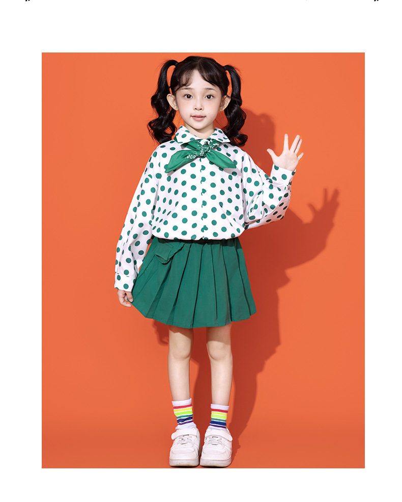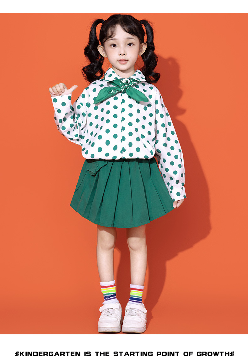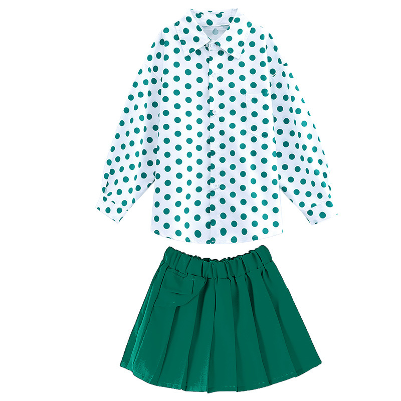 • A562 화이트 도트 긴팔 + B225 그린 스커트