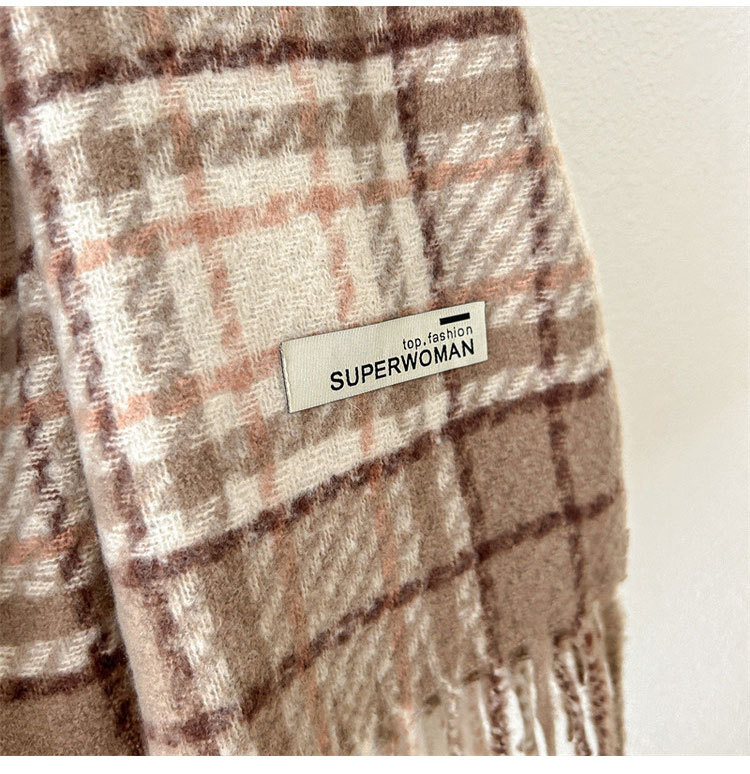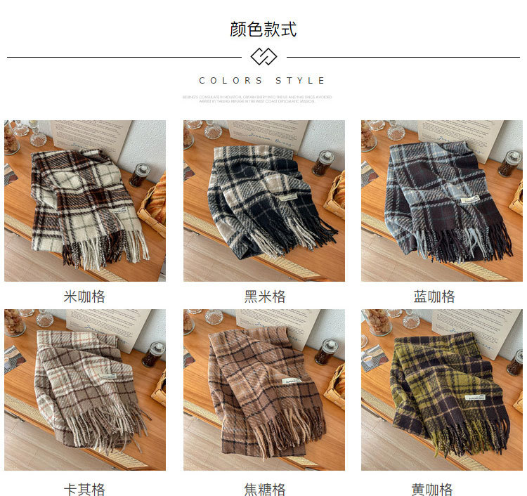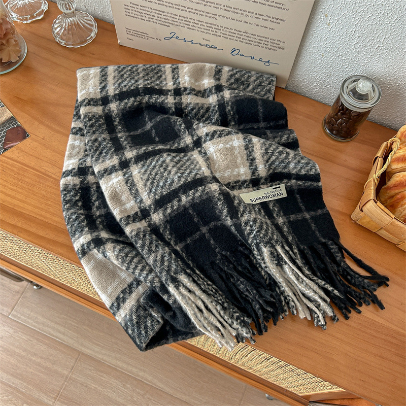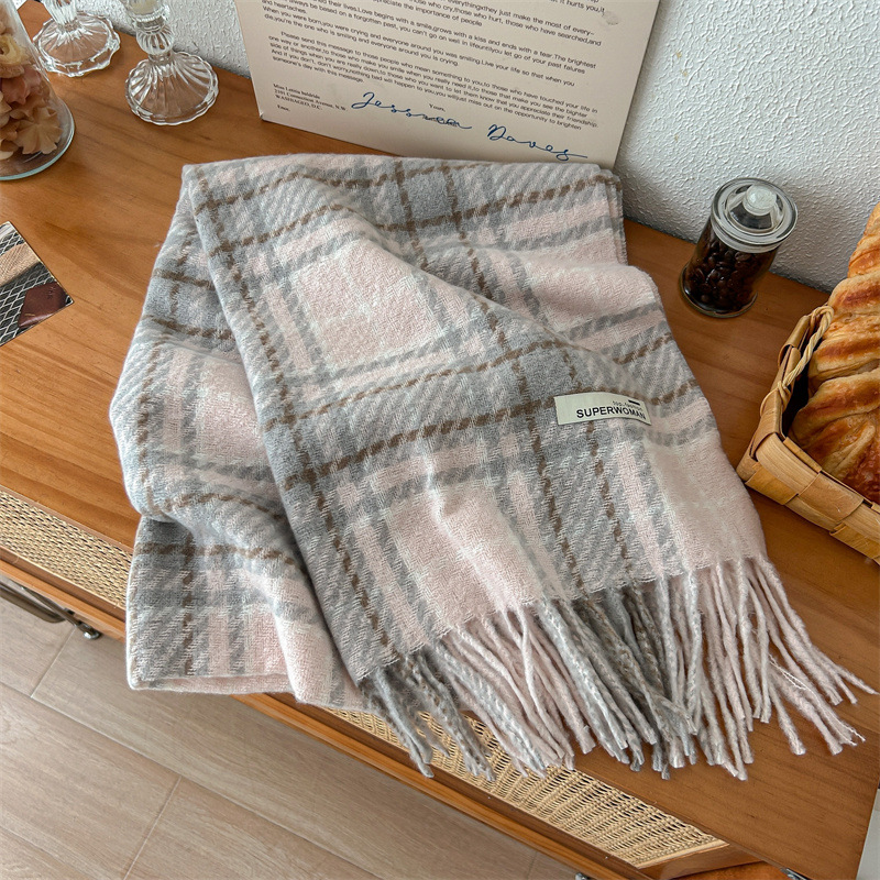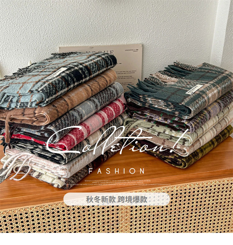 2024 뉴 루프 원사 소프트 왁스 격자 무늬 스카프 여자 겨울 하이 엔드 한국식 올매치 따뜻한 술 목도리 국경스토어 가기