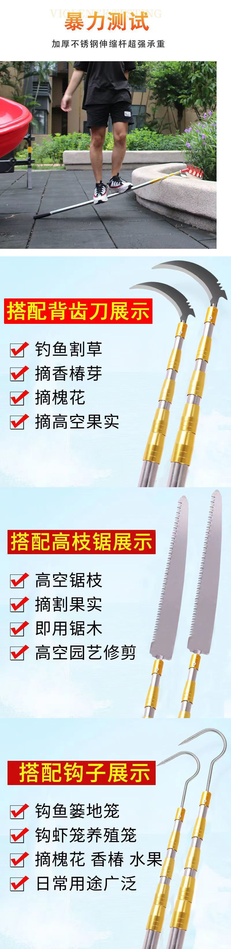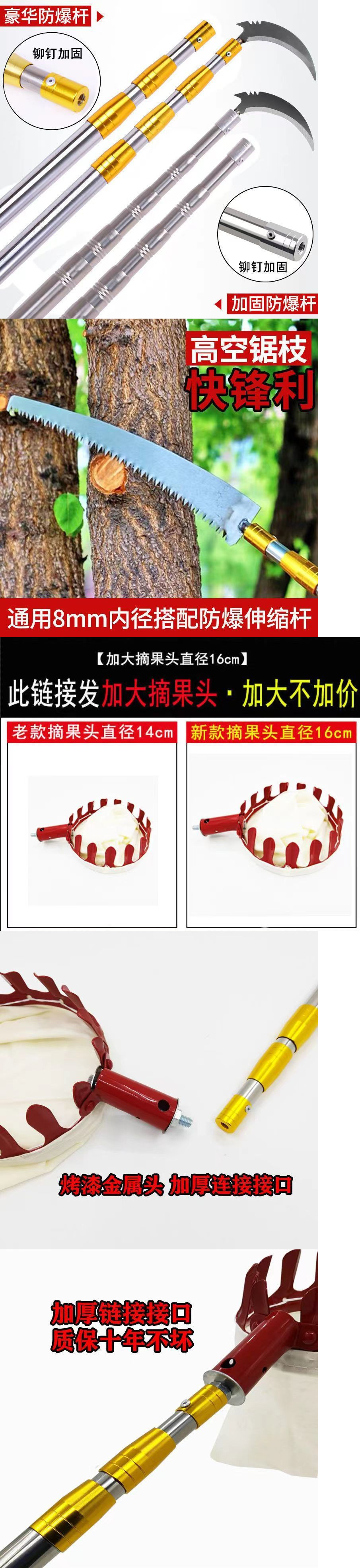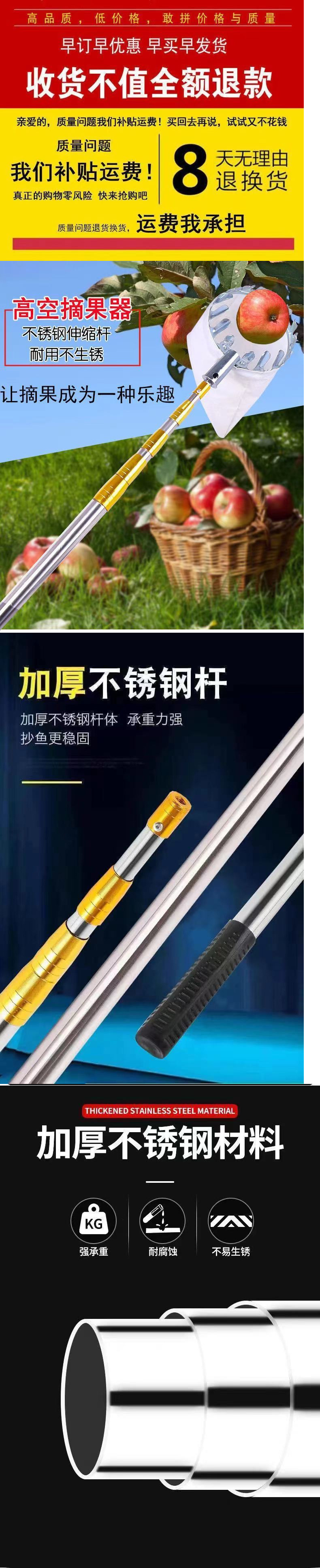 Loquat Artifact 다기능 스테인레스 스틸 고고도 과일 따기 인공물 감 따기 툰 사계절 따기 막대 손잡이