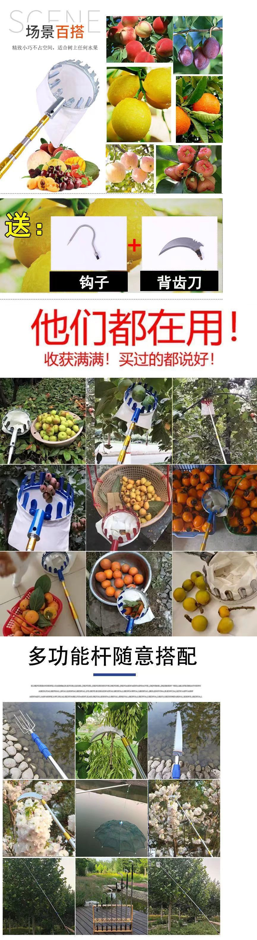 • 업그레이드된 두꺼운 스테인레스 스틸 과일 따기 [무료 칼 + 툰 후크 + 하이 브랜치 톱]