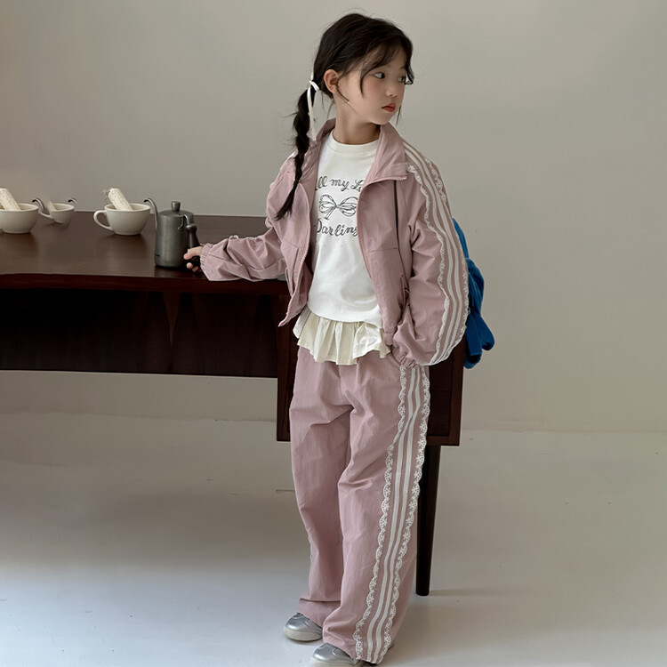 소녀의 봄 가을 스포츠 세트 2024 새로운 한국 스타일 외국 스타일 그물 붉은 소녀의 가을 캐주얼 자켓 투피스 세트