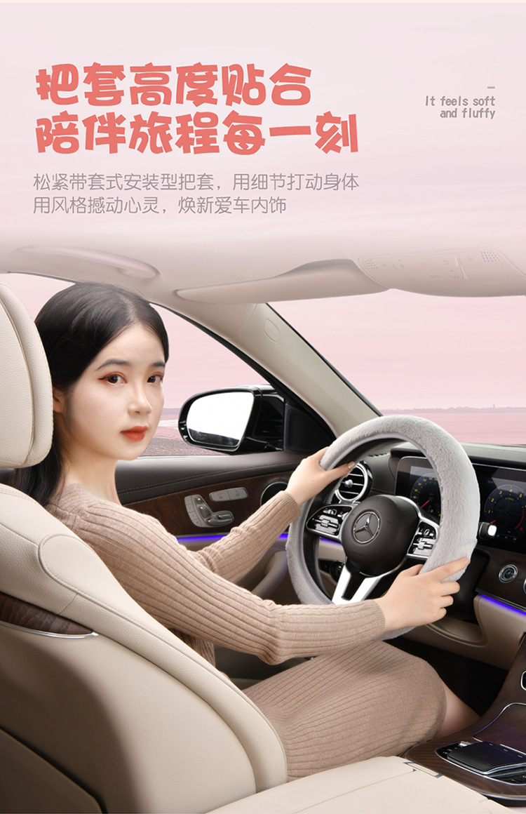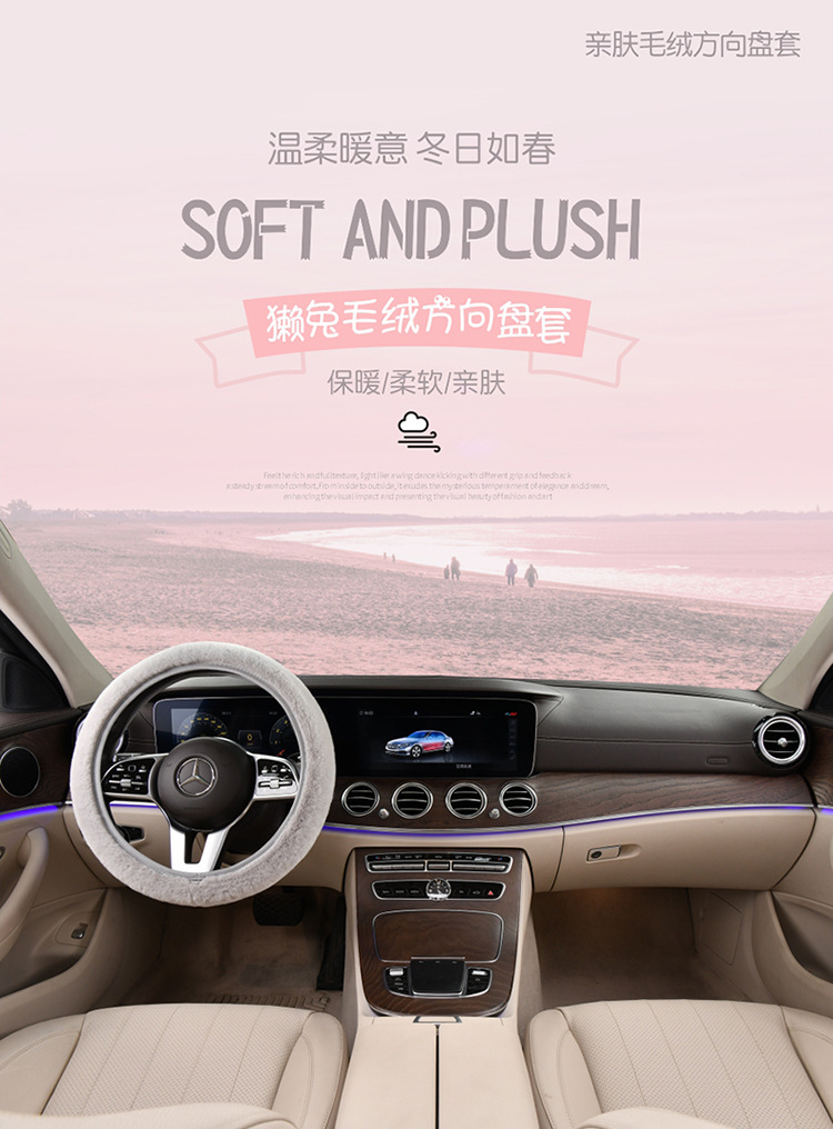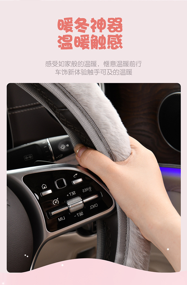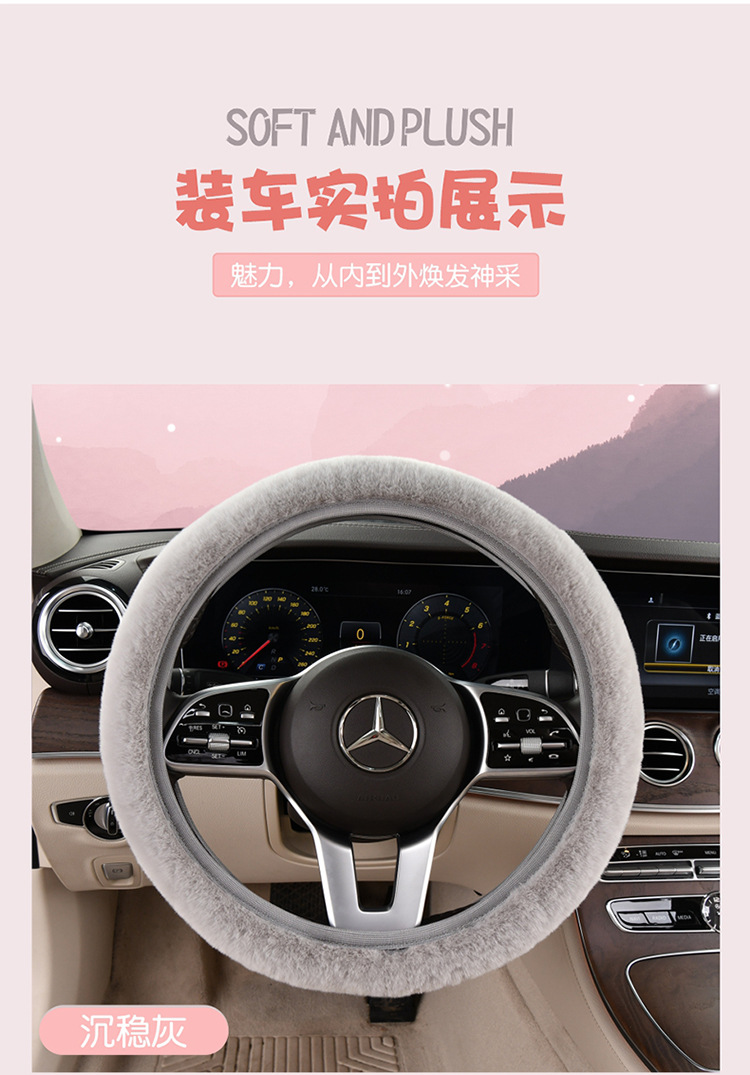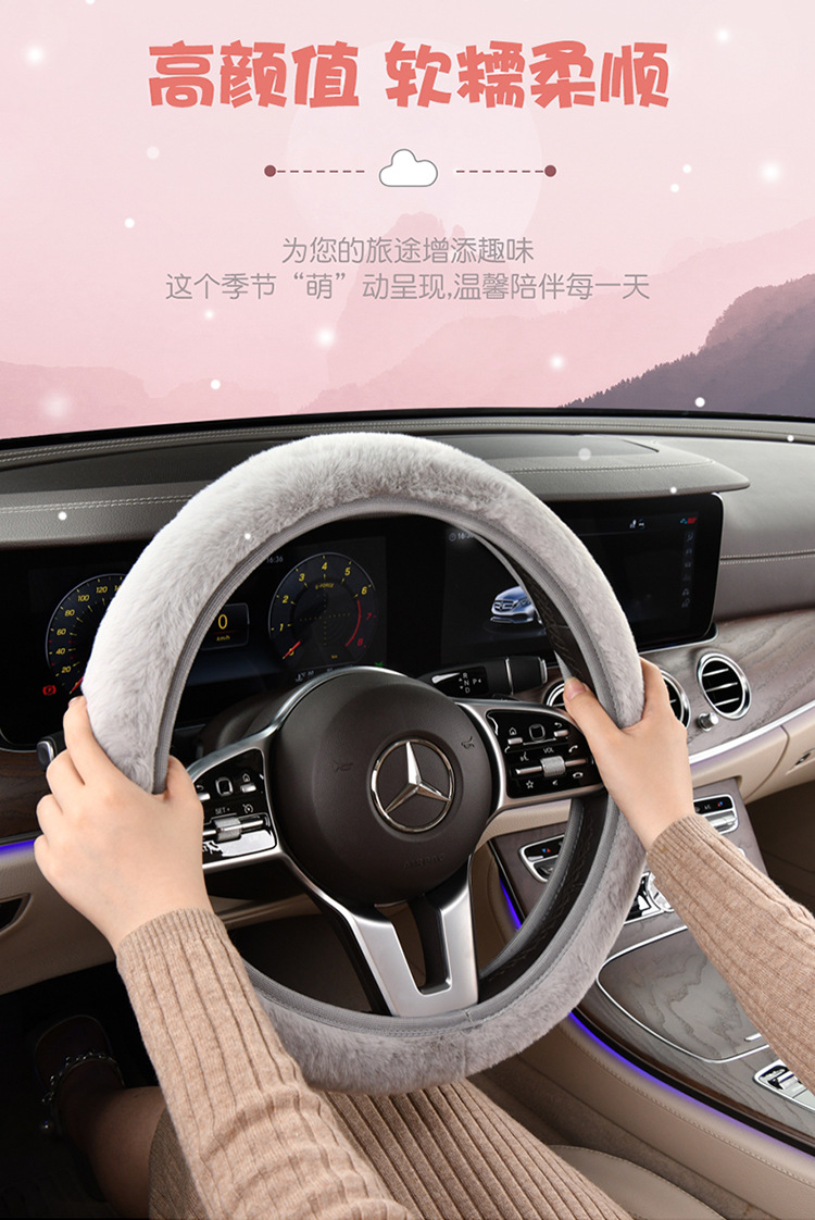 새로운 겨울 게으른 토끼 모피 플러시 자동차 핸들 커버 미끄럼 방지 범용 탄성 밴드 새로운 자동차 겨울 필수 핸들 커버스토어 가기