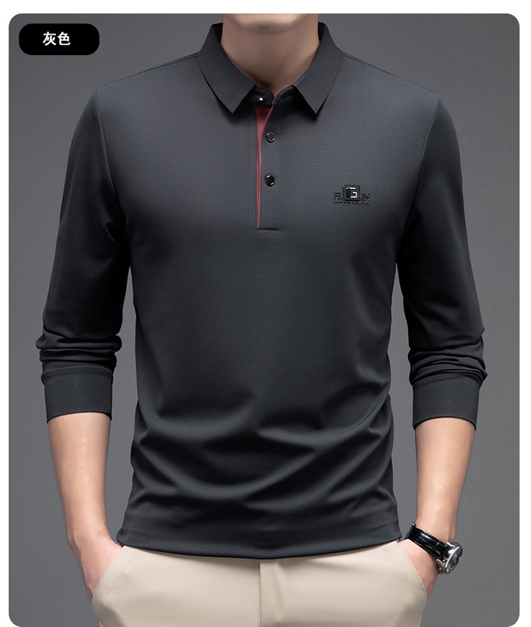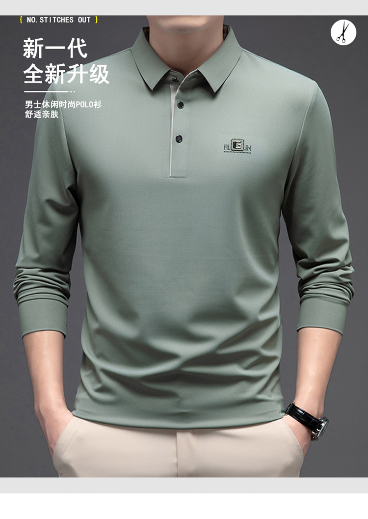 완벽한 완벽한 가을 새로운 남성 긴 소매 옷깃 원활한 폴로 셔츠 간단한 캐주얼 바닥 티셔츠 캐주얼 남성