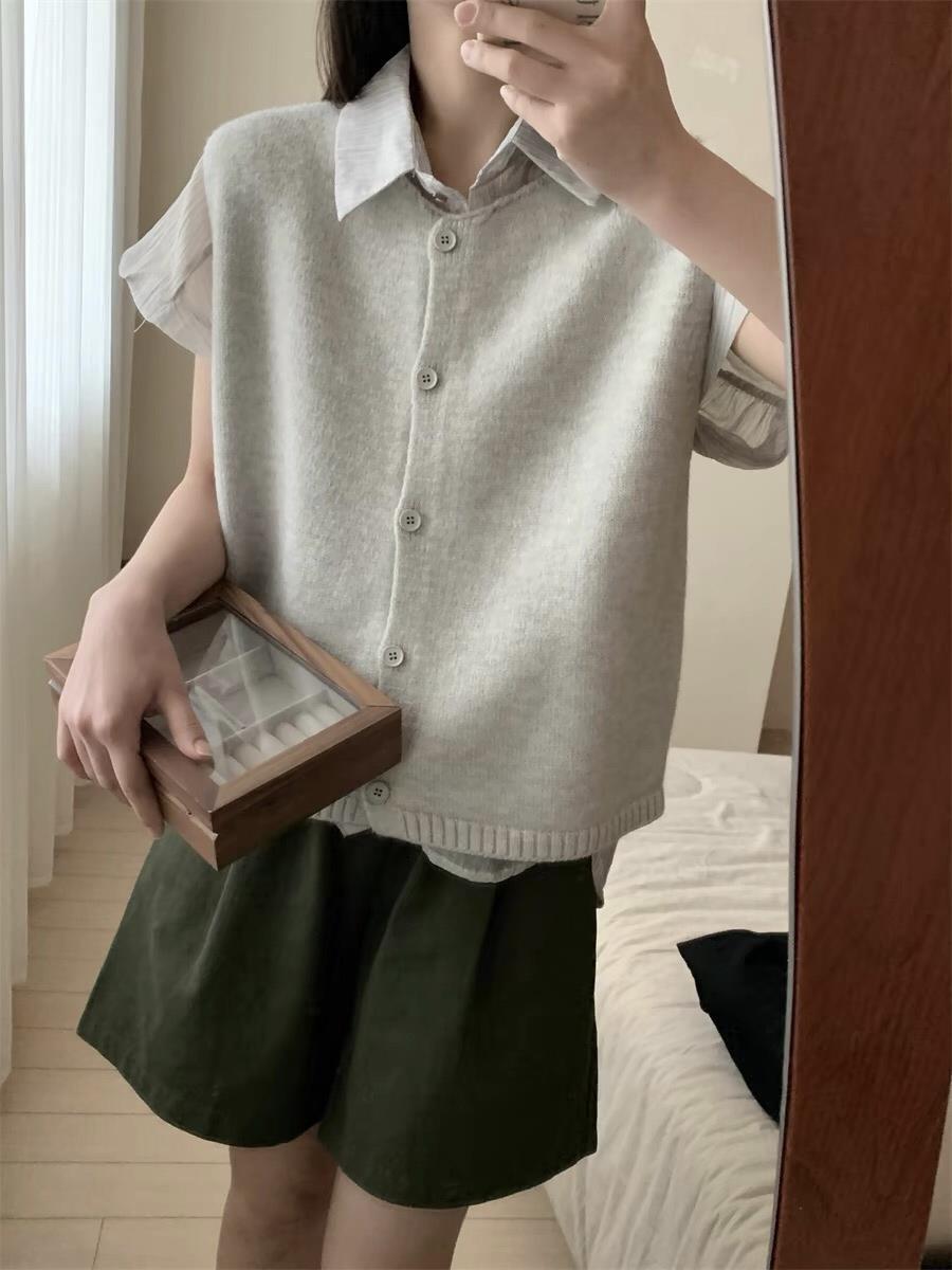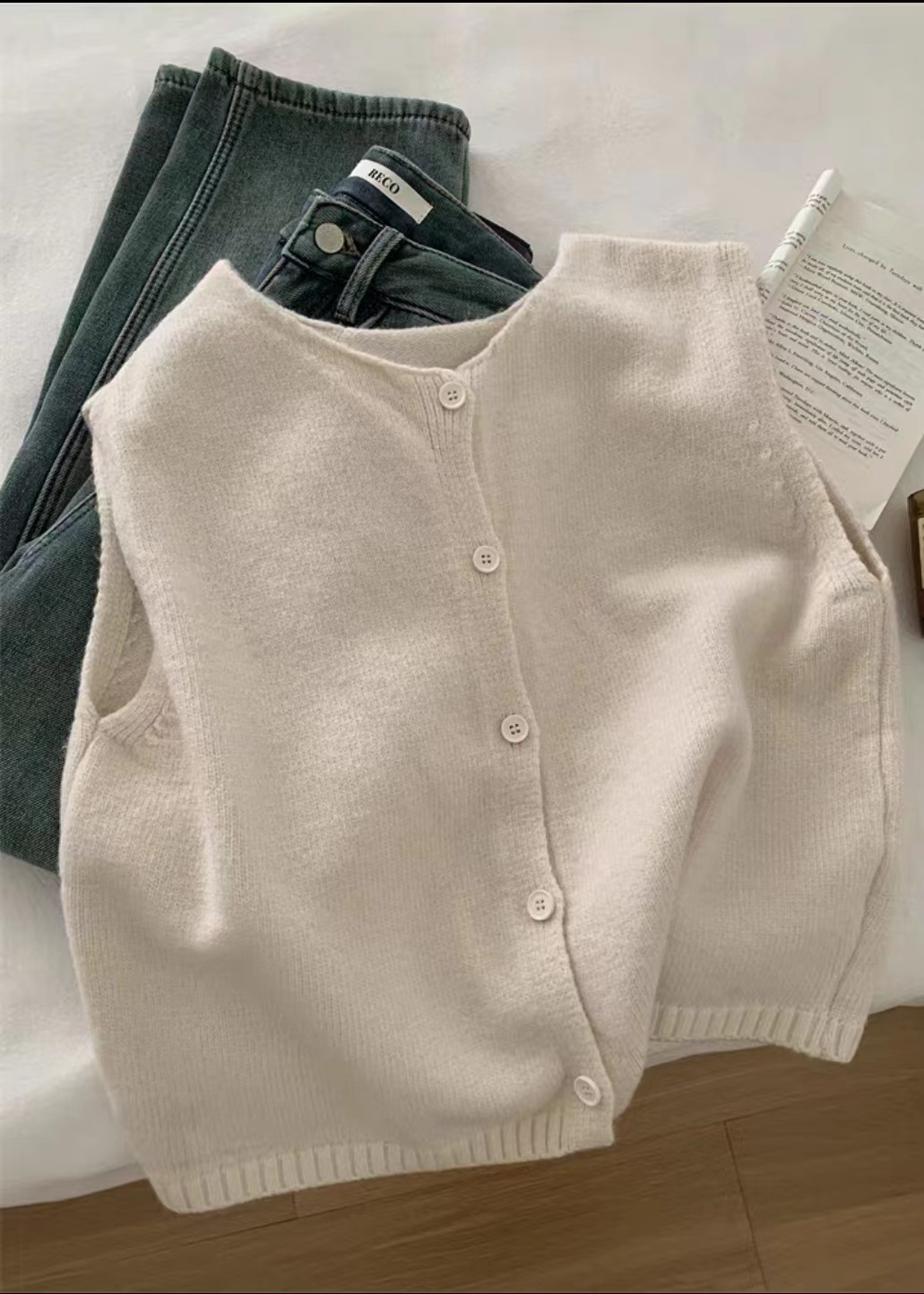 101.2kg 여성용 양면 니트 조끼 초가을 새로운 한국 스타일 느슨한 복고풍 부드러운 밀랍 스웨터 조끼 레이어드 카디건