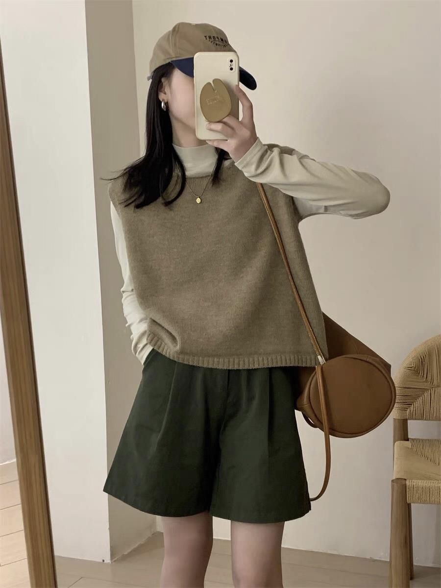 101.2kg 여성용 양면 니트 조끼 초가을 새로운 한국 스타일 느슨한 복고풍 부드러운 밀랍 스웨터 조끼 레이어드 카디건스토어 가기