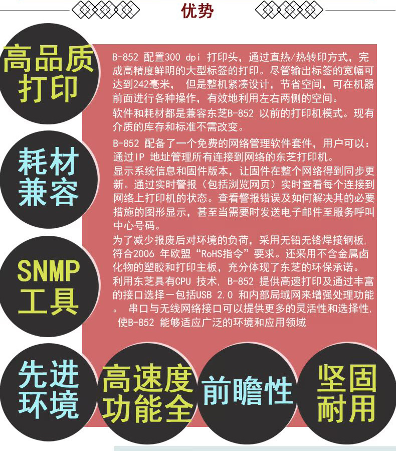 TOSHIBA Toshiba TEC B-852-TS22 와이드 산업용 바코드 라벨 프린터 300dpi 프린터
