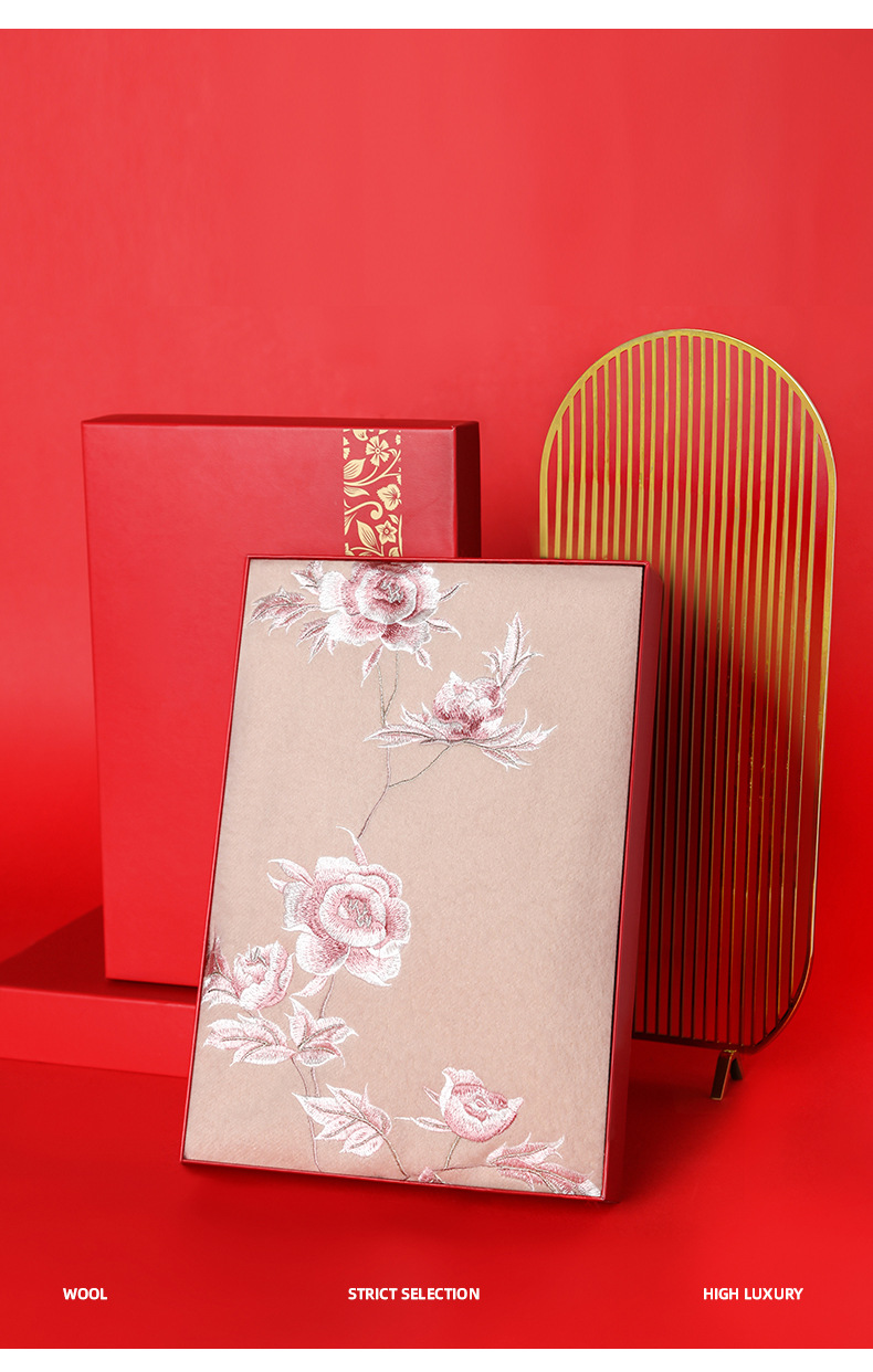양모 스카프 여성 국가 스타일 자수 양모 목도리 여성 생일 선물 상자