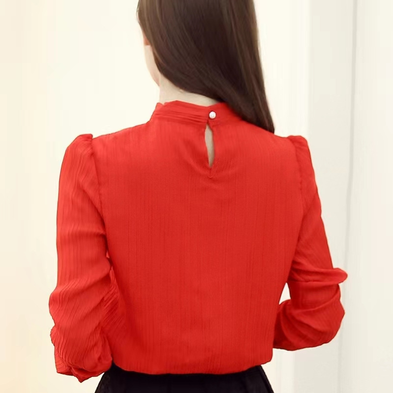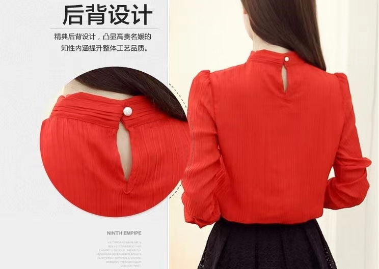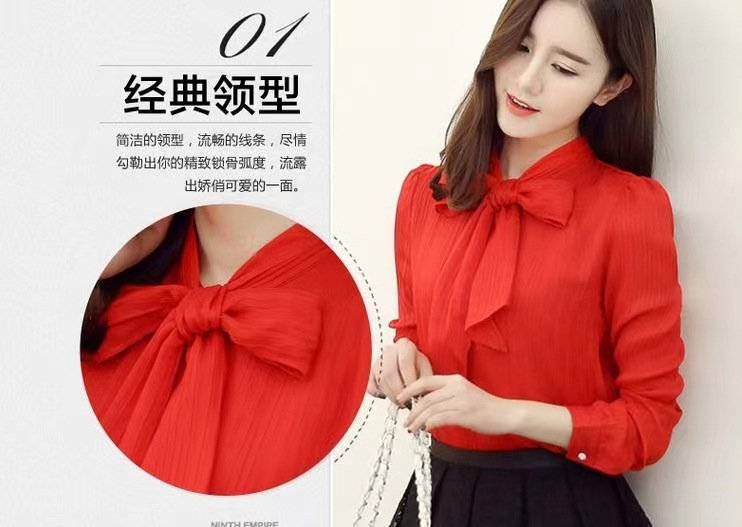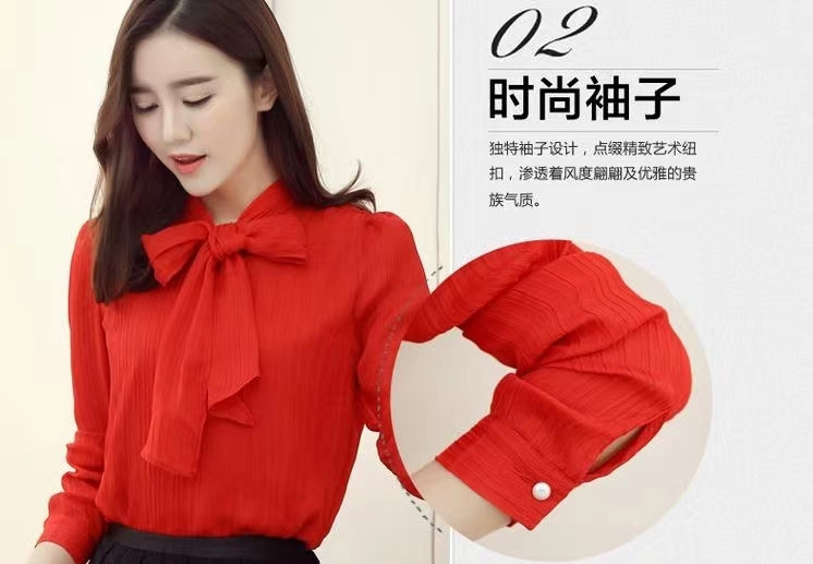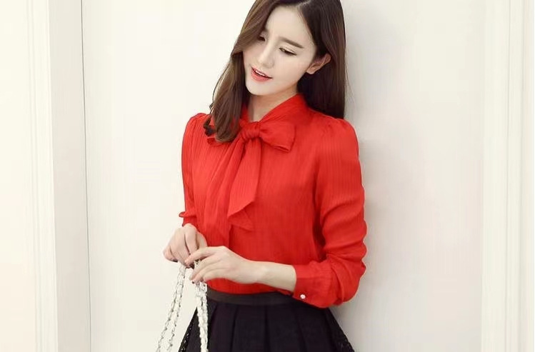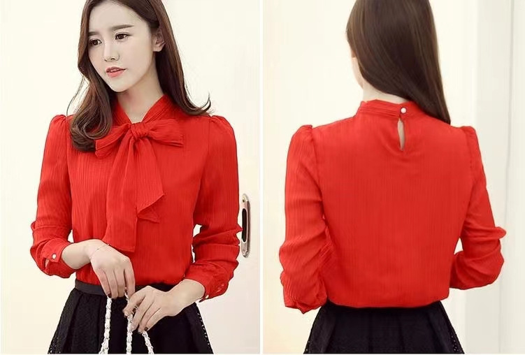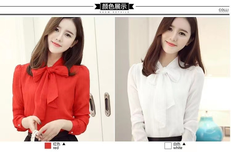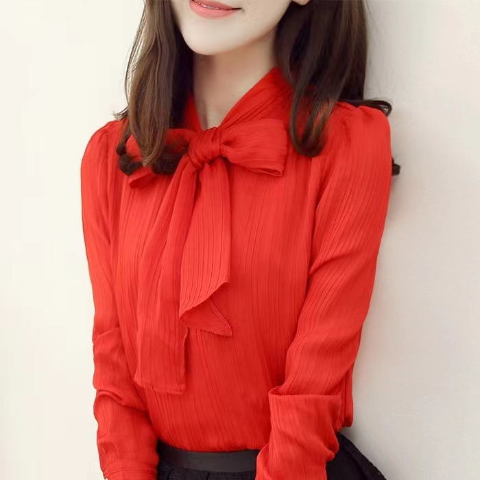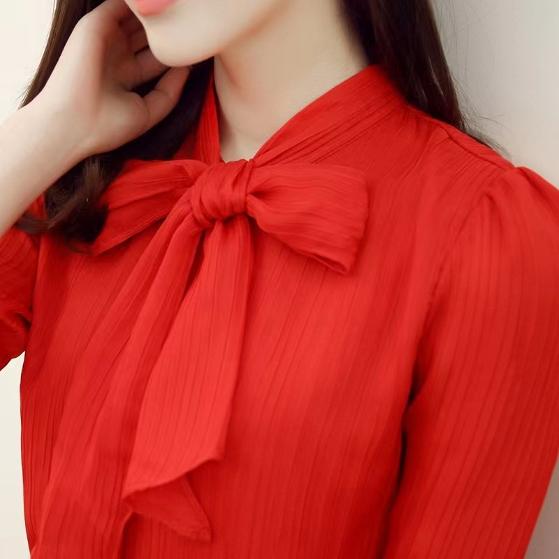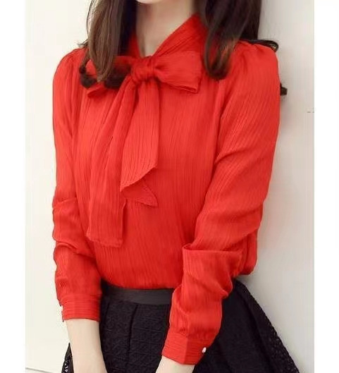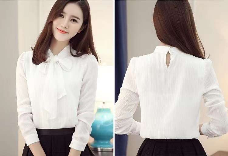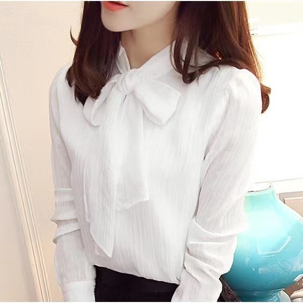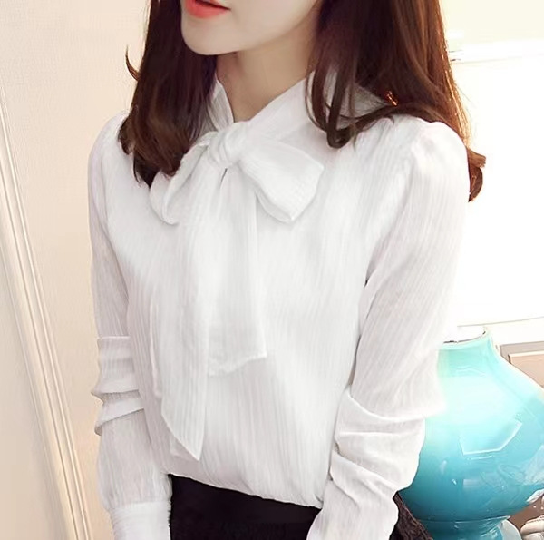 신형 한국식 올매치 심플 느슨한 슬리밍 쉬폰 스트랩 보우 긴소매 셔츠 여성 패셔블 탑스토어 가기