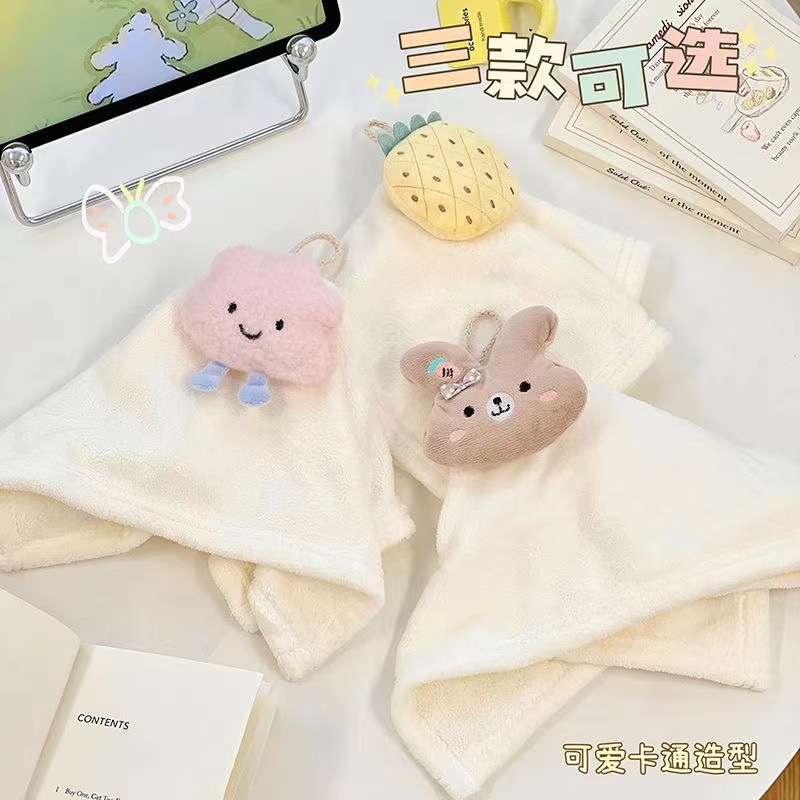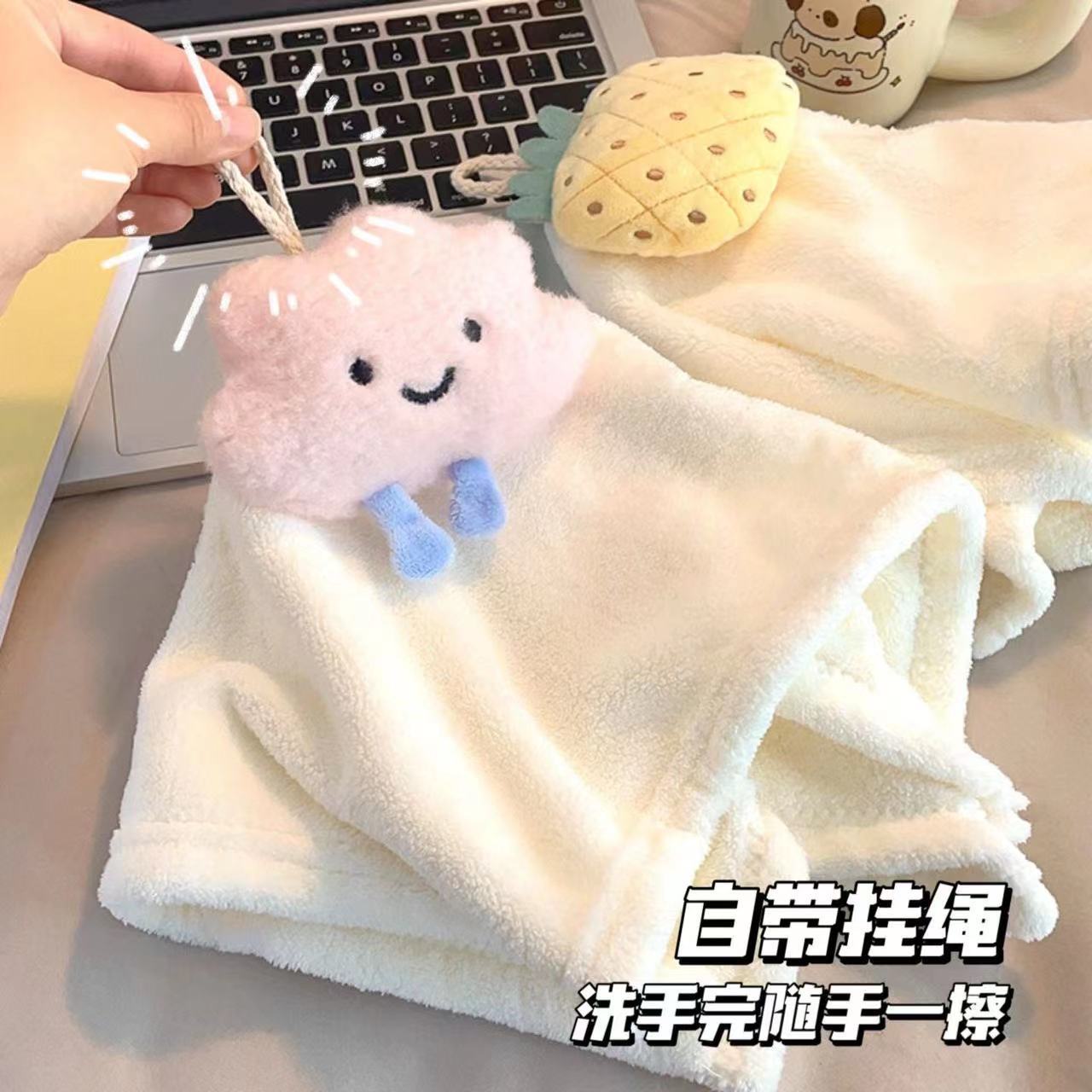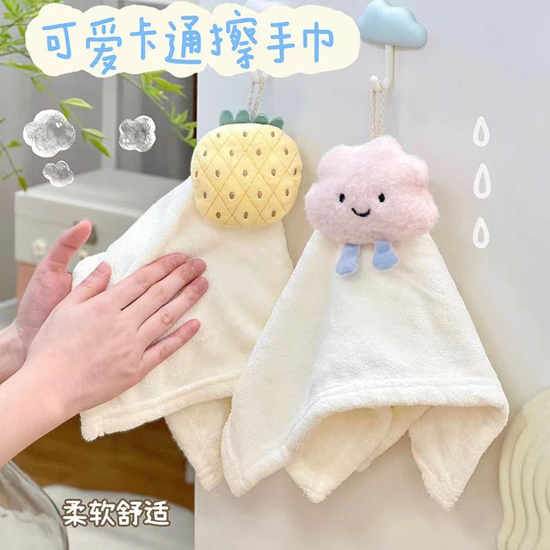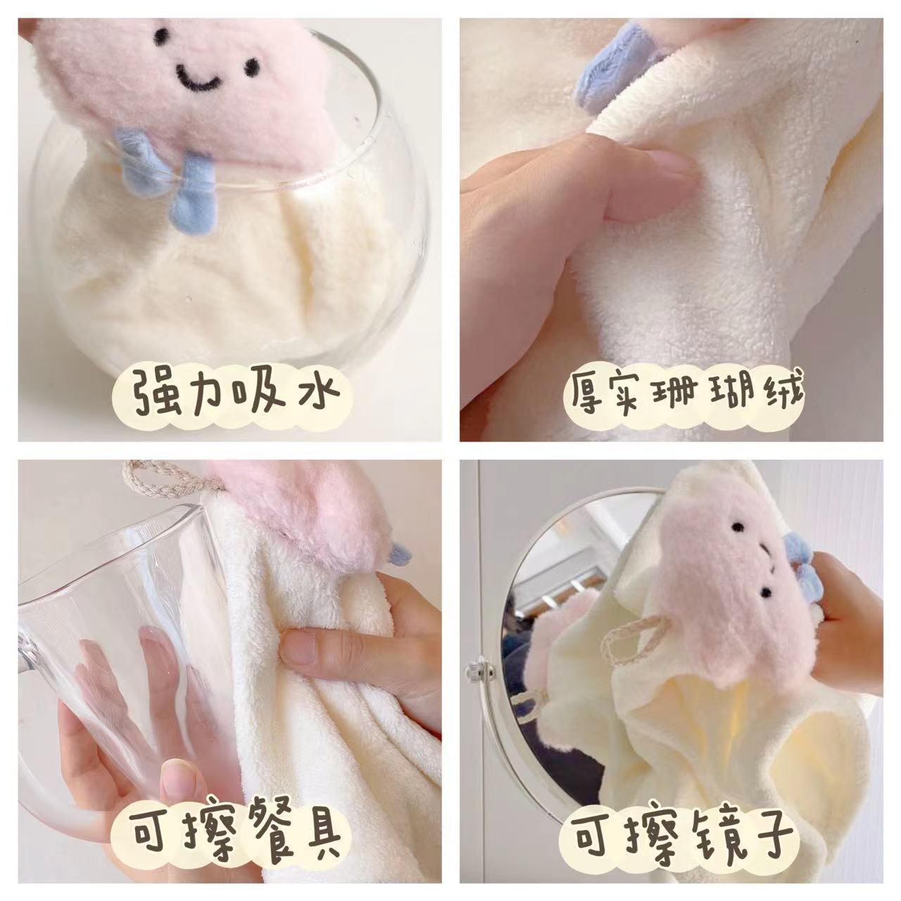 Ins 스타일 산호 양털 핸드 타월 교수형 만화 핸드 타월 주방 욕실 흡수성 타월 스퀘어 타월