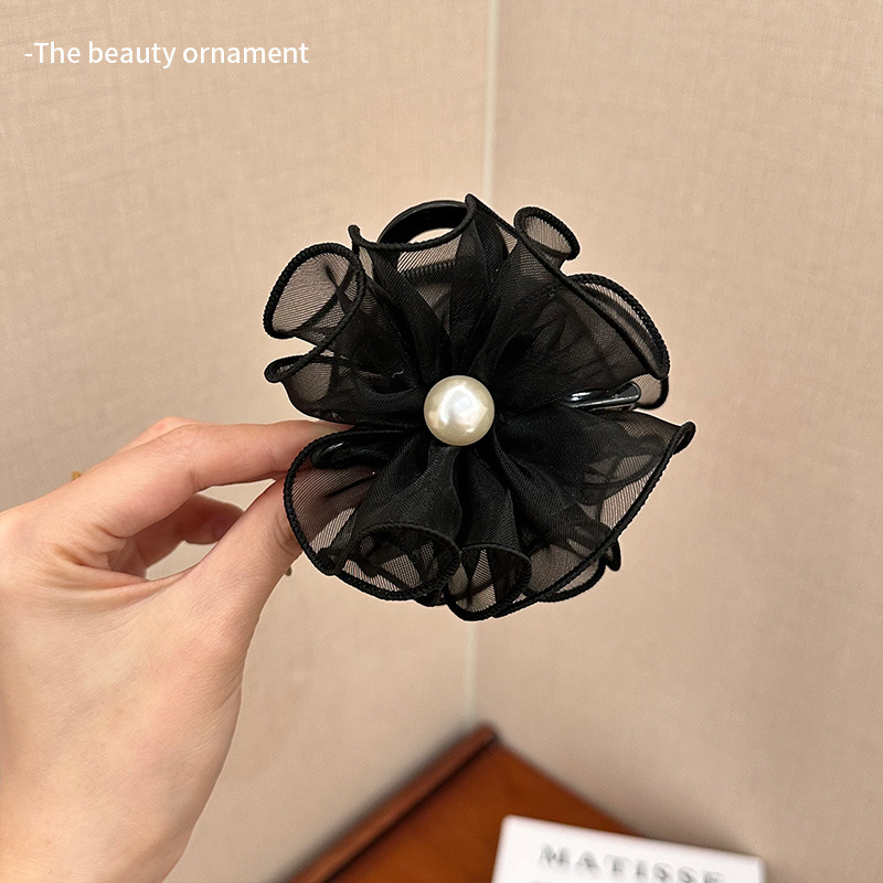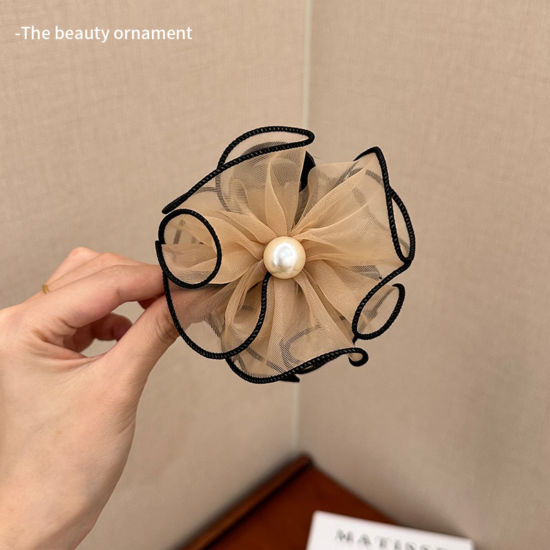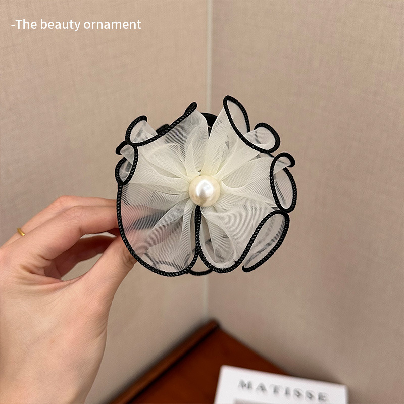 슈퍼 페어리 메쉬 펄 플라워 그랩 클립 포레스트 플라워 버드 헤어 클립 여성용 헤드 코일 헤어 하프 타이 상어 클립 헤드웨어