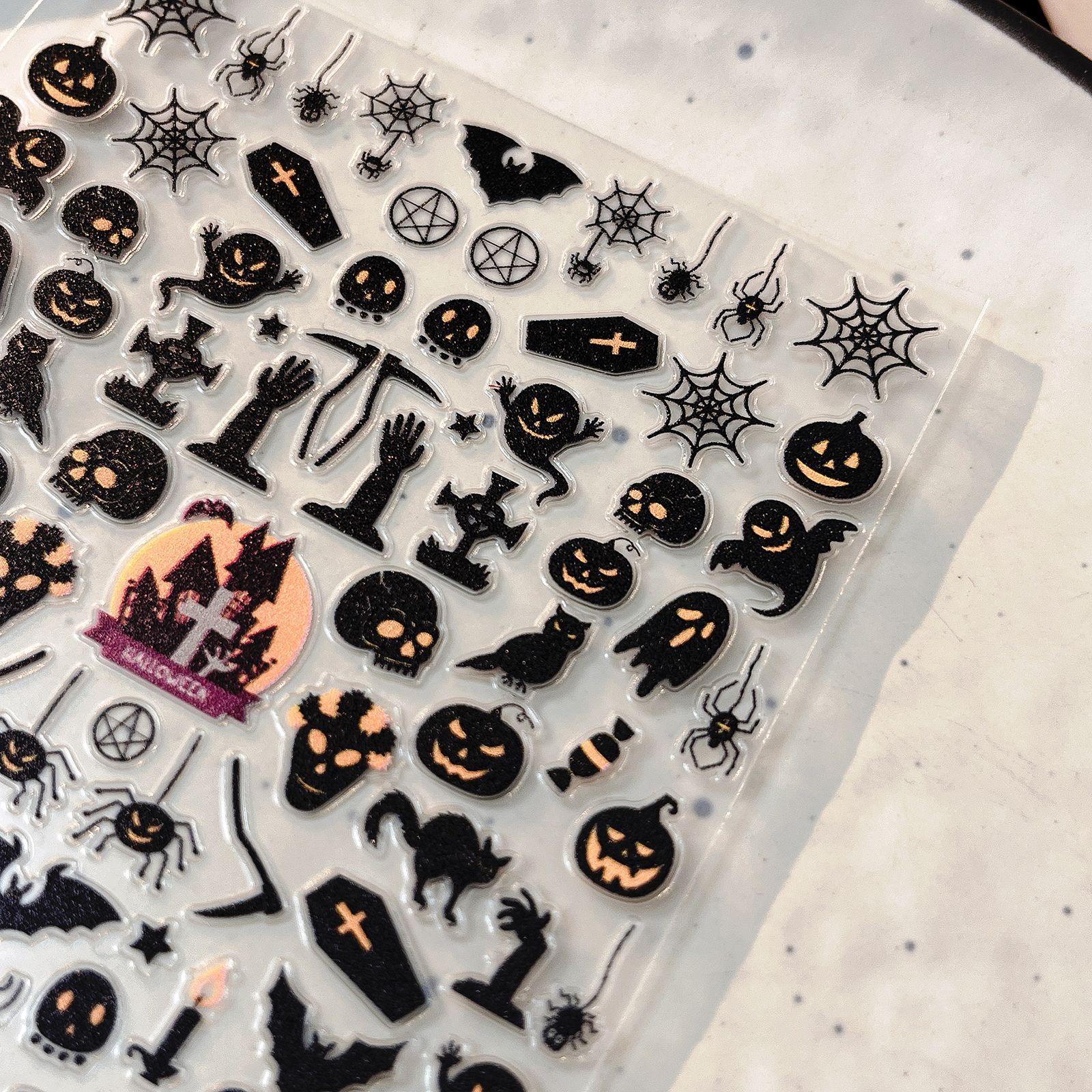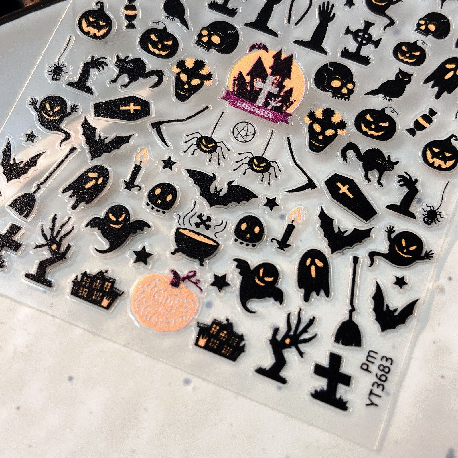 YITU 2025년 신제품 할로윈 네일 스티커 호박 박쥐 얇고 유연한 네일 스티커 YT3683스토어 가기