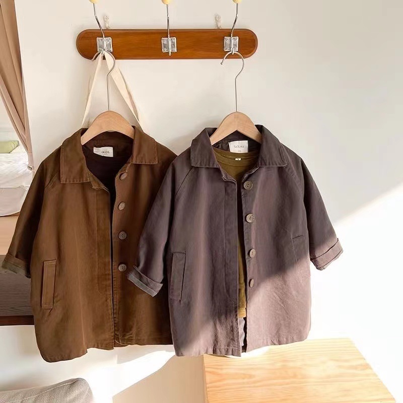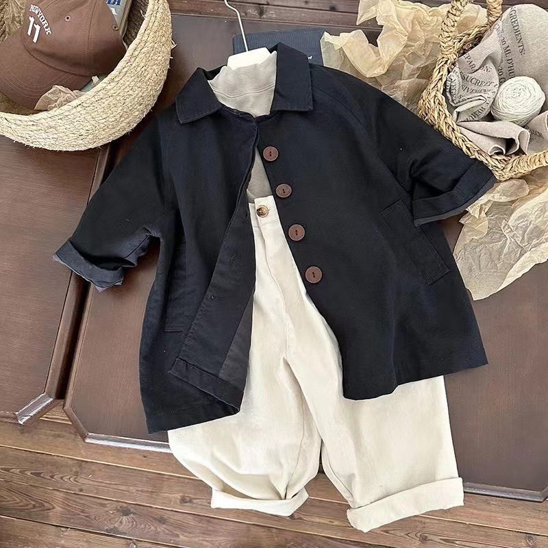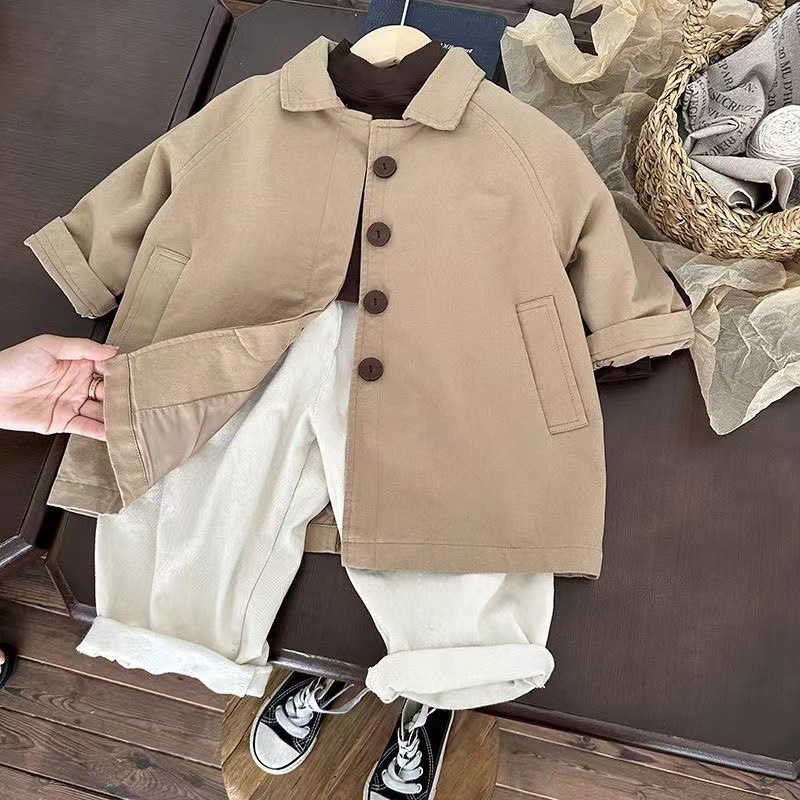 어린이 순면 코트 봄과 가을 한국 스타일 서양식 소년 코트 중간 길이의 아기 소녀의 올매치 캐주얼 탑