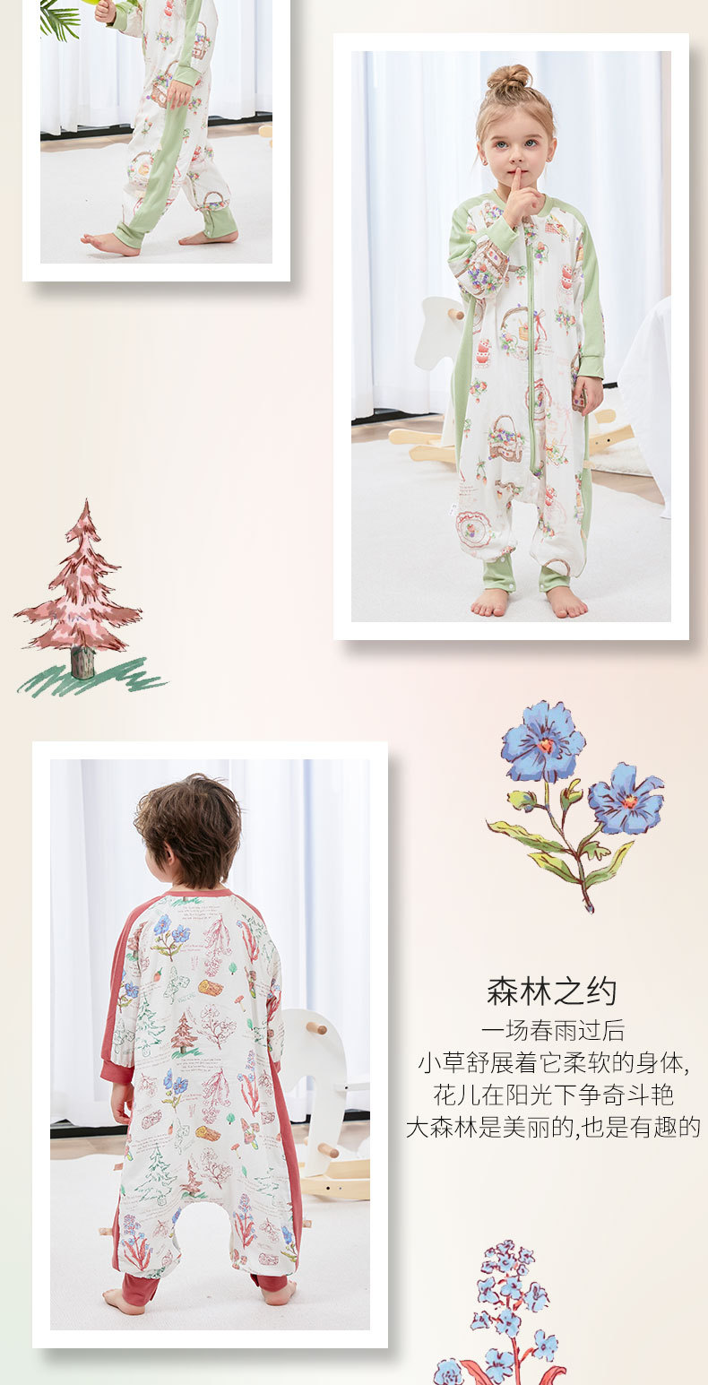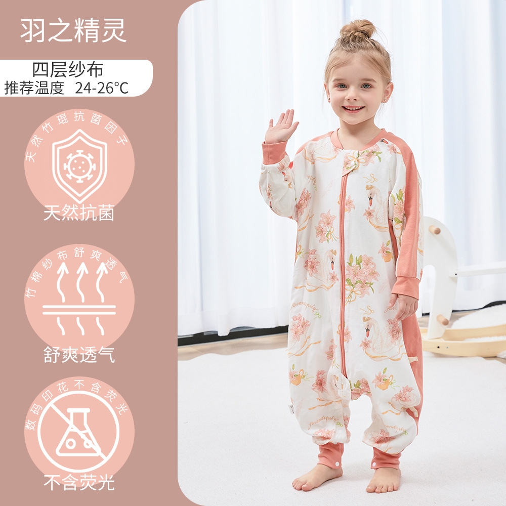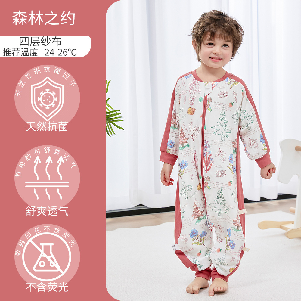 대나무 면화 아기 분할 다리 침낭 대나무 섬유 점프 슈트 거즈 어린이 항균 아기 잠옷 안티 킥 이불 유형 A스토어 가기