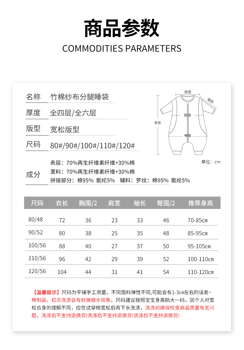 대나무 면화 아기 분할 다리 침낭 대나무 섬유 점프 슈트 거즈 어린이 항균 아기 잠옷 안티 킥 이불 유형 A