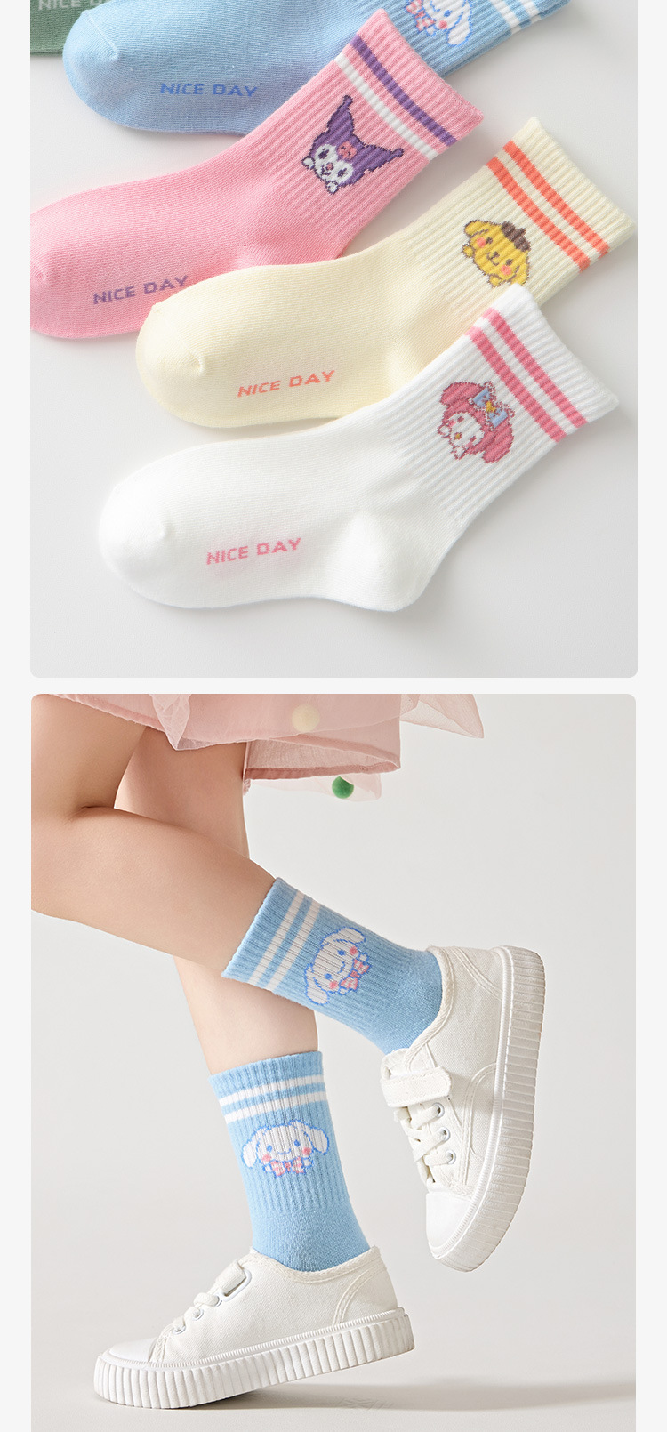 어린이 양말 도매 2024 가을과 겨울 새로운 일본 만화 면화 양말 학술 스타일 수평 바 소녀 양말스토어 가기