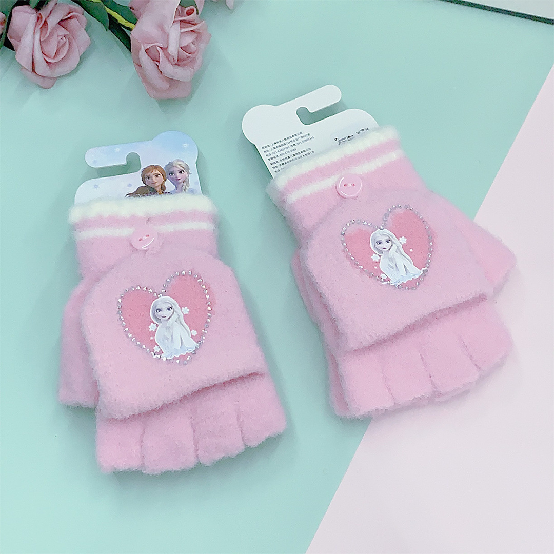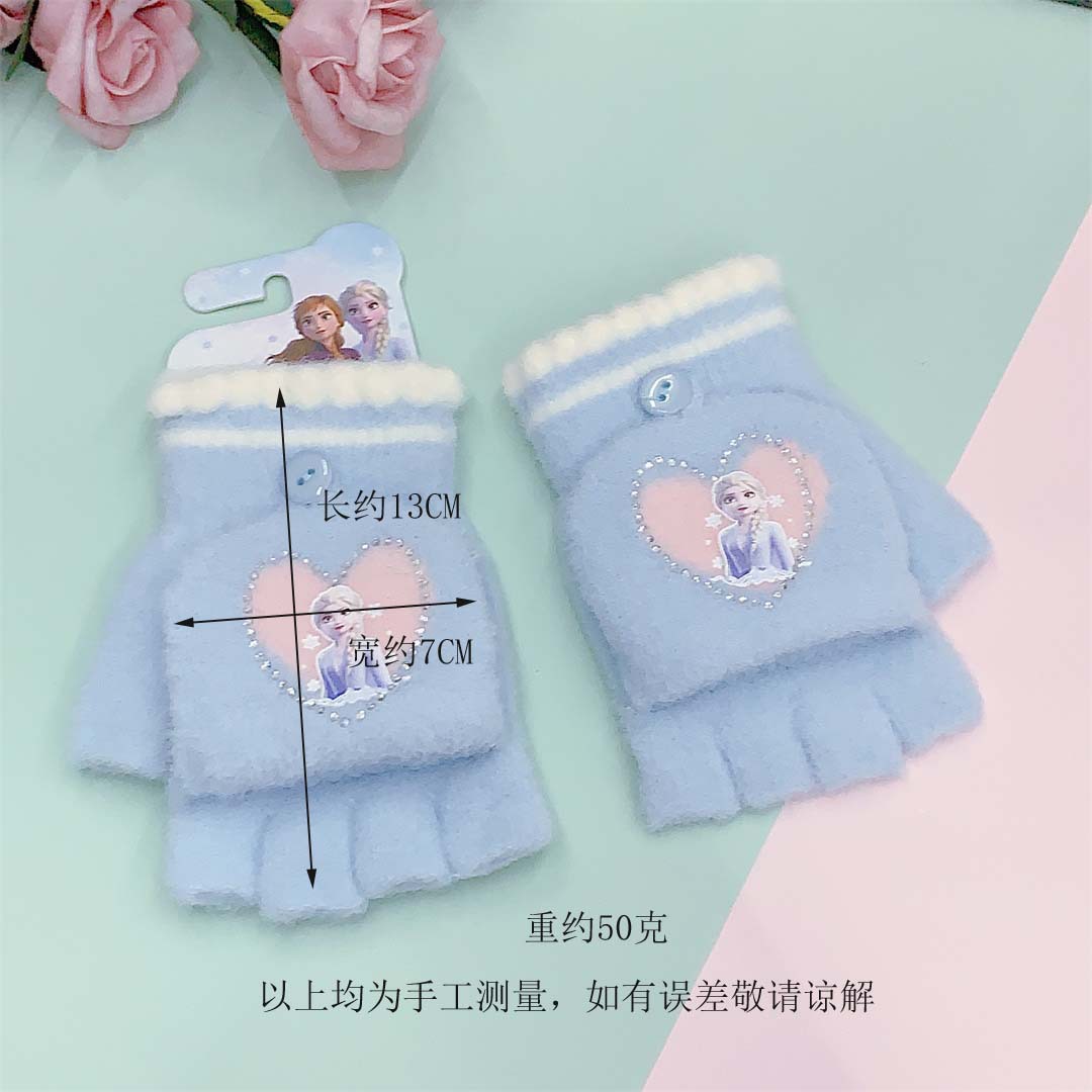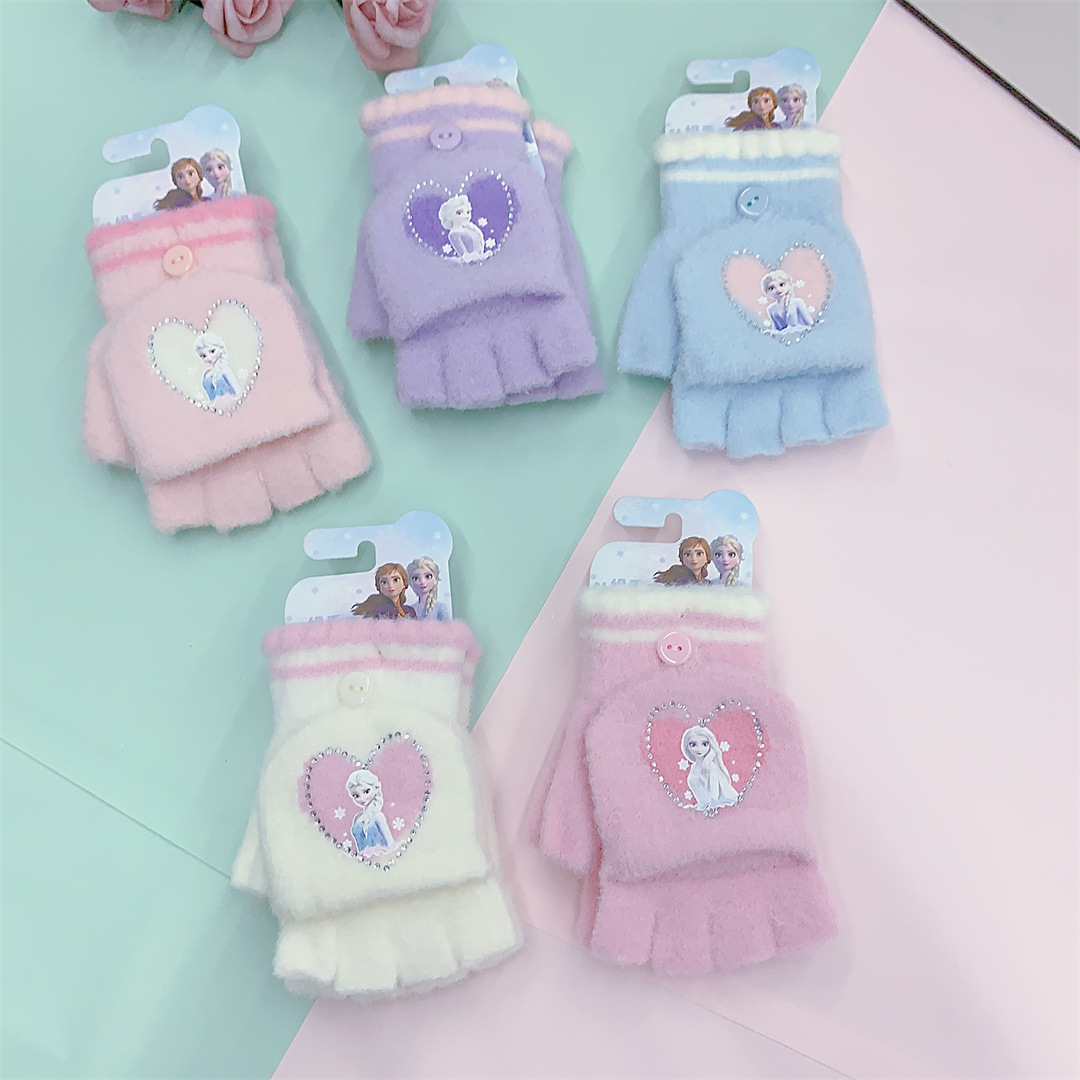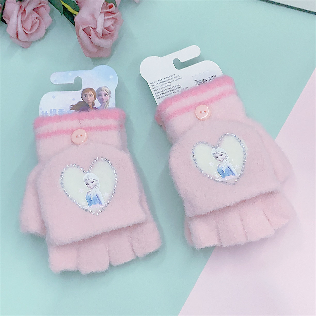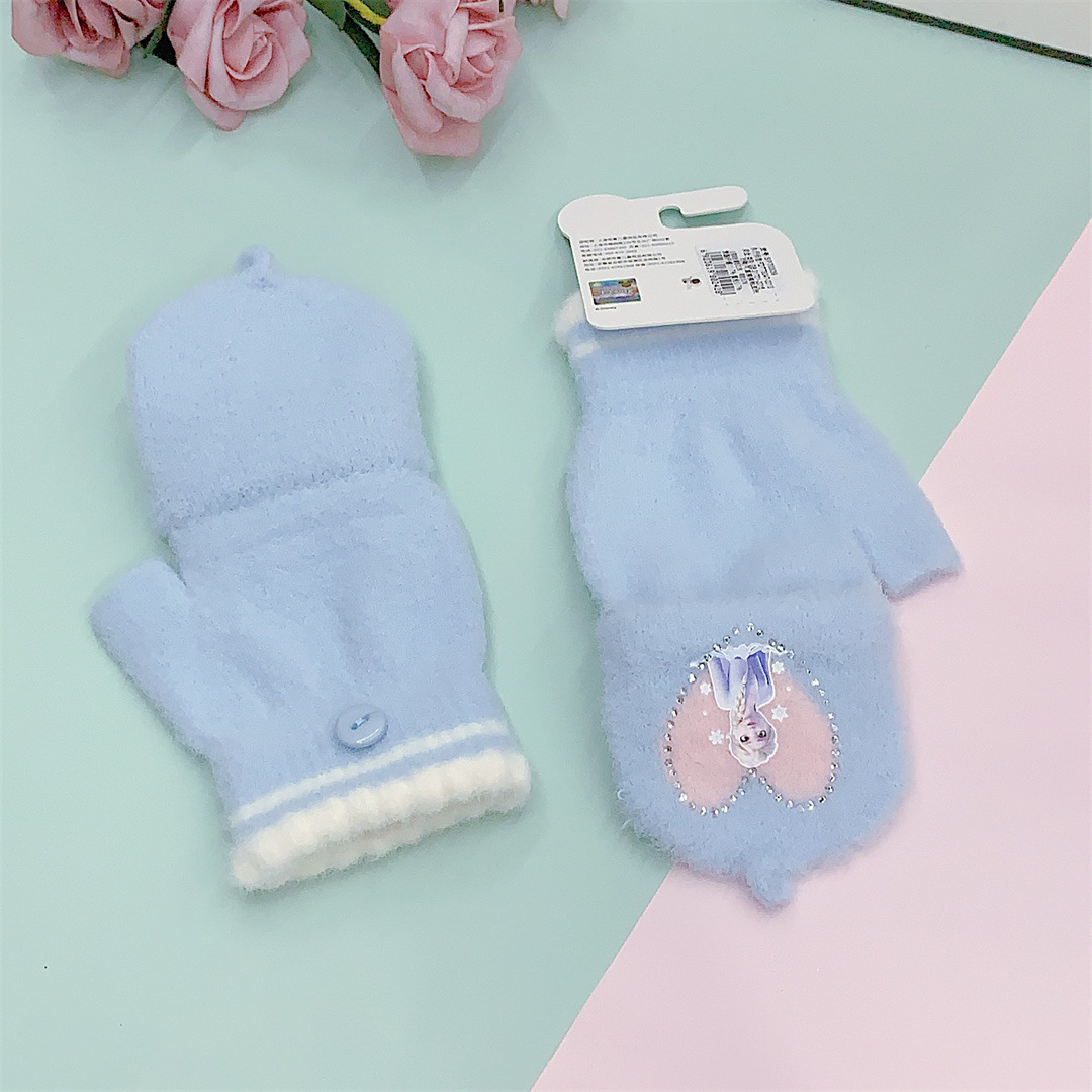 2024 정품 공인 얼음과 눈 공주 중학생 니트 울 플립 따뜻한 글쓰기 장갑 도매