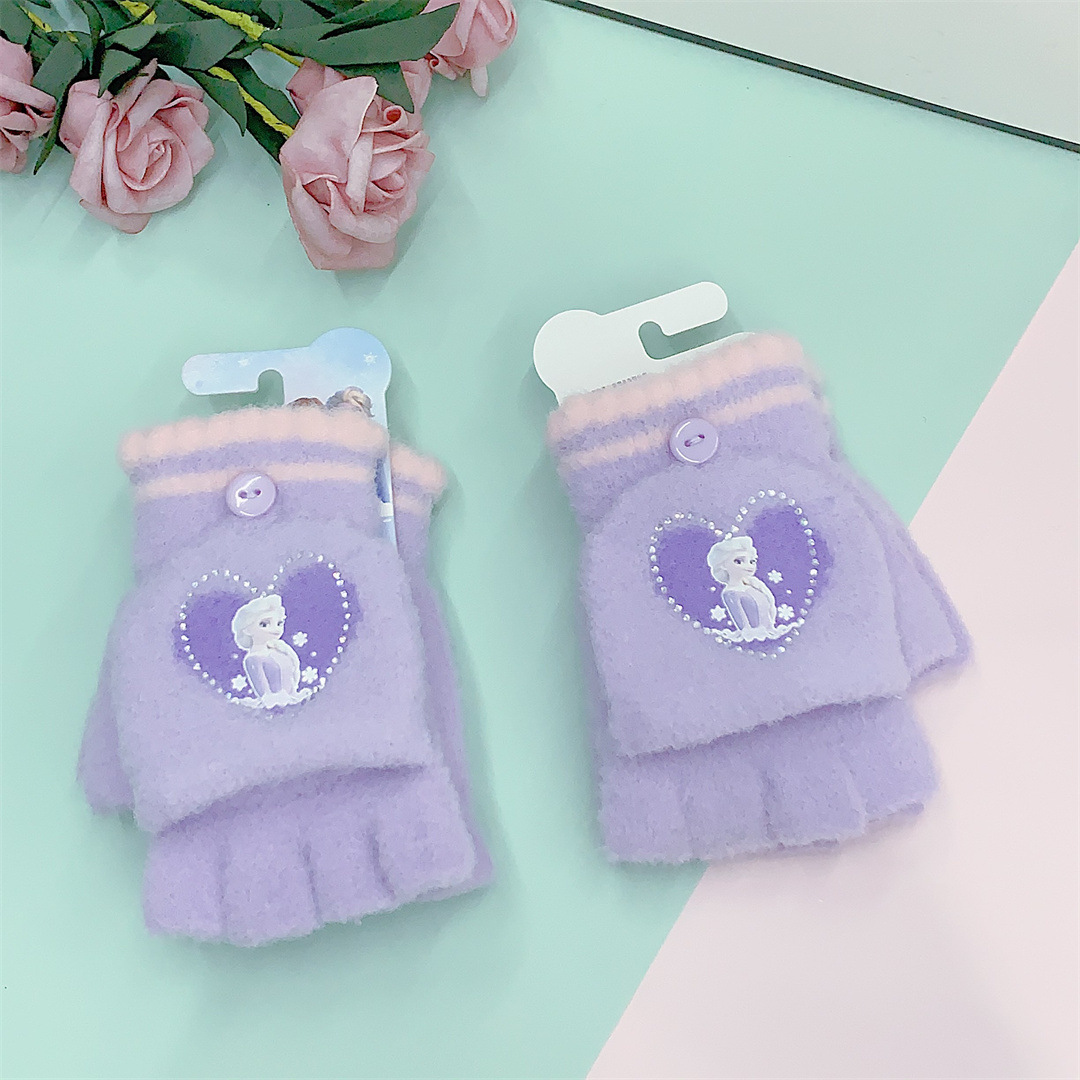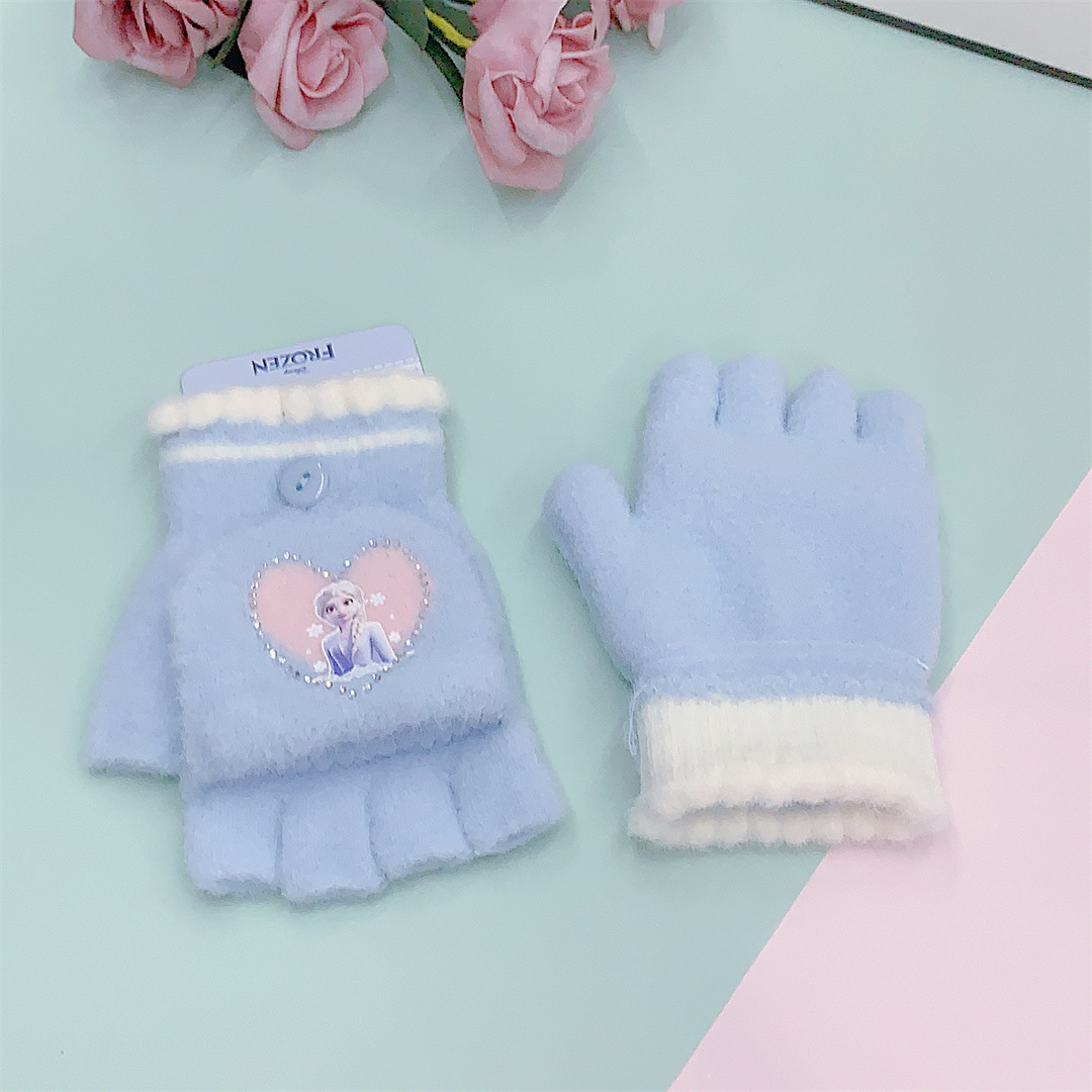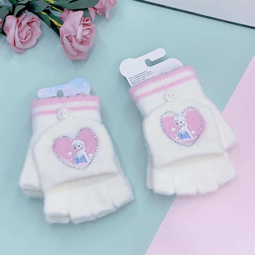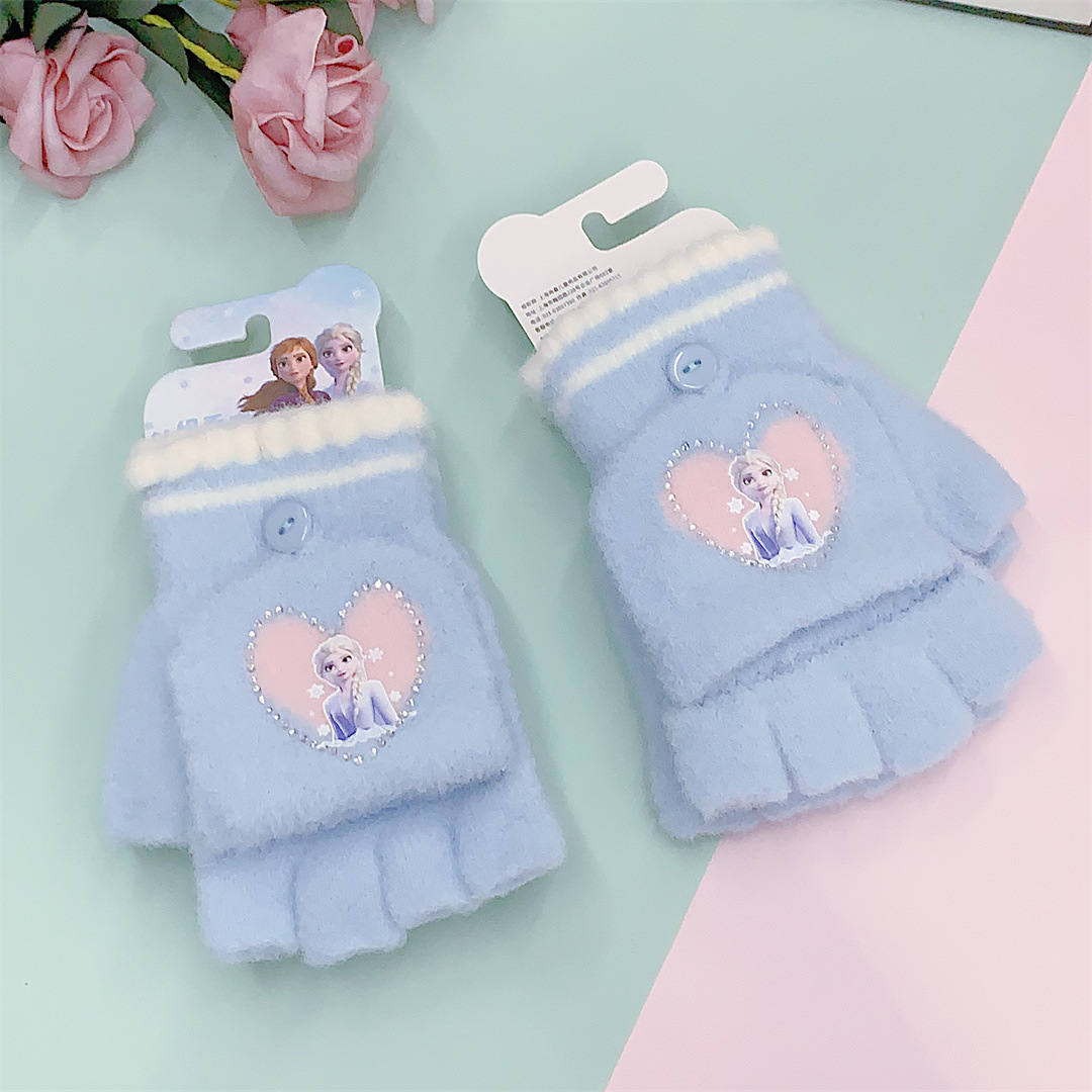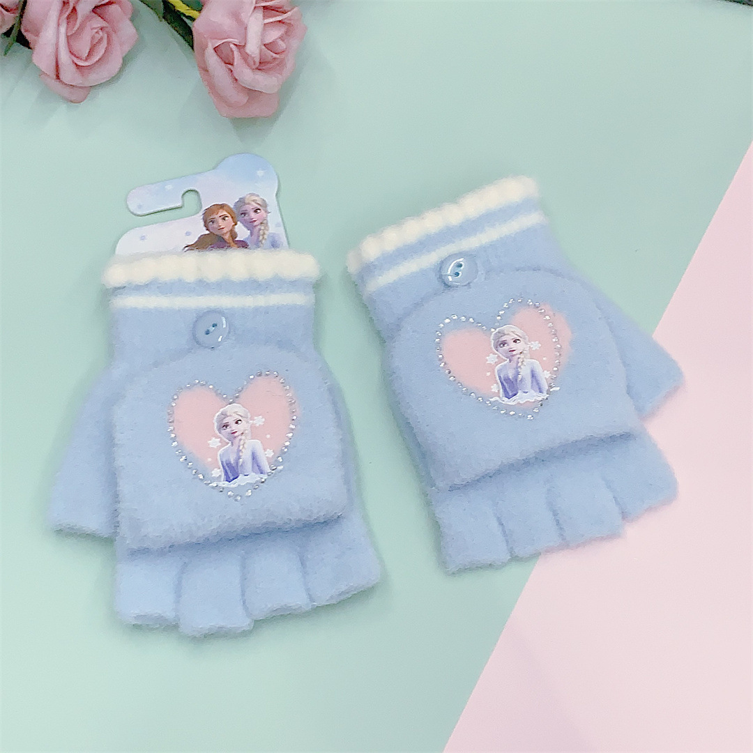 2024 정품 공인 얼음과 눈 공주 중학생 니트 울 플립 따뜻한 글쓰기 장갑 도매