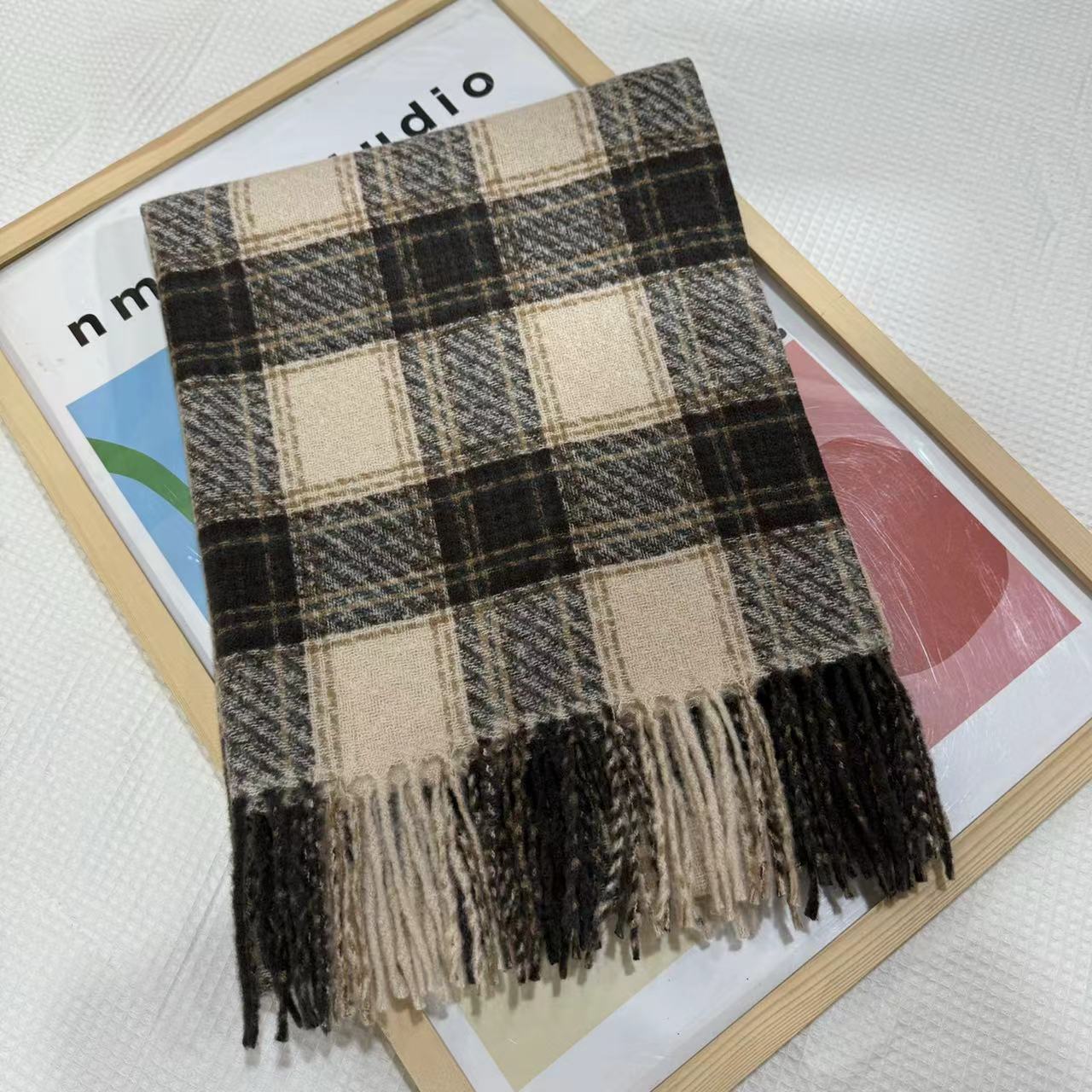 빈티지 스퀘어 체크 무늬 스카프 여성의 가을과 겨울 올 매치 우아한 캐주얼 스타일 콜드 베이글 세련된 통근 따뜻한 스카프