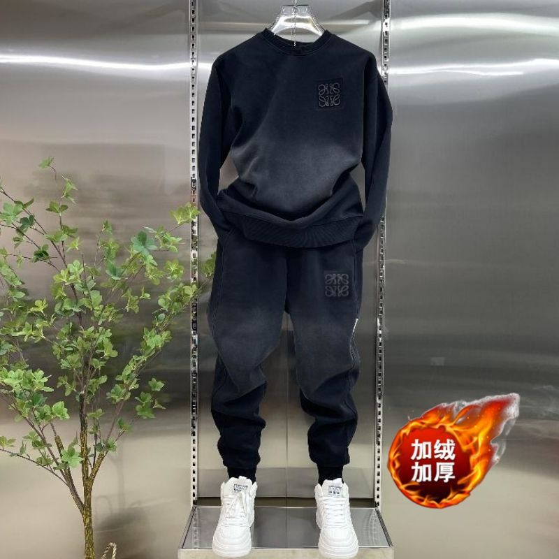 인터넷 연예인 남자 캐주얼 세트 가을과 겨울 슬리밍 심플 스포츠 잘 생긴 느슨한 한국식 그라디언트 컬러 투피스 세트스토어 가기