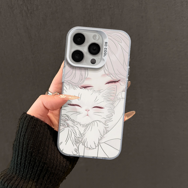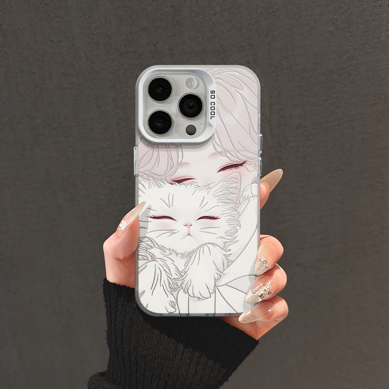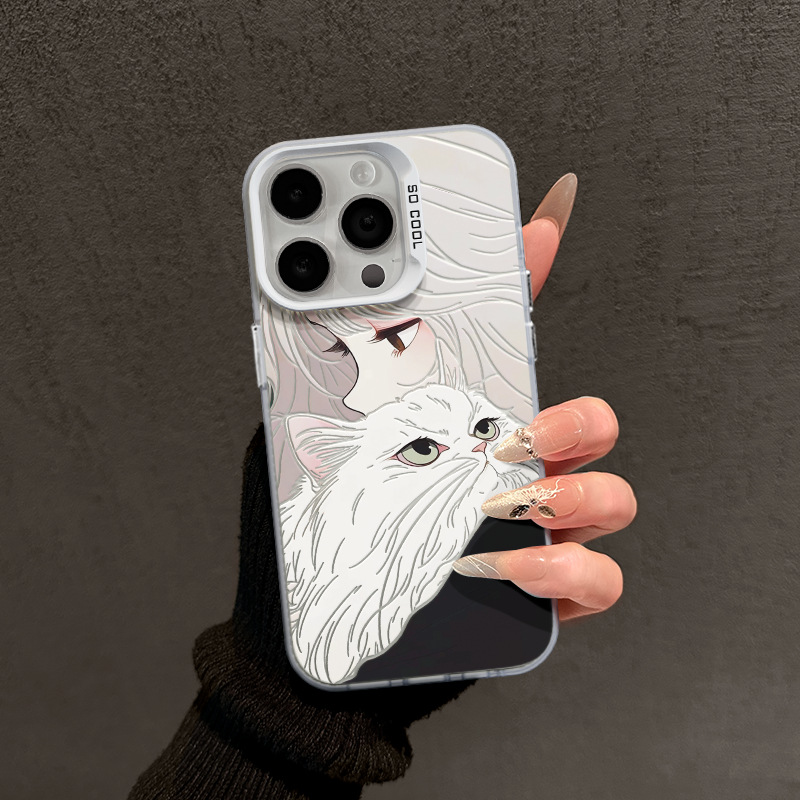 검은 고양이 소녀 애플 16 전화 케이스 높은 색상 값 14promax 고급 13 만화 12 색 실버 케이스에 적합