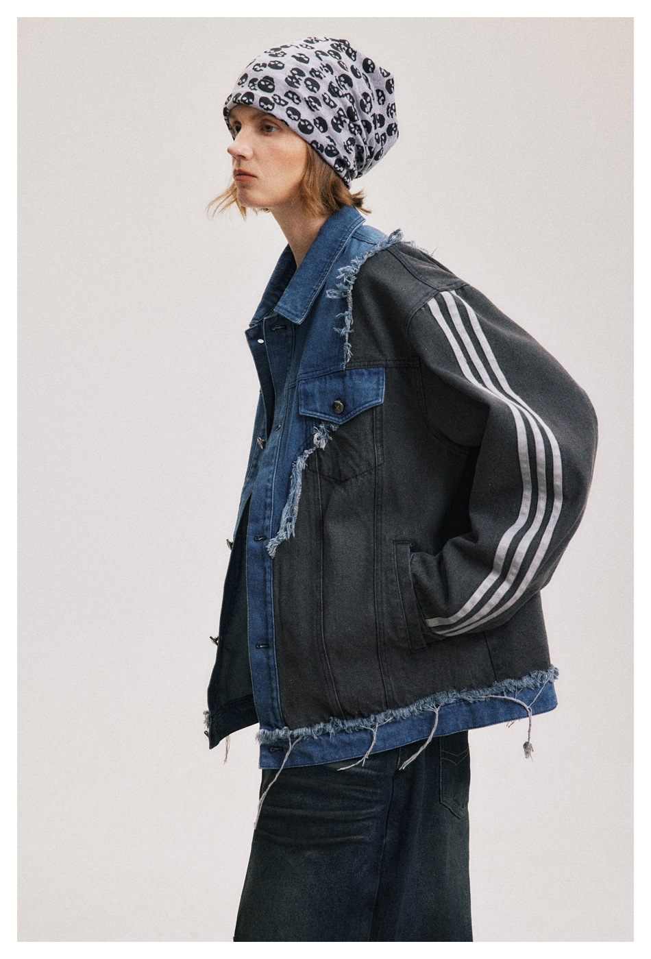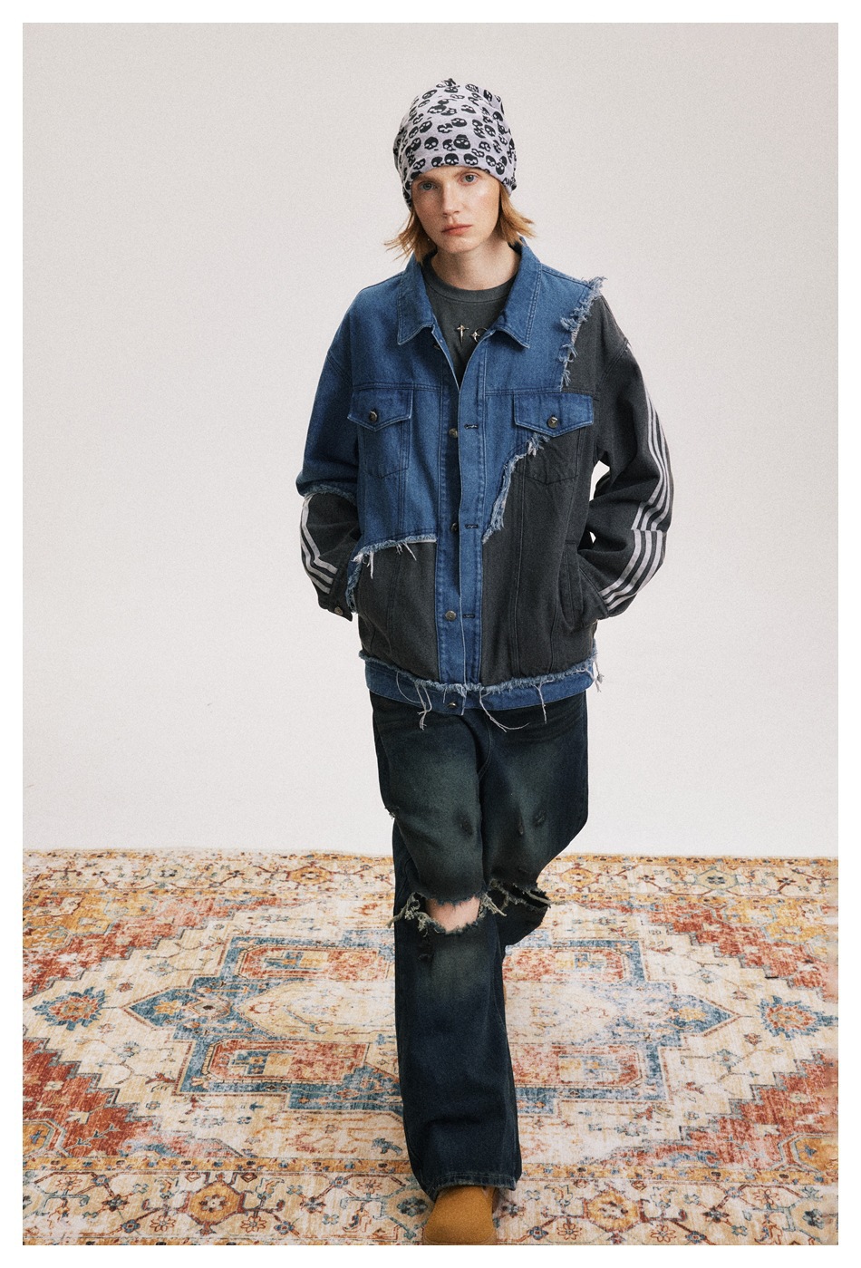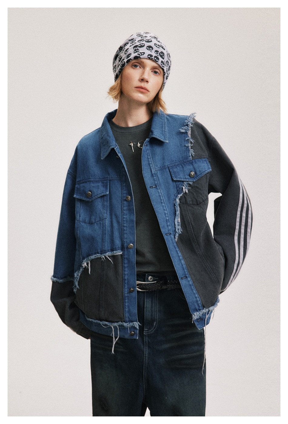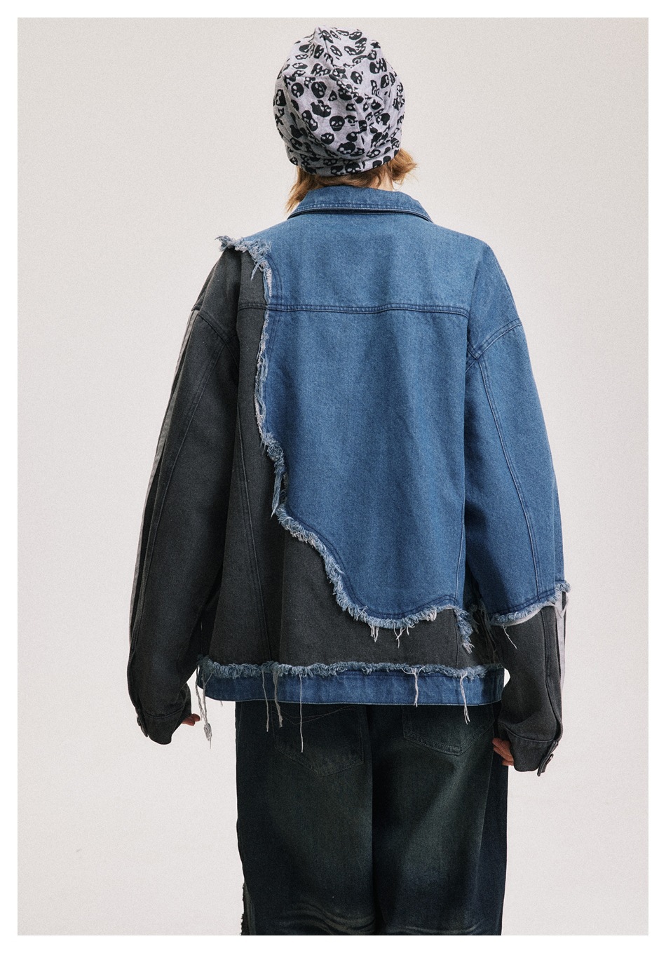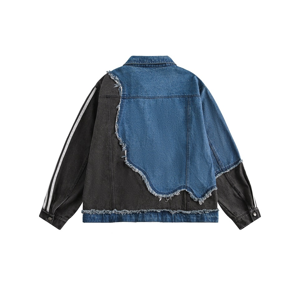불규칙한 스티칭 디자인 센스 툴링 데님 재킷 남성 봄과 가을 새로운 느슨한 캐주얼 데님 재킷스토어 가기
