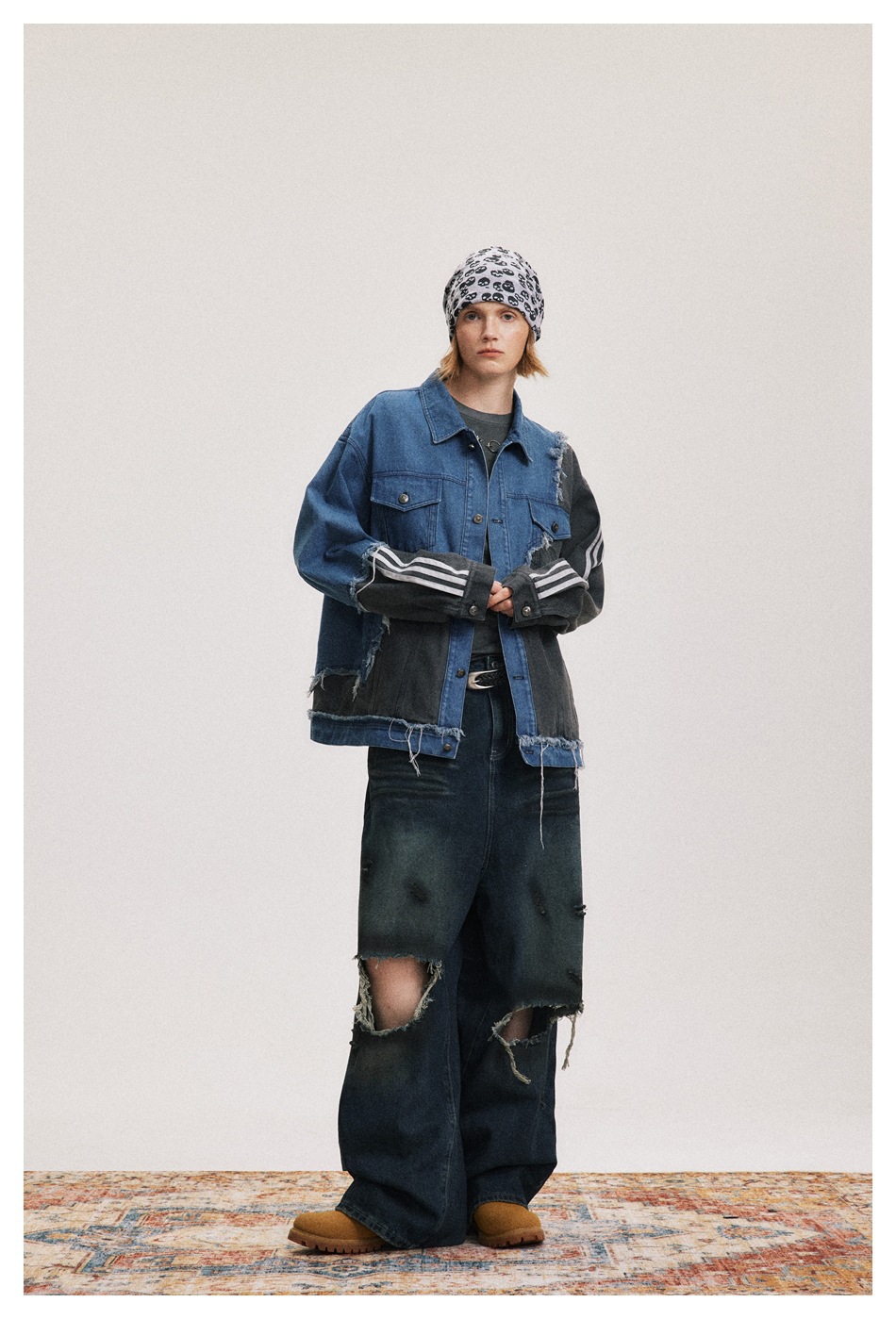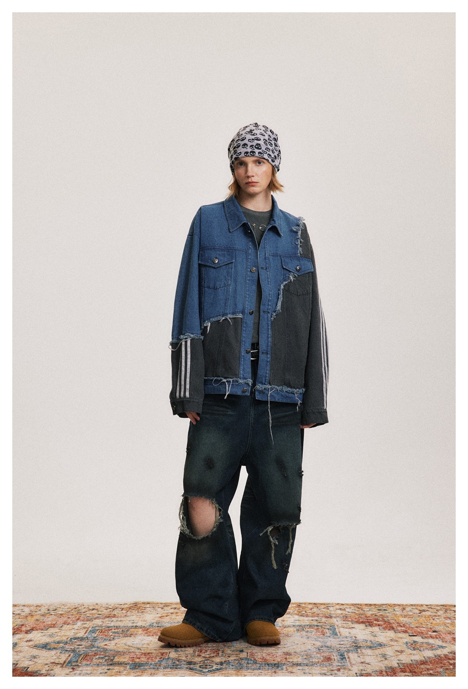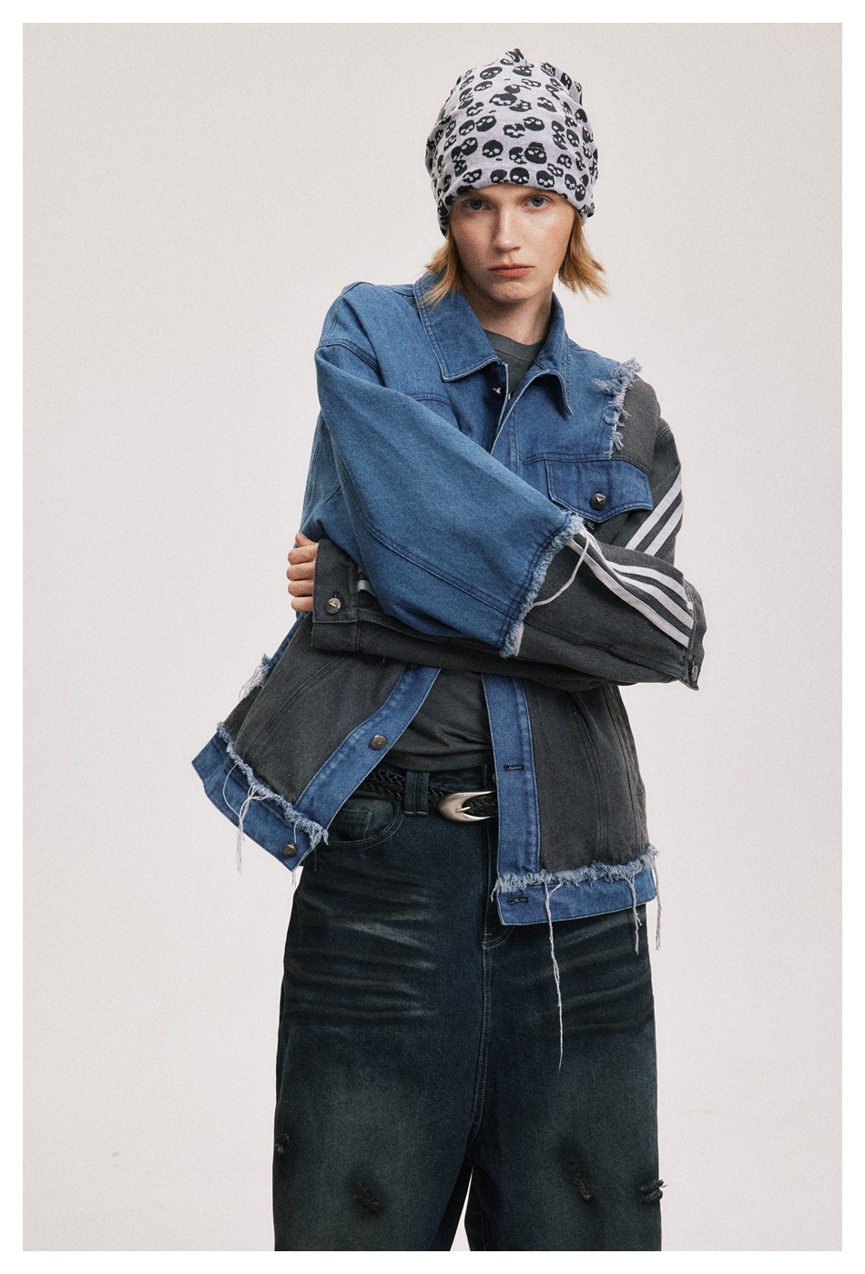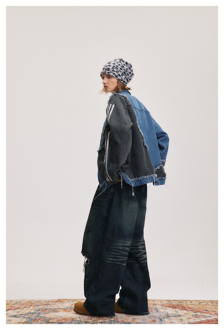 불규칙한 스티칭 디자인 센스 툴링 데님 재킷 남성 봄과 가을 새로운 느슨한 캐주얼 데님 재킷스토어 가기