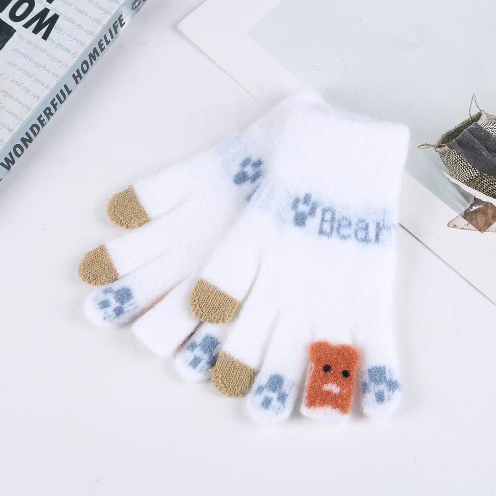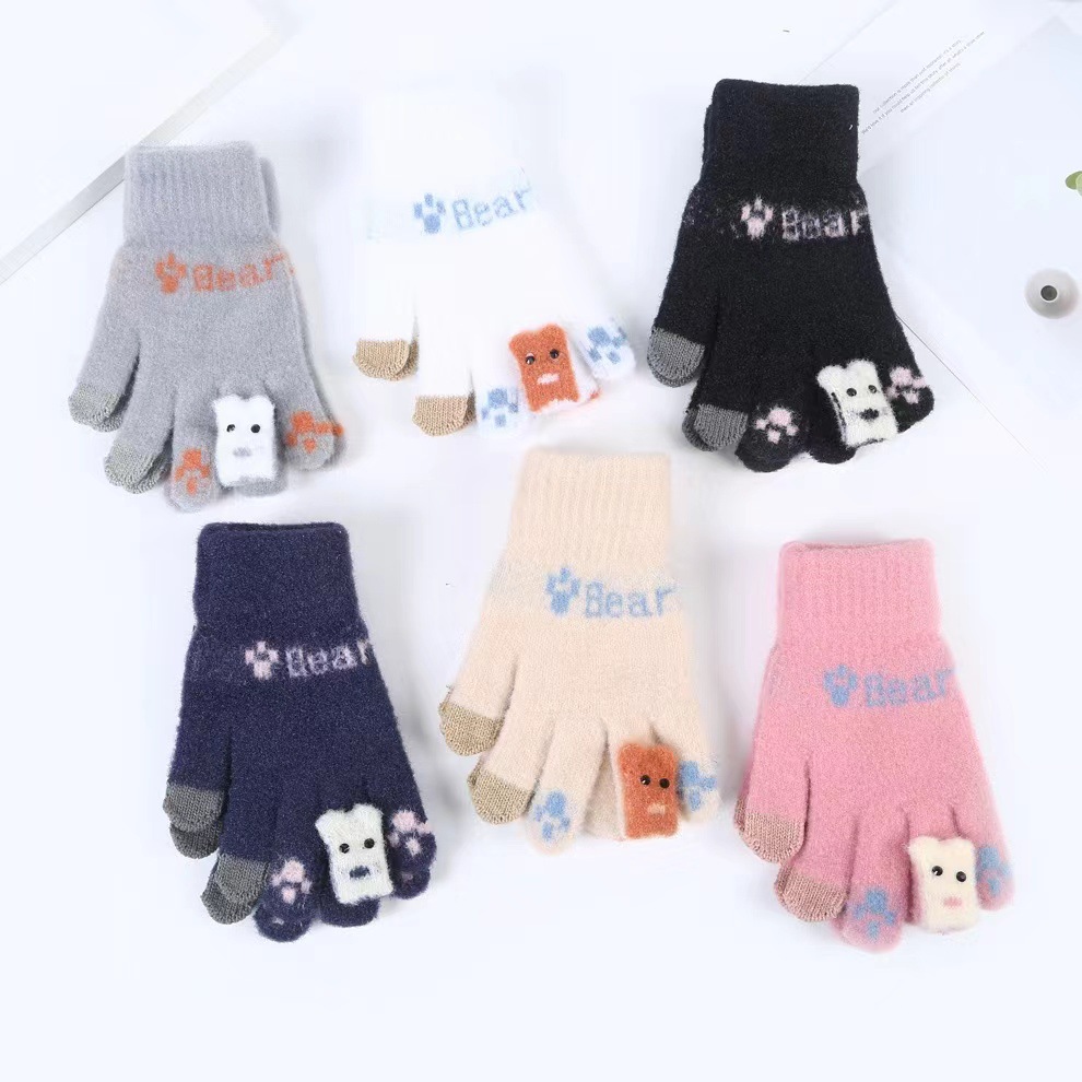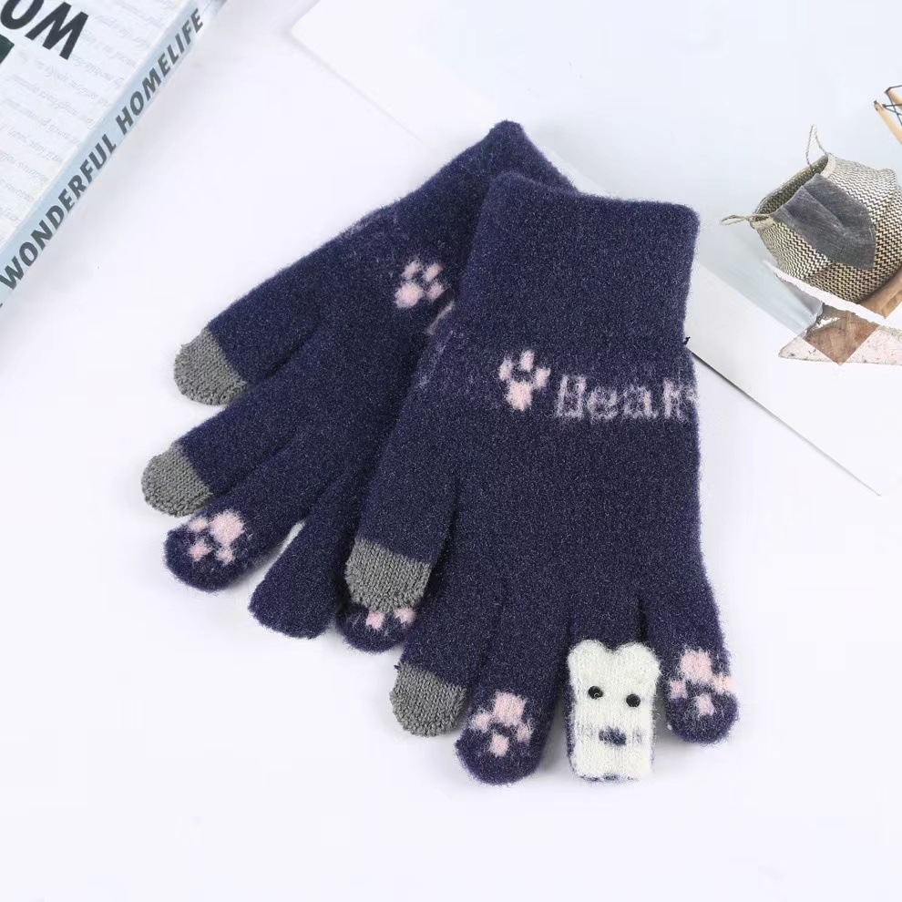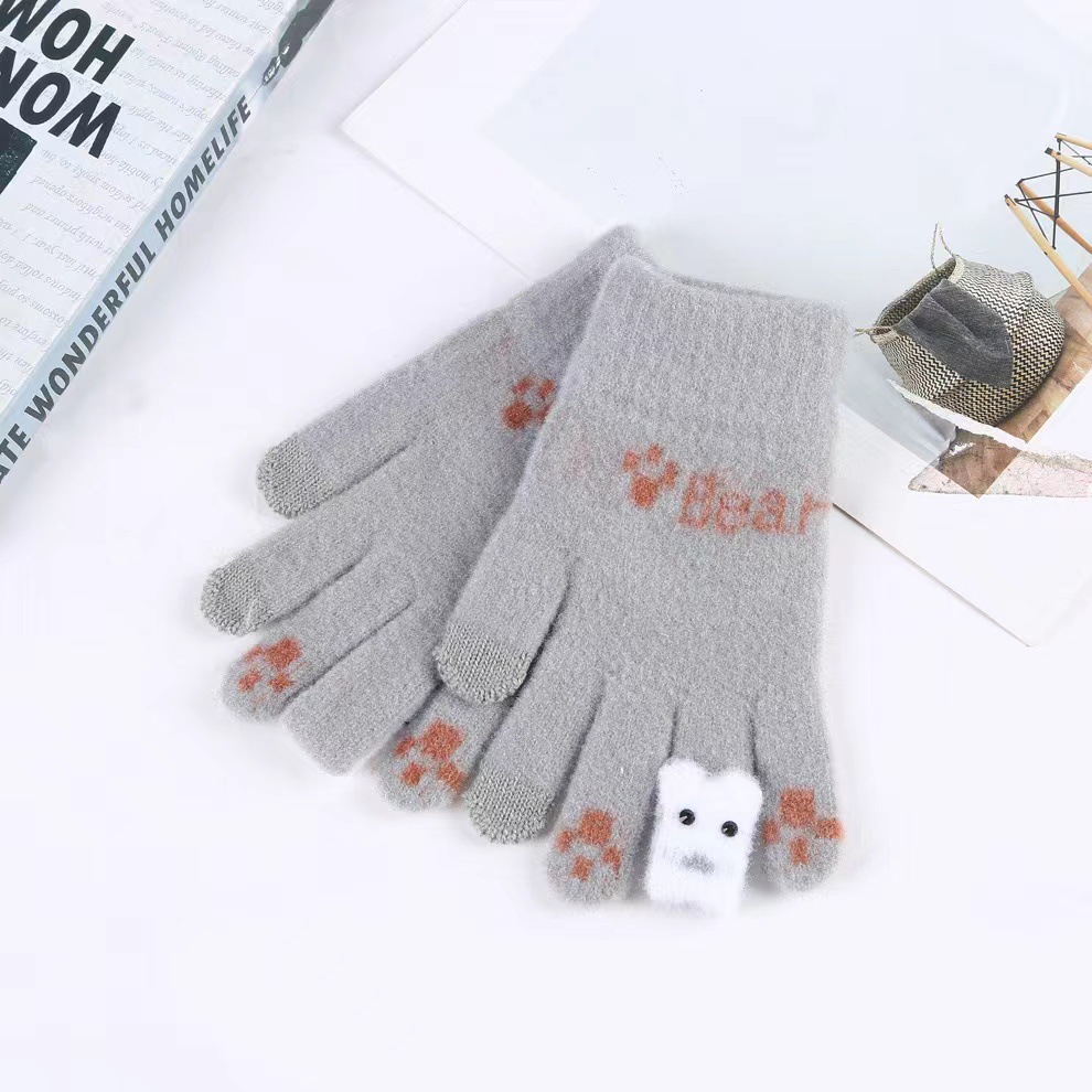 새로운 한국식 귀여운 곰 터치 스크린 Ins 기모 두꺼운 장갑 따뜻한 학생 승마 겨울 울 남녀