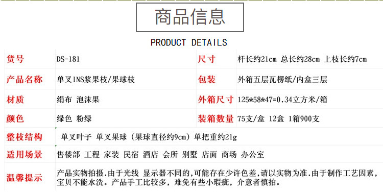 국경 간 유럽과 미국의 시뮬레이션 베리 가지 단일 포크 과일 공 INS 작은 과일 가지 콩 가지 가짜 꽃 테이블 꽃꽂이 말린 꽃 꽃다발스토어 가기