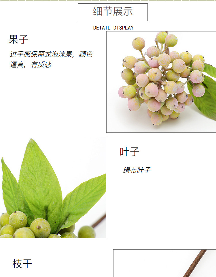 국경 간 유럽과 미국의 시뮬레이션 베리 가지 단일 포크 과일 공 INS 작은 과일 가지 콩 가지 가짜 꽃 테이블 꽃꽂이 말린 꽃 꽃다발