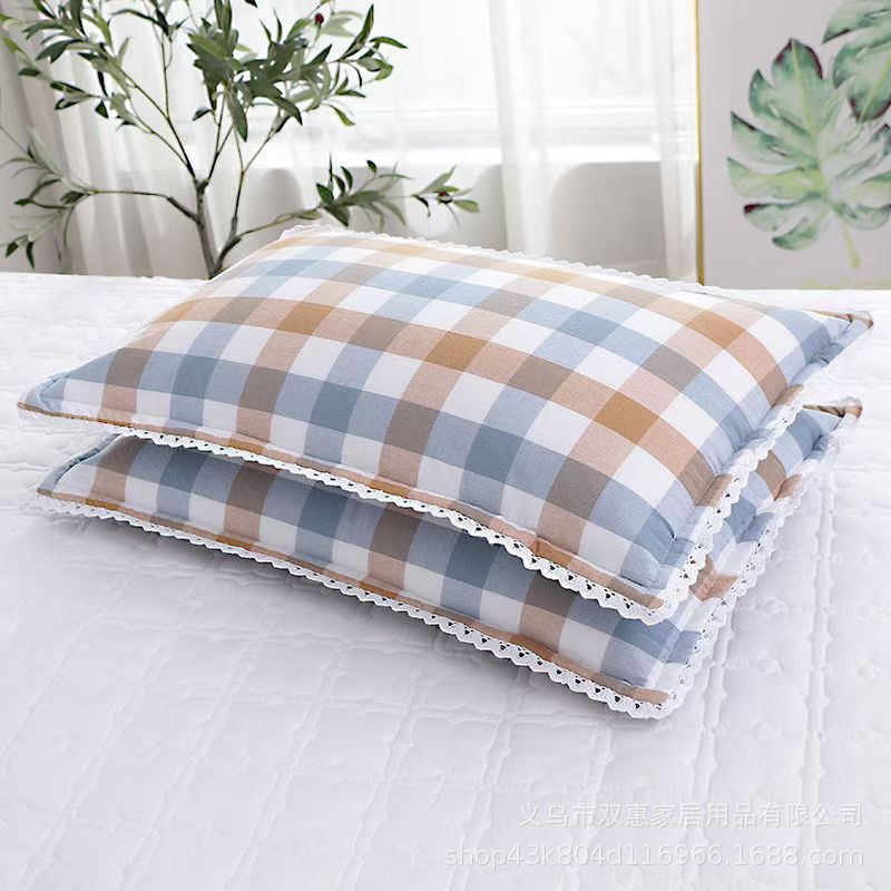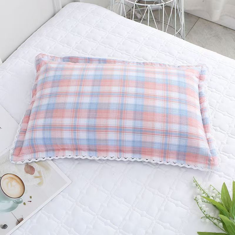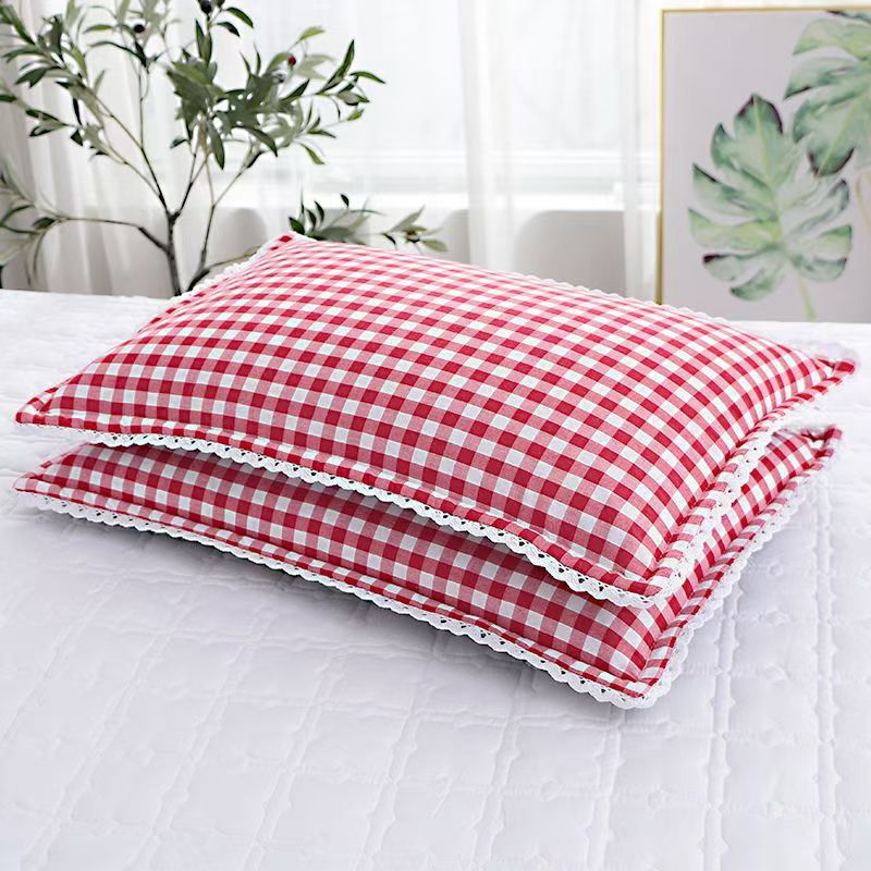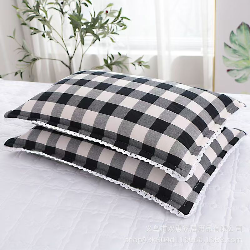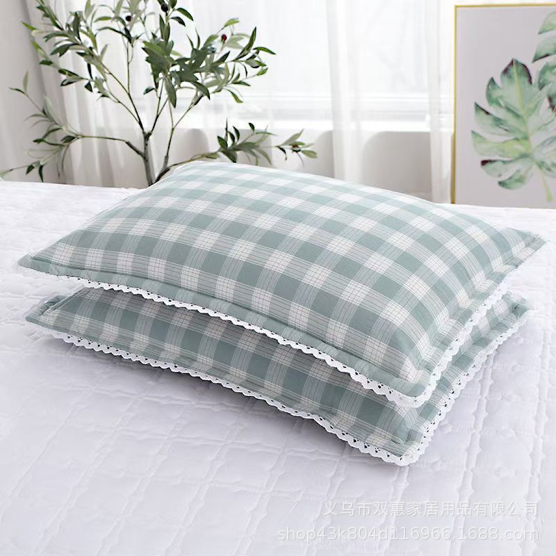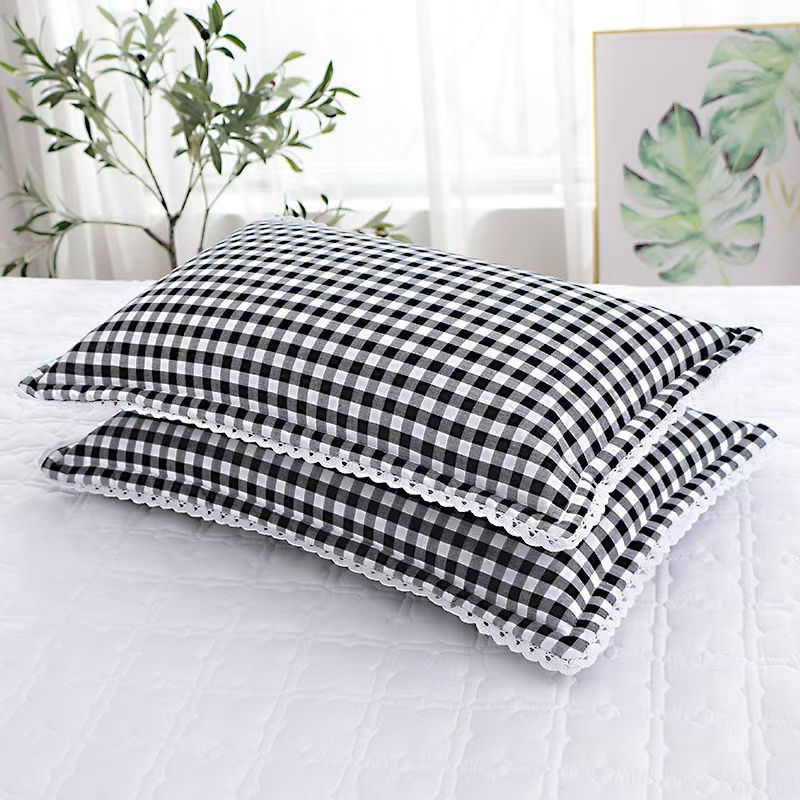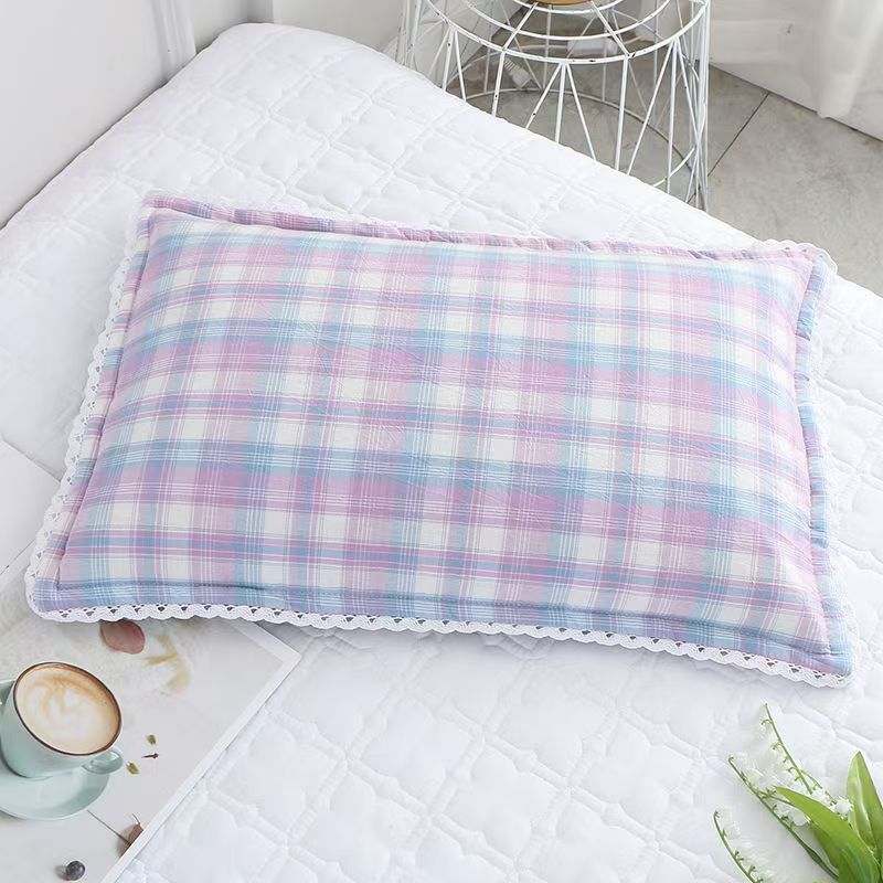 사계절 사용 가능한 가정용 세탁 가능한 면 베갯잇, 세탁기로 세탁 가능한 순면 학생 기숙사 원사 염색 격자 무늬 어린이 및 성인 베갯잇스토어 가기