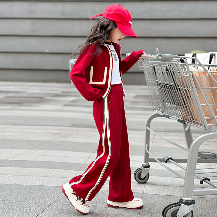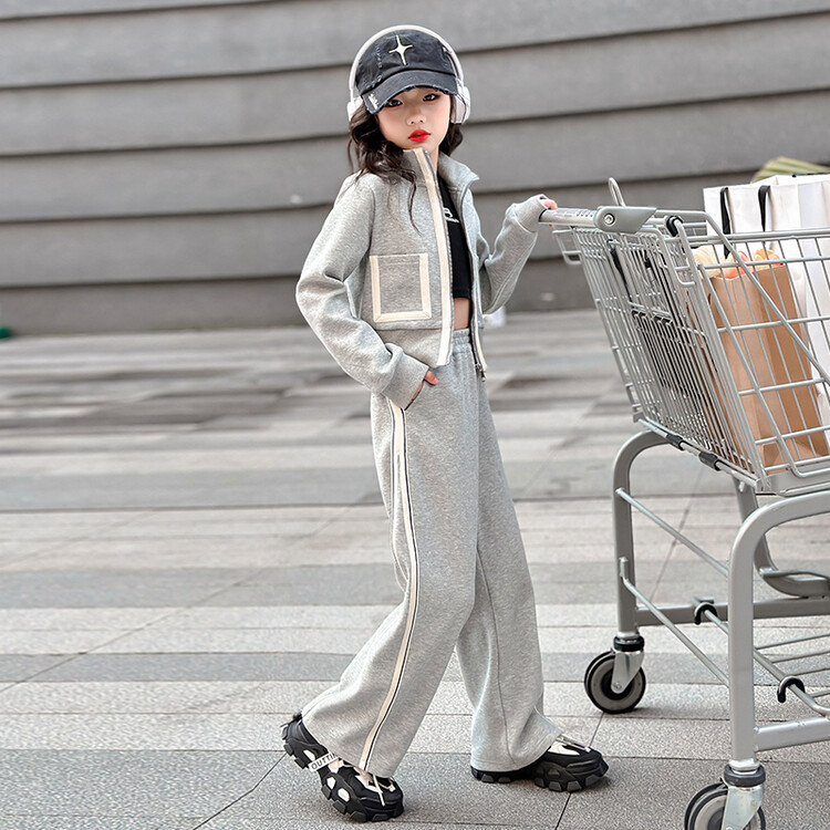 여아 가을 겨울 스포츠 세트 2025 신상 한국 스타일 중대형 아동용 루즈핏 숏 재킷 캐주얼 와이드 팬츠