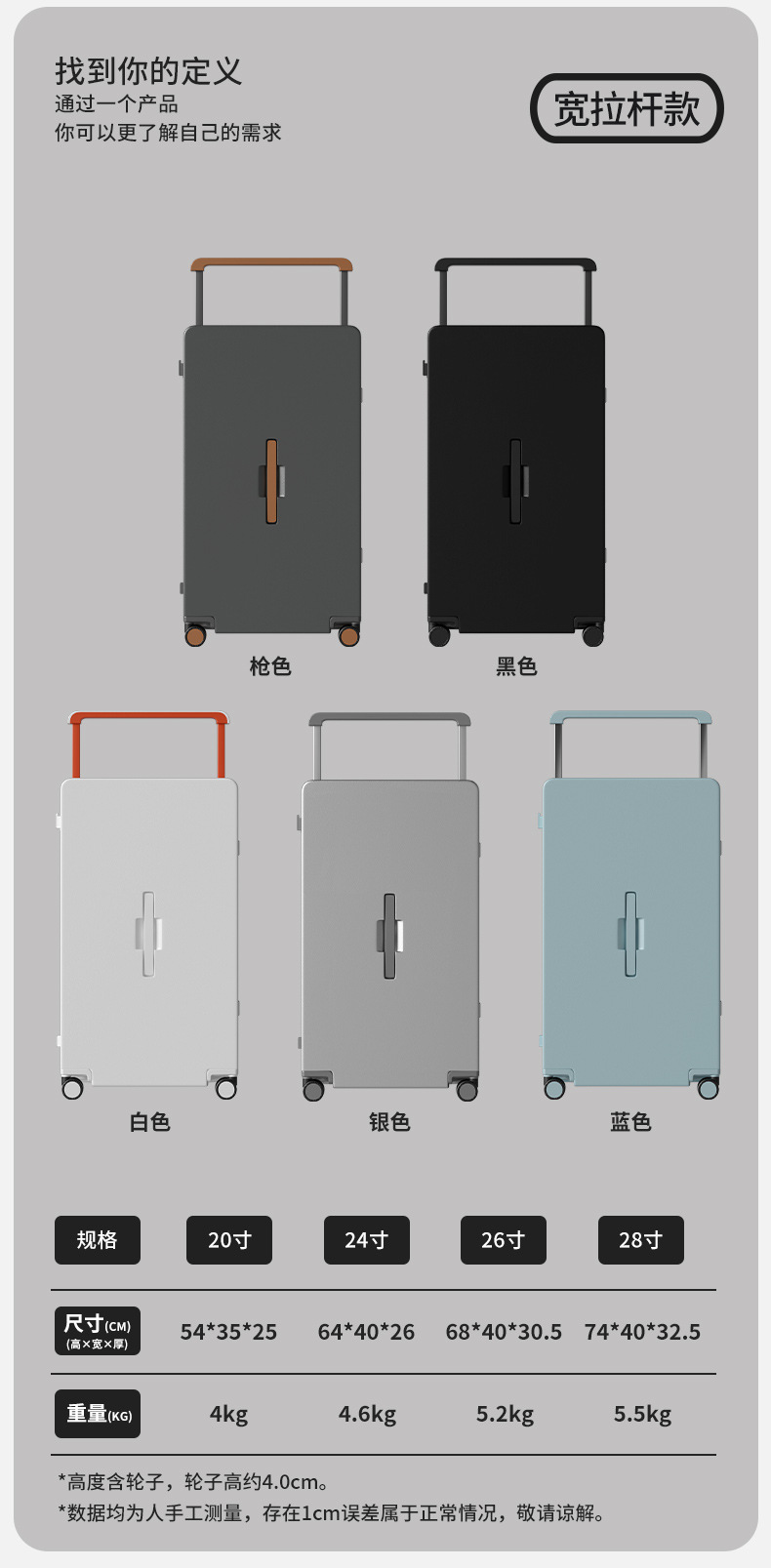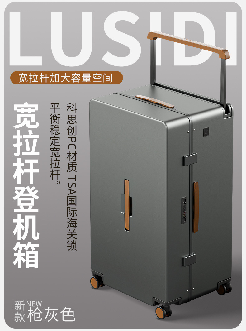 2024 새로운 와이드 풀로드 수하물 남성과 여성을위한 20 인치 탑승 상자 24 가죽 상자 26 여행 수하물 28 암호 상자스토어 가기