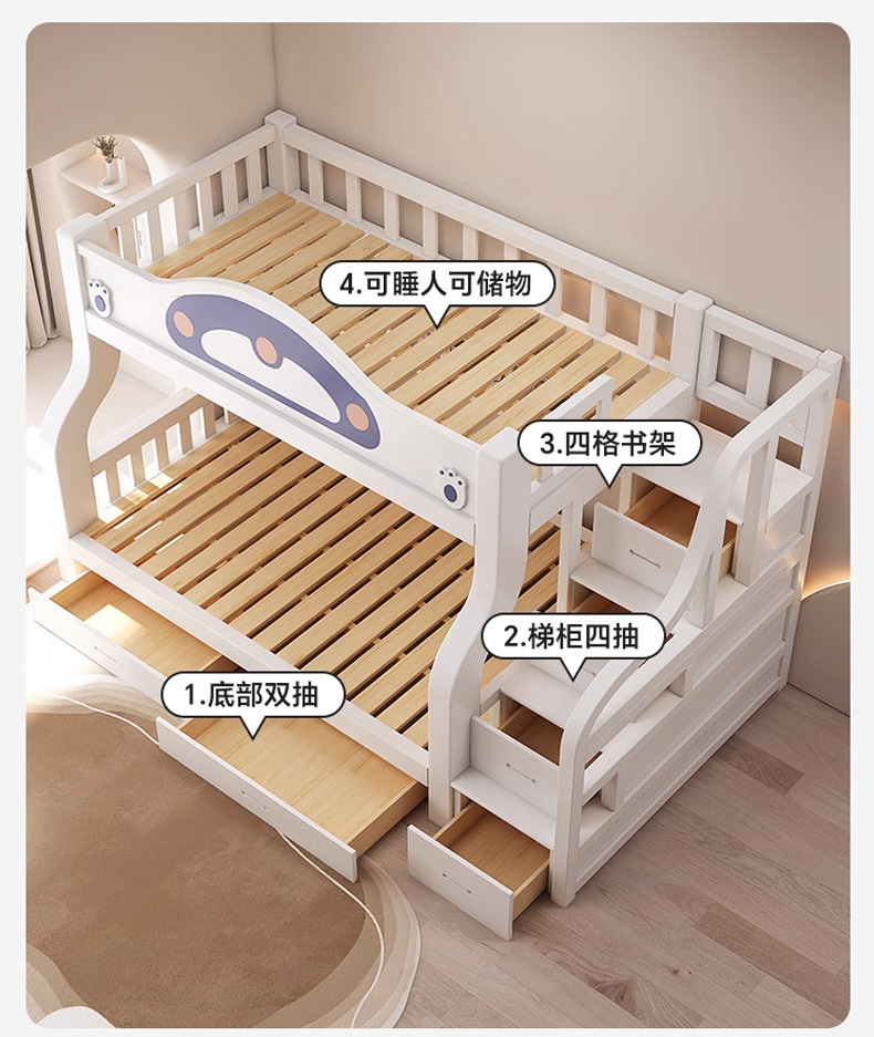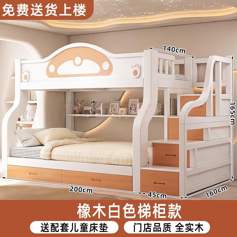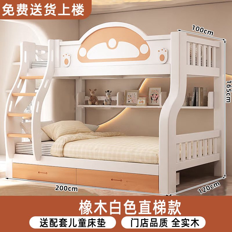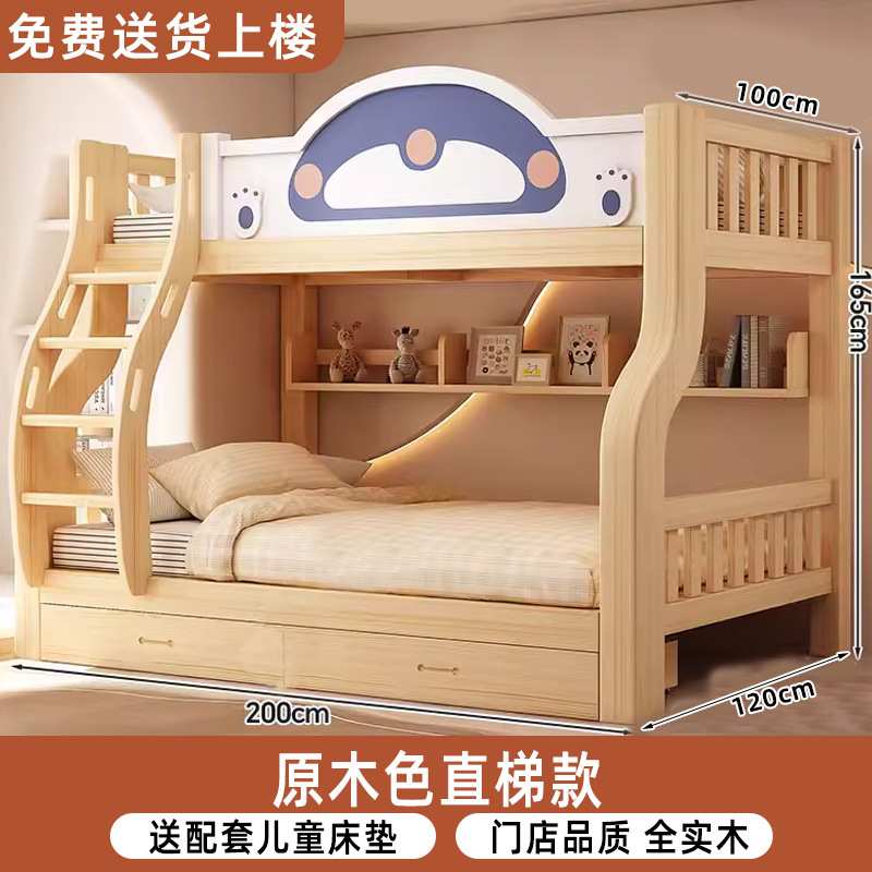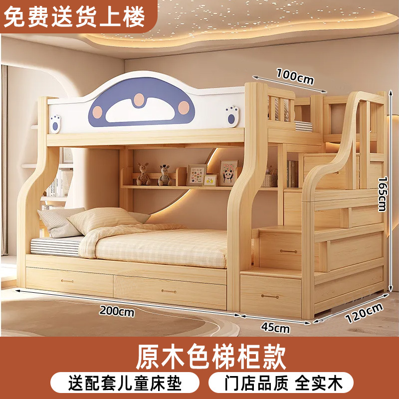 풀 솔리드 우드 벙크 침대 벙크 침대 성인 작은 아파트 상하 침대 2 층 나무 침대 높고 낮은 침대 어린이 침대 어머니 침대