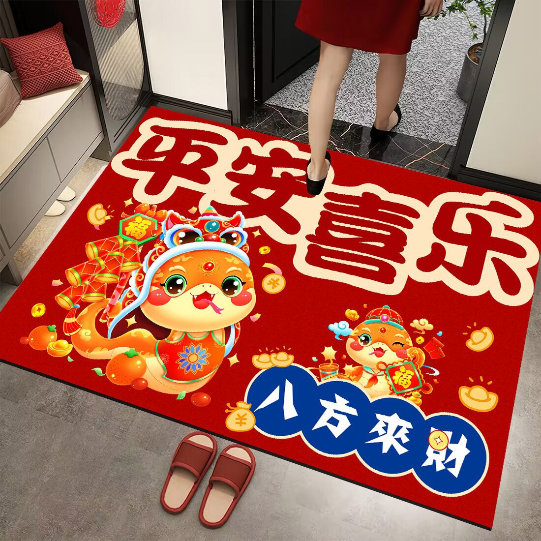 홈 입구 매트 2025 설날 매트 레드 축제 입구 매트 홈 입구 바닥 매트