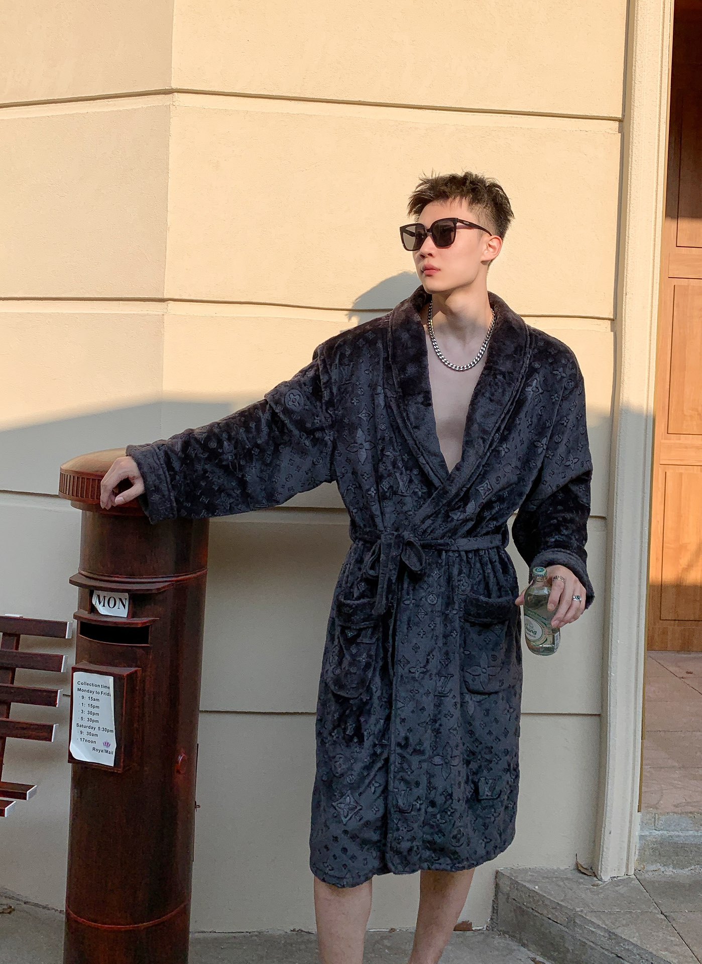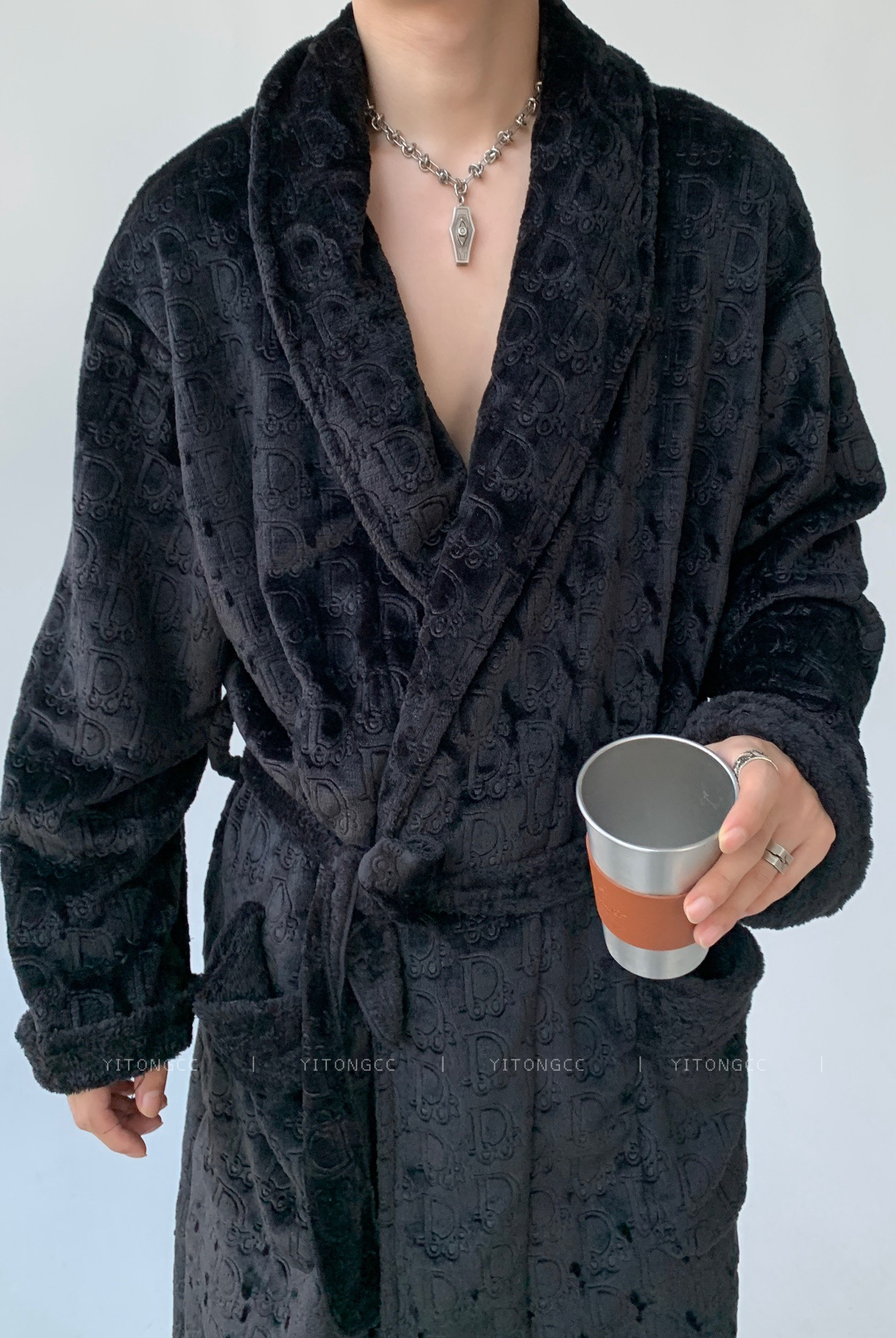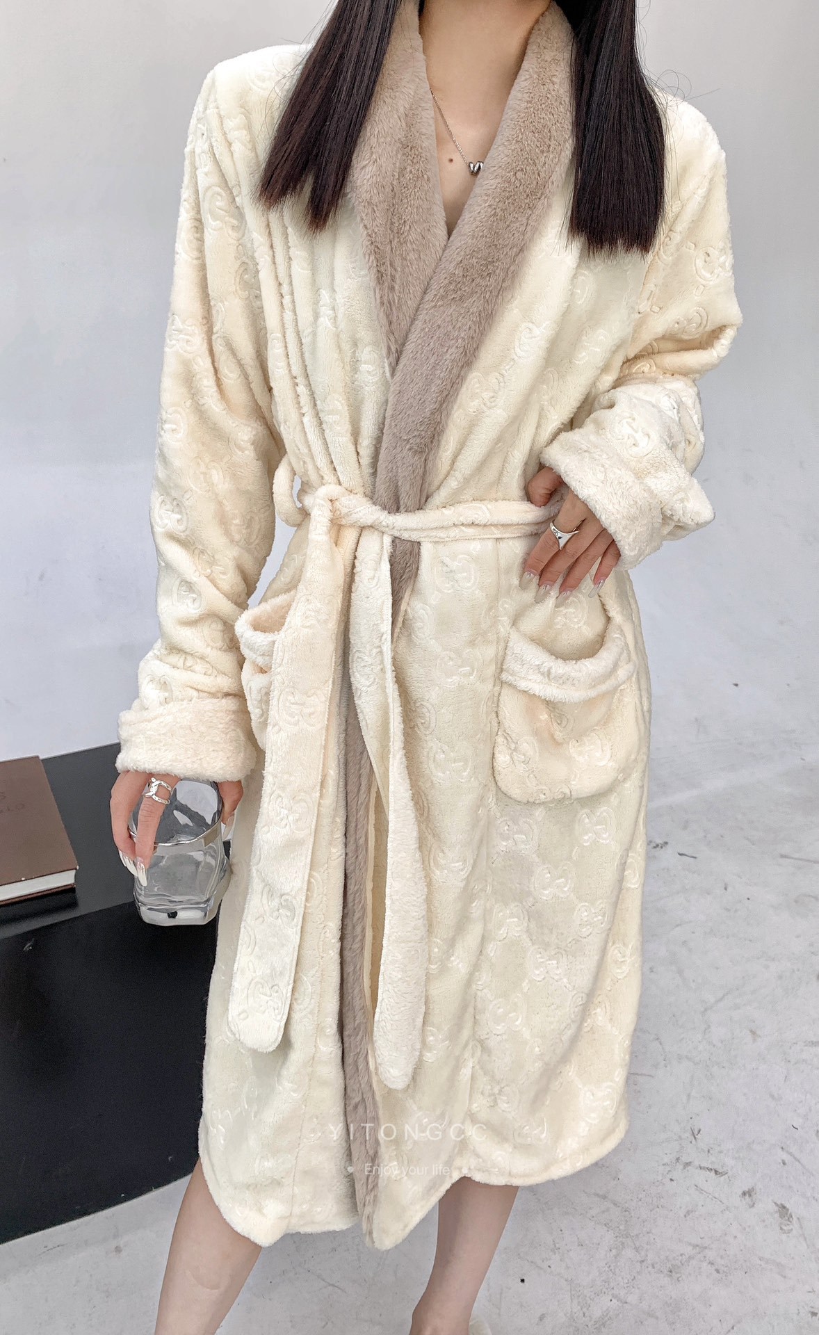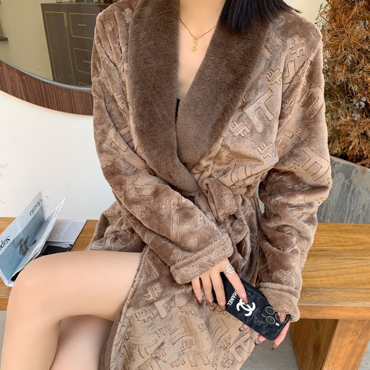 고급 중국식 골든 마텐 실버 폭스 벨벳 파자마 따뜻한 잠옷 남녀 부부의 무거운 양각 캐주얼 홈 옷스토어 가기